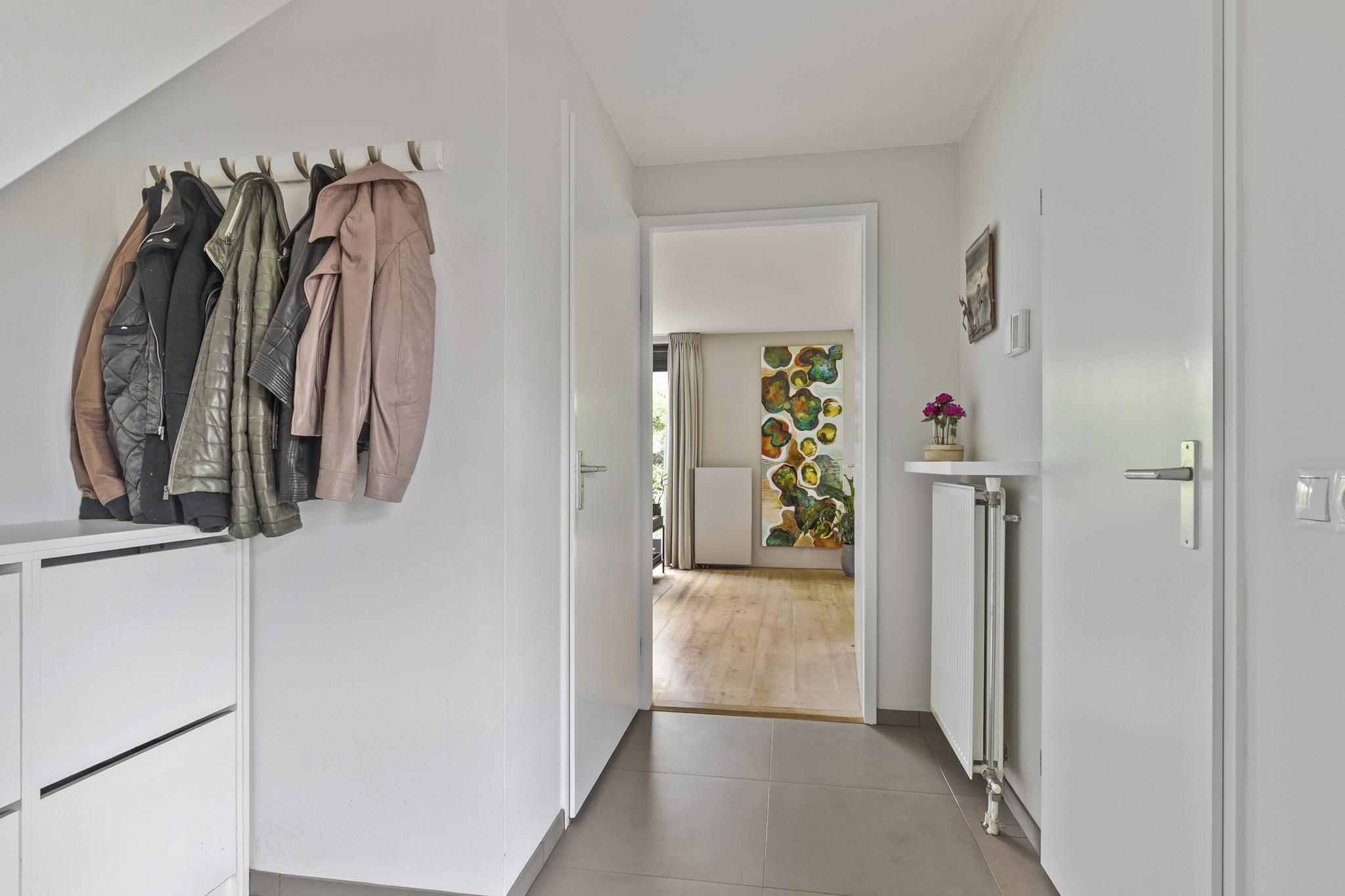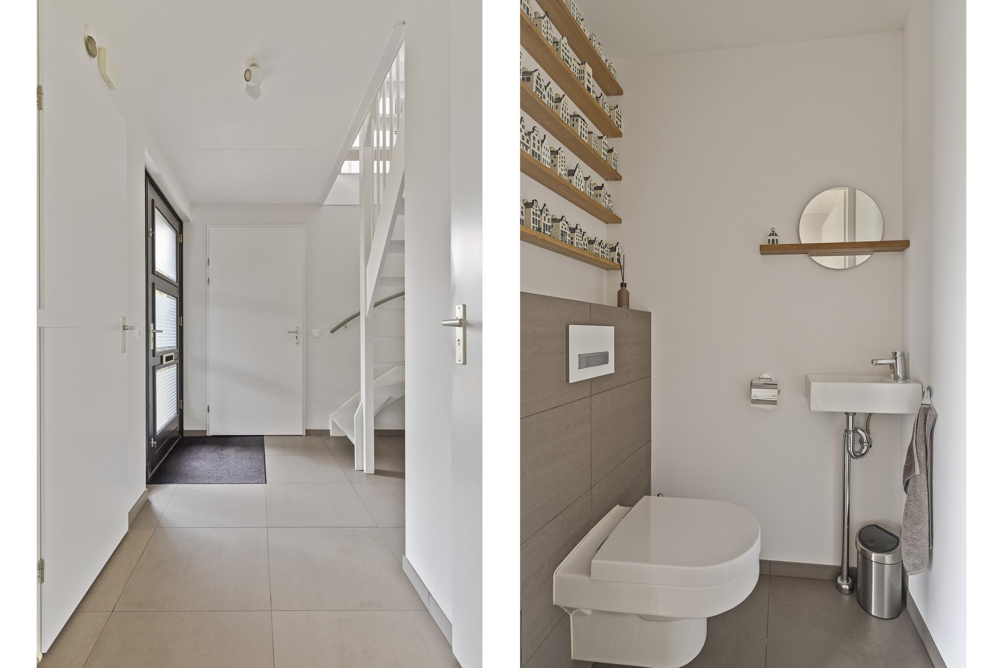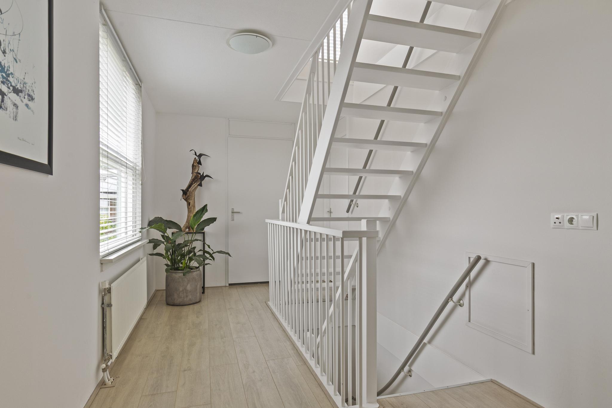 Stap binnen en voel je meteen thuis. Via de overdekte entree kom je in de ruime hal met garderobe, meterkast, een moderne toiletruimte met fontein en toegang tot de ruime inpandige berging. Een fraaie open trap leidt naar de eerste verdieping.