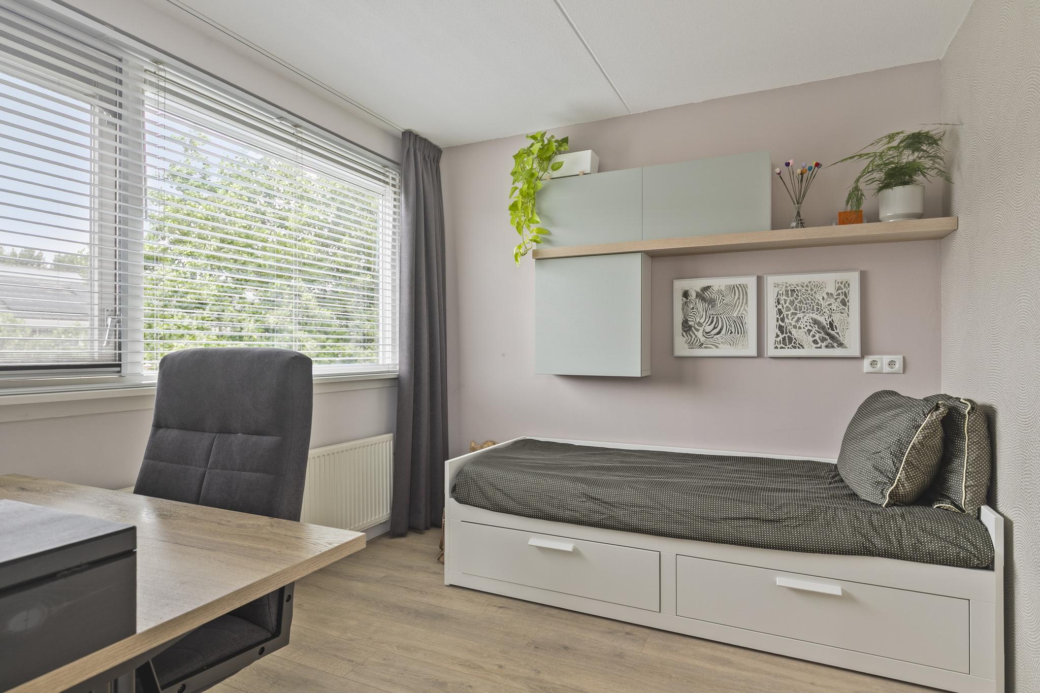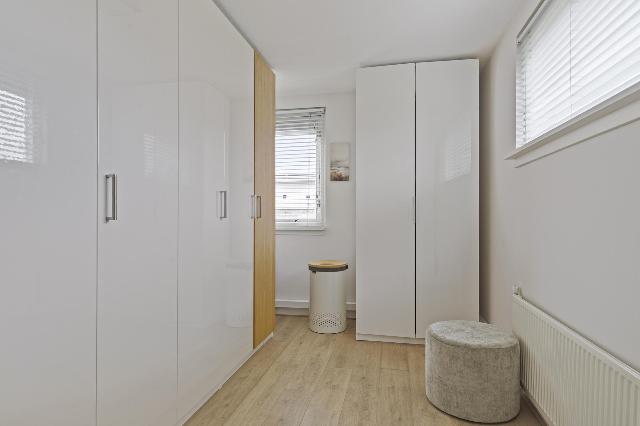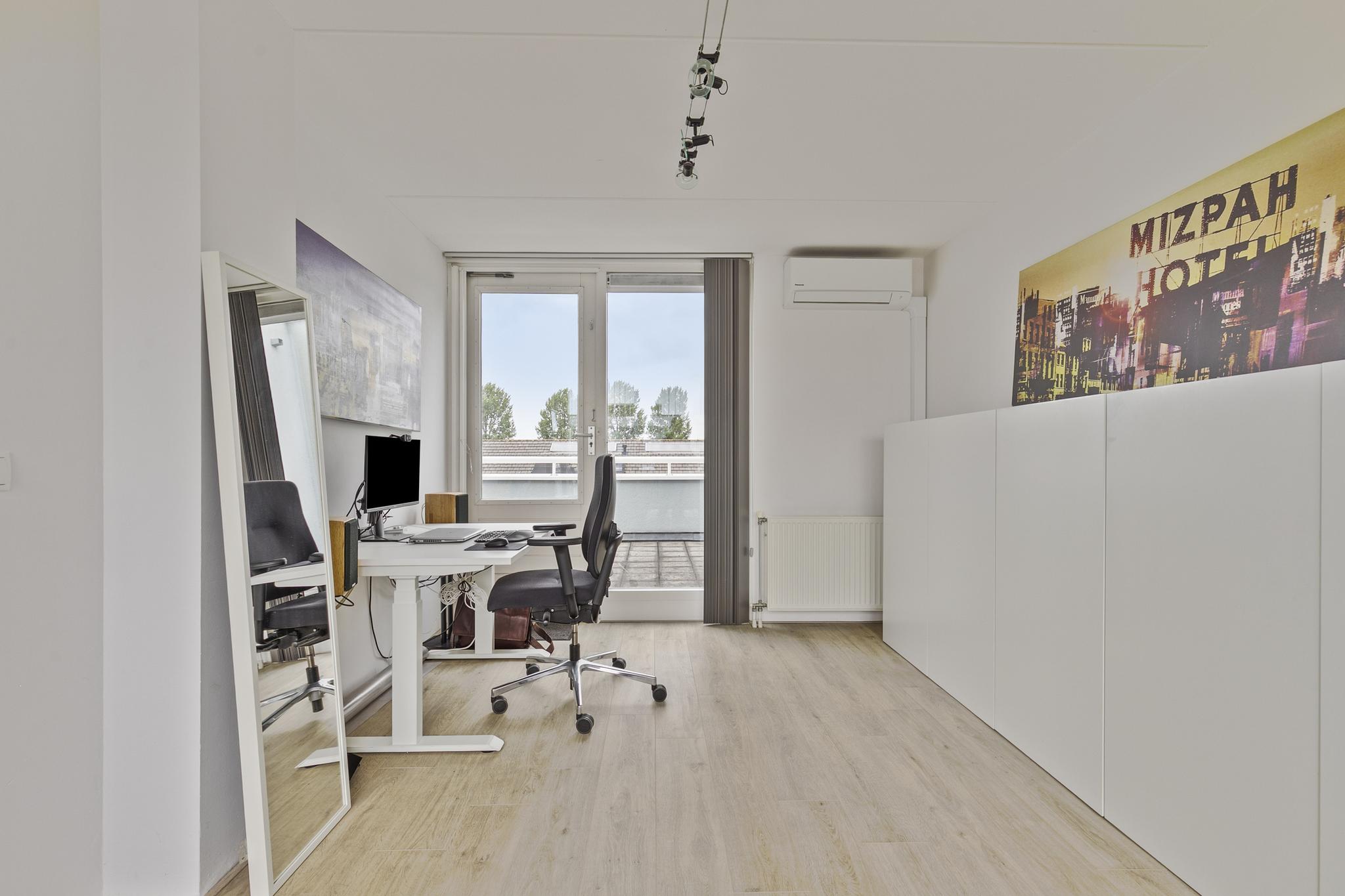 Verder is hier de vierde, zeer ruime slaapkamer, met grote raampartijen aan beide zijden en directe toegang tot het dakterras aan de voorzijde. Ook deze kamer is voorzien van airconditioning voor optimaal comfort.