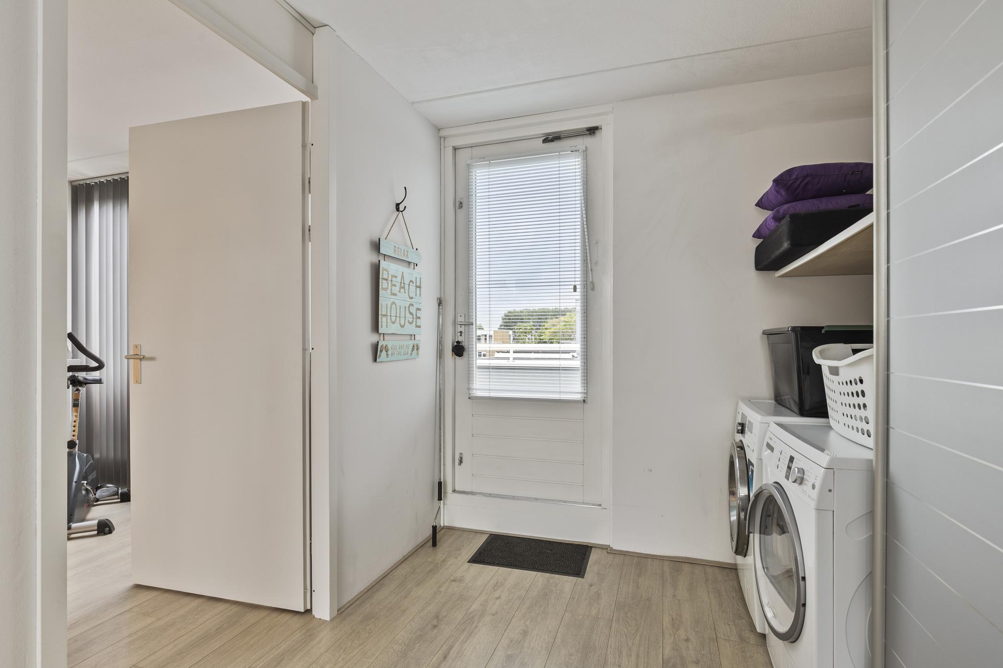 Ook deze verdieping biedt een zee aan ruimte, met aan beide zijden een riant dakterras. Op de overloop bevinden zich een brede schuifdeurkast, de wasmachine-/drogeraansluiting en toegang tot het achterste terras.