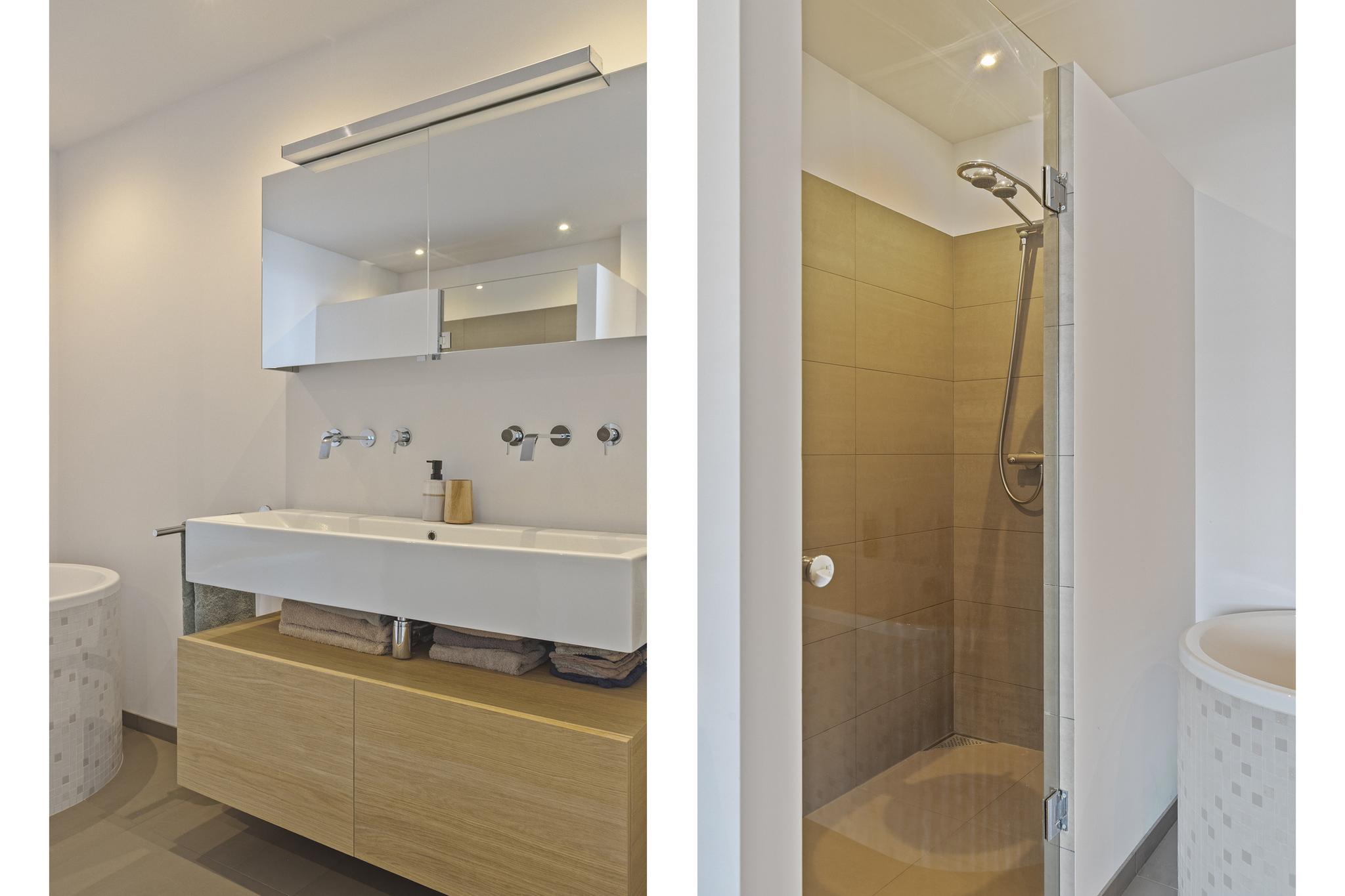 De overige twee slaapkamers – waarvan één momenteel in gebruik is als walk-in closet – delen een tweede, aparte gastenbadkamer met inloopdouche, wastafel en toilet: ideaal voor extra comfort en privacy.
