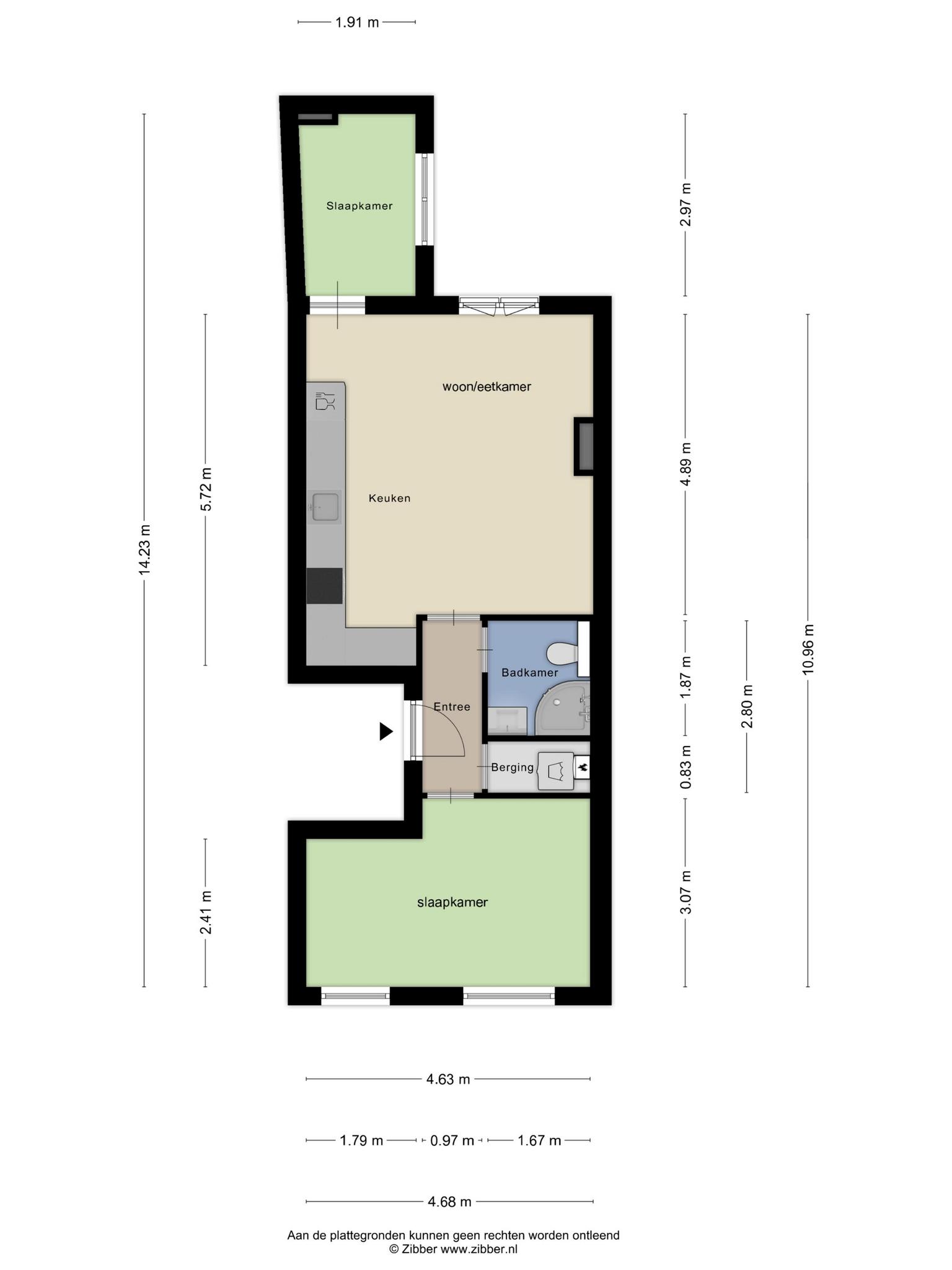 3-kamer appartement, 52 m² woonoppervlak, 171 m³ inhoud