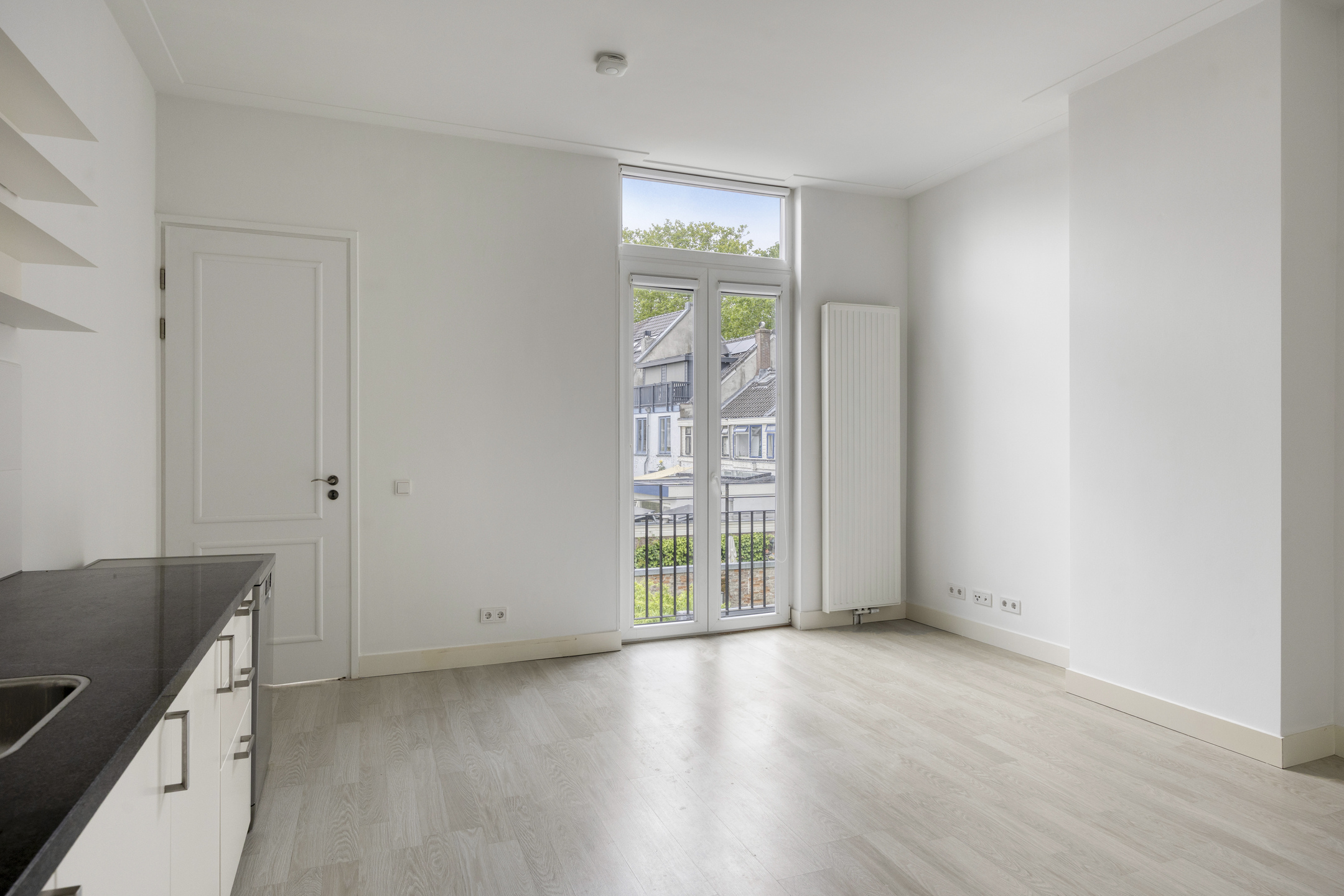 Bij binnenkomst valt direct de frisse en lichte uitstraling van dit appartement op. Alles is met oog voor detail afgewerkt. De echte blikvanger is de royale en gezellige woon-/eetkamer (ca. 24 m²) met een moderne, open keuken. Dankzij de Franse balkon met dubbele deuren valt het daglicht hier prachtig naar binnen en voelt de ruimte heerlijk ruim en luchtig aan.