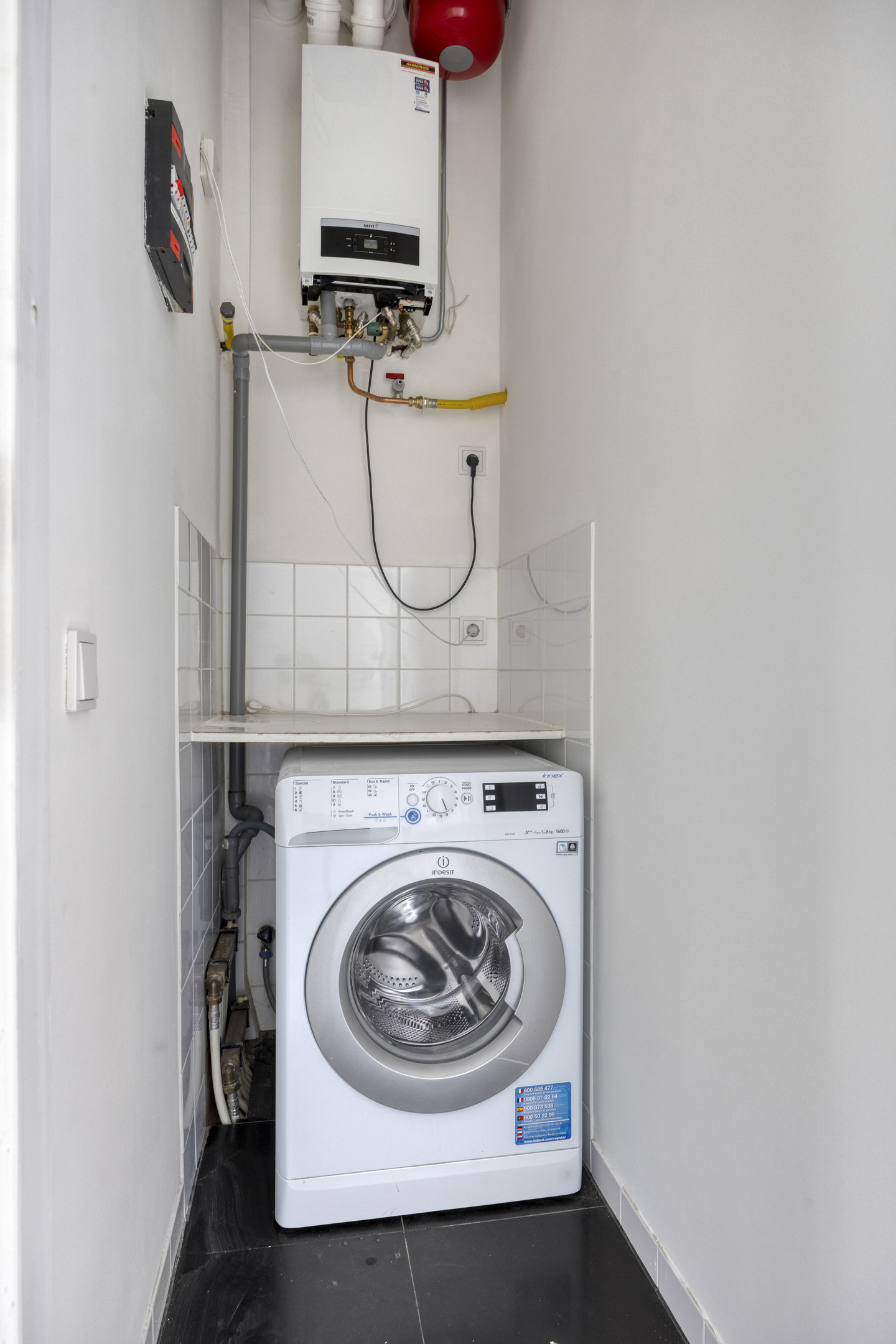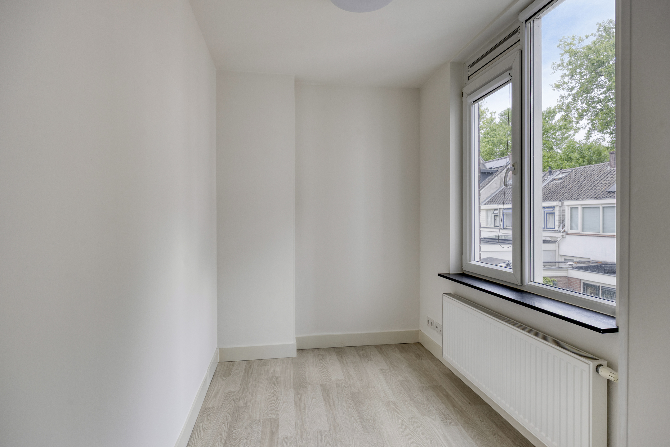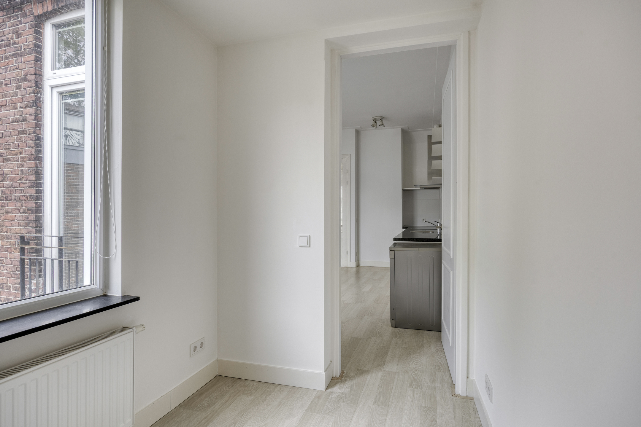 Verder beschikt het appartement over twee slaapkamers (ca. 13 m² en 5,4 m²), een handige cv-/wasruimte/berging en een moderne badkamer voorzien van inloopdouche, wastafel, toilet, handdoekradiator én comfortabele vloerverwarming.