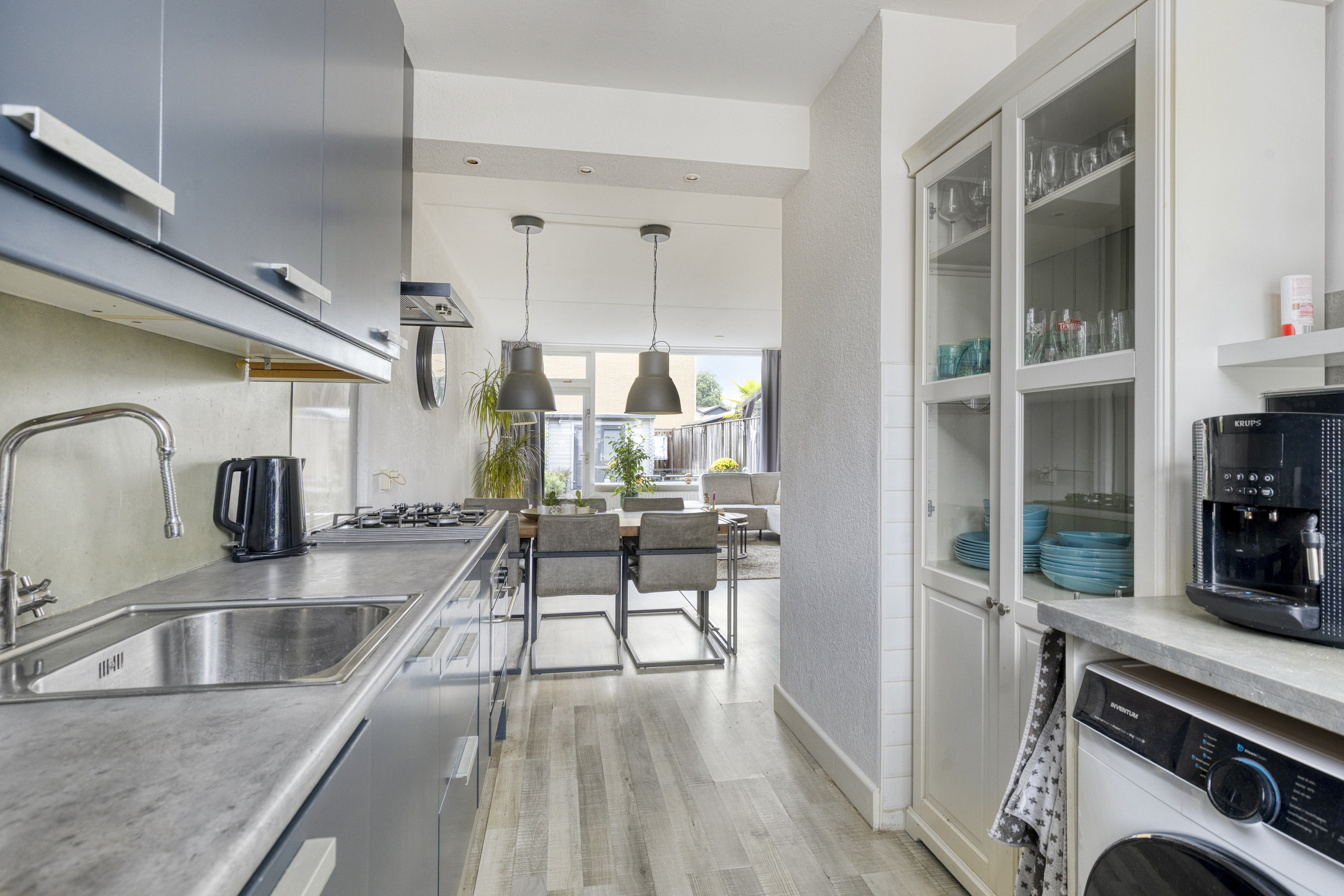 Je komt binnen in de hal met toilet (vernieuwd in 2020), meterkast, een praktische garderobekast en de trapopgang naar de eerste verdieping. De woonkamer is licht en modern van uitstraling en beschikt over een trapkast voor dagelijkse opbergruimte. De ramen in de woonkamer zijn onlangs vervangen door HR ++ glas. Aan de voorzijde ligt de keuken (2015), praktisch ingericht en voorzien van een kunststof werkblad, koel-vriescombinatie, vaatwasser, 4-pits kookplaat, afzuigkap, combi-oven/magnetron en aansluitingen voor wasmachine en droger.