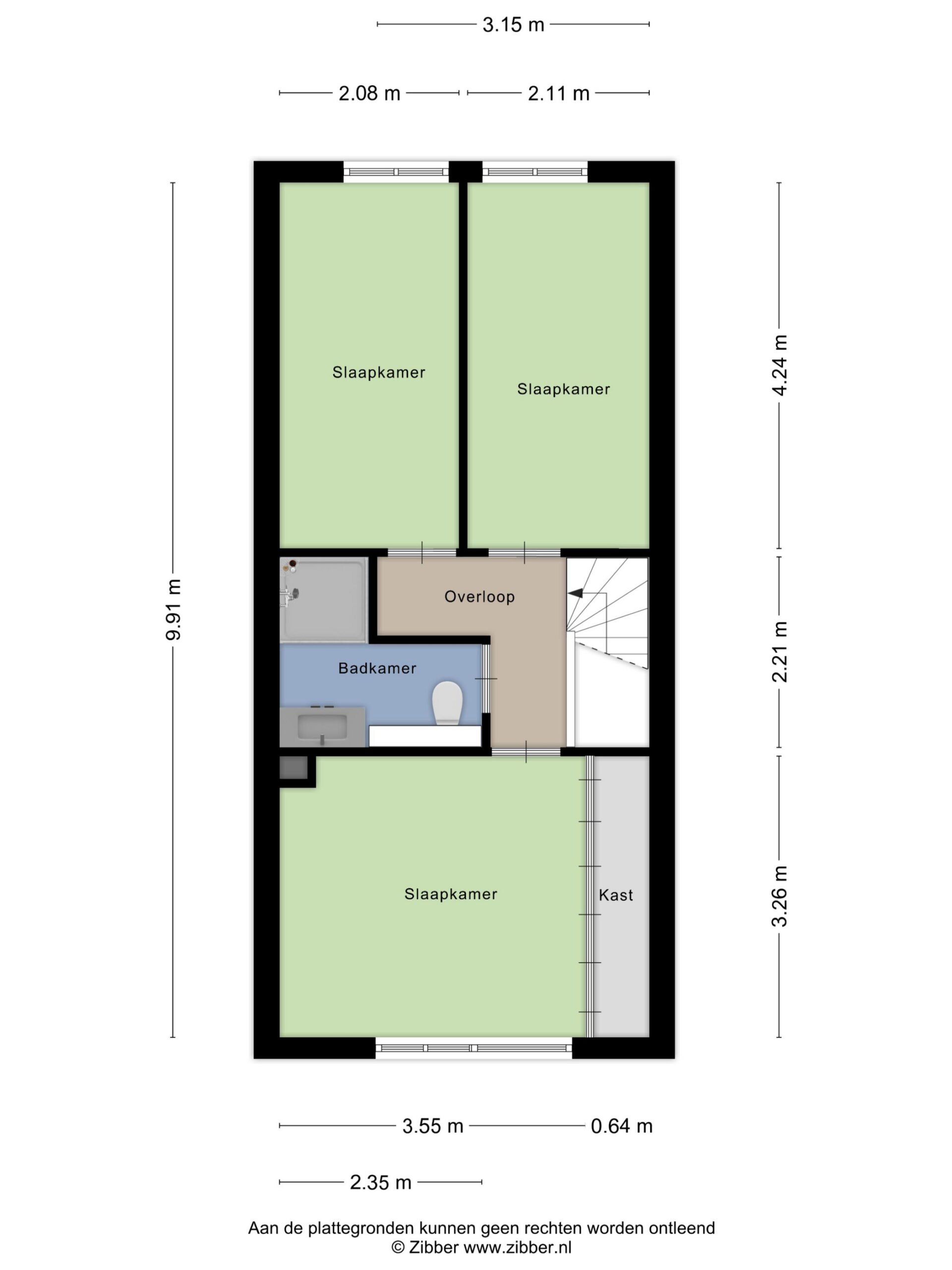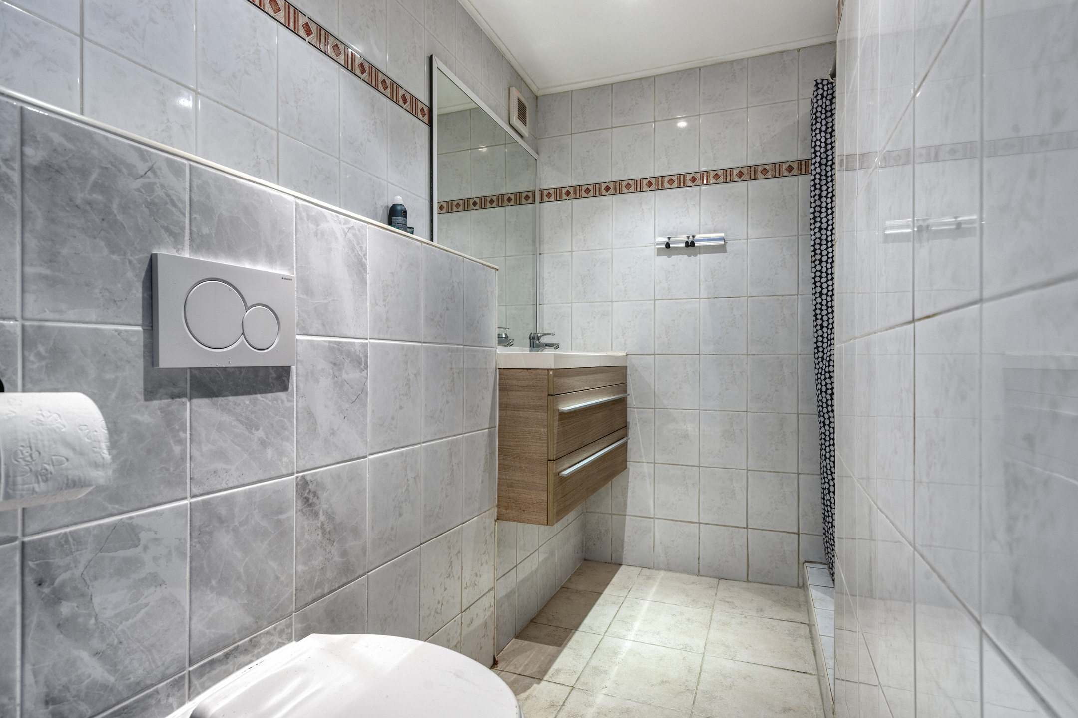 De overloop geeft toegang tot drie ruime slaapkamers (ca. 13,5 m², 9 m² en 8,8 m²) en de badkamer, uitgerust met een inloopdouche, dubbele wastafel met meubel, toilet en mechanische ventilatie. De royale hoofdslaapkamer ligt aan de voorzijde van de woning. In 2021 zijn de kozijnen op deze verdieping vervangen en voorzien van HR++ glas. Ook zijn er rolluiken geplaatst voor extra comfort. Het bitumen dak is geheel vernieuwd in 2024. De cv-opstelling bevindt zich op de overloop (Nefit, 2009).