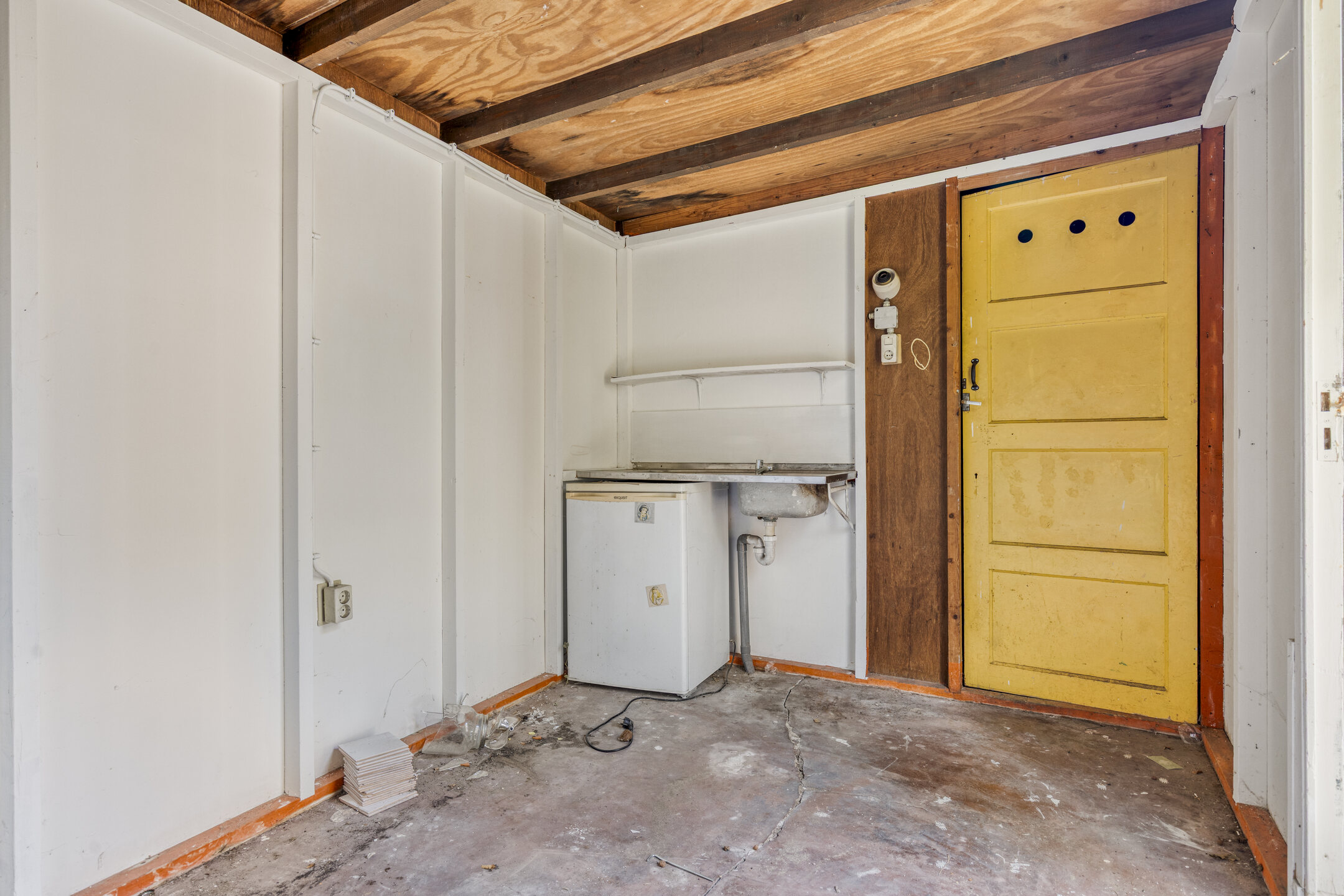 In de tuin staat een ruime vrijstaande berging (ca. 12 m²) met een klein keukenblok en toilet.