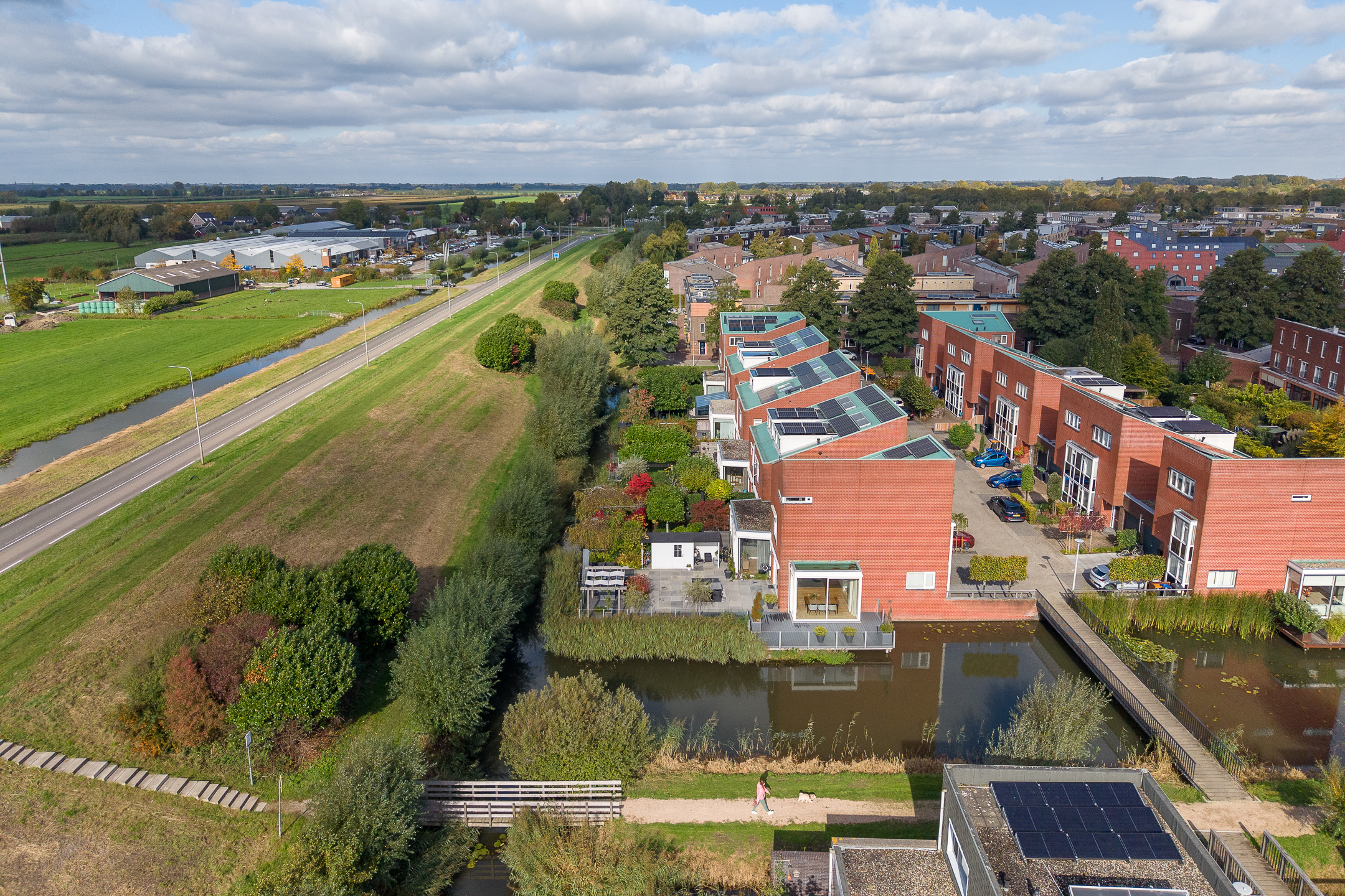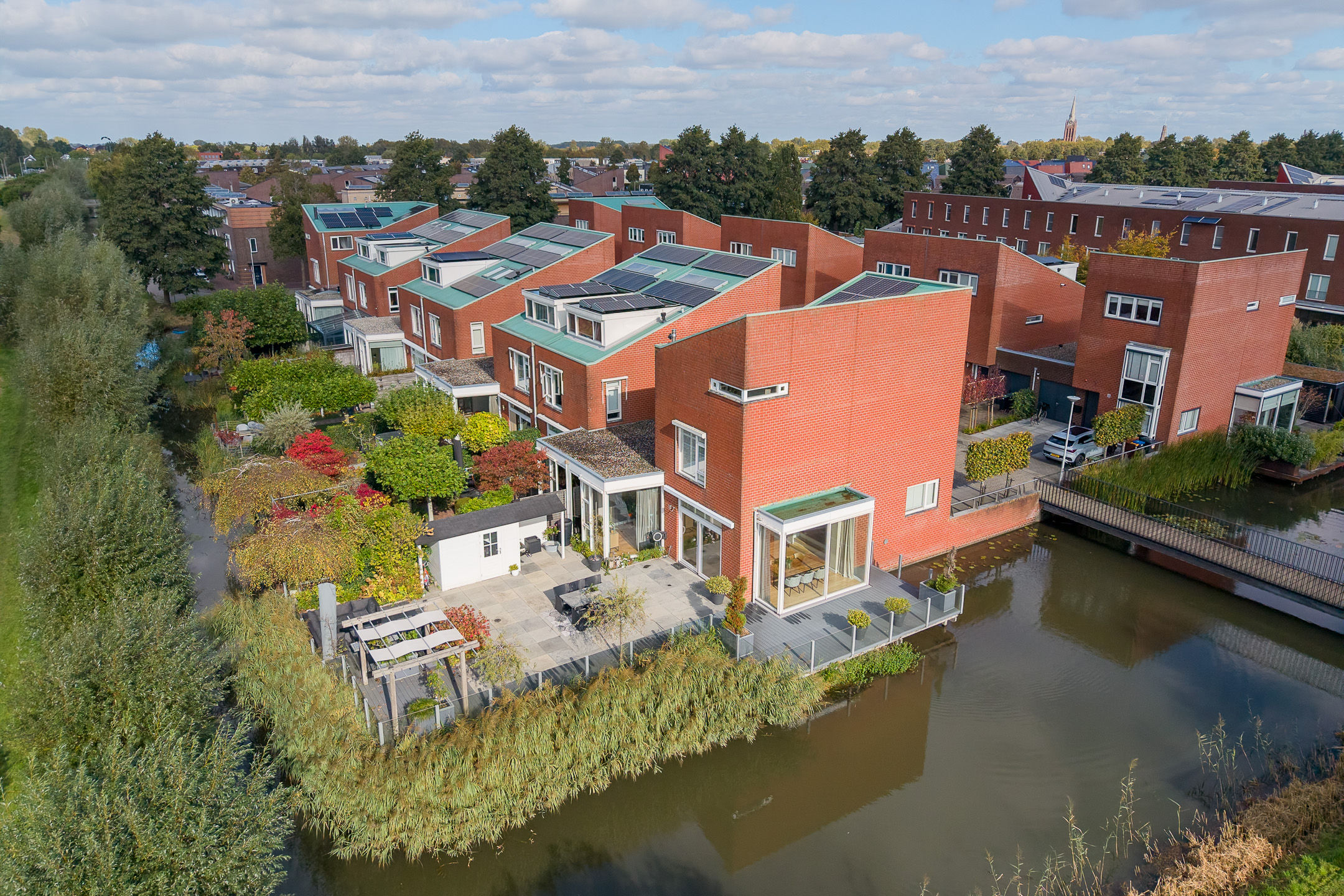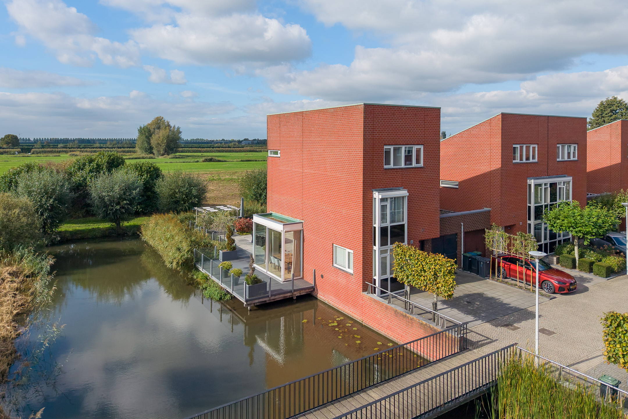 De woning (met een royaal woonoppervlak van 183 m2) ligt direct aan het (deels eigen) water, met vrij uitzicht over de groene omgeving. Hier word je wakker met het ruisen van het riet, het zonlicht dat over het water glinstert en het gezang van vogels — een plek waar elke dag als vakantie voelt.