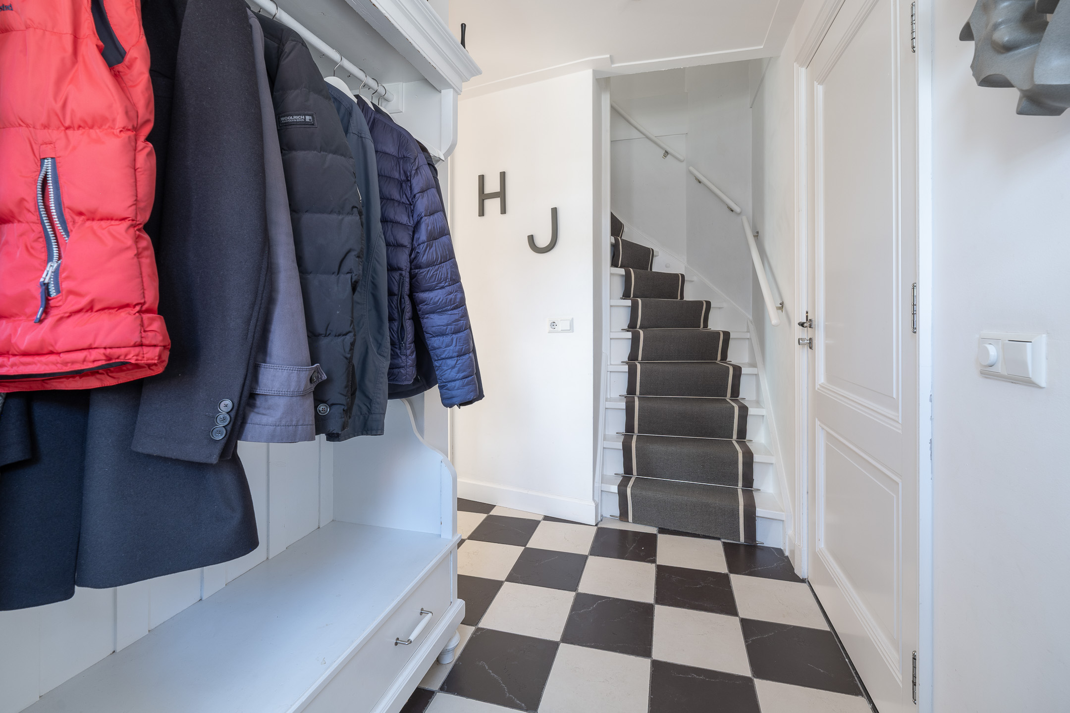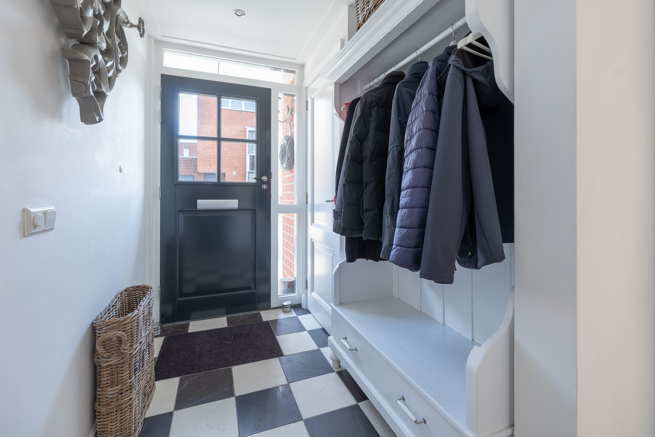 Aan de voorzijde is ruimte voor het parkeren van twee auto’s op eigen terrein, indien gewenst is de laadpaal ter overname. De ruime entree met garderobe en de prachtige designradiator “Heatwave” van Jaga geeft meteen de stijlvolle toon aan. De inpandige garage is ook bereikbaar vanuit de entree en is voorzien van verwarming, waterontharder en een uitstortgootsteen.