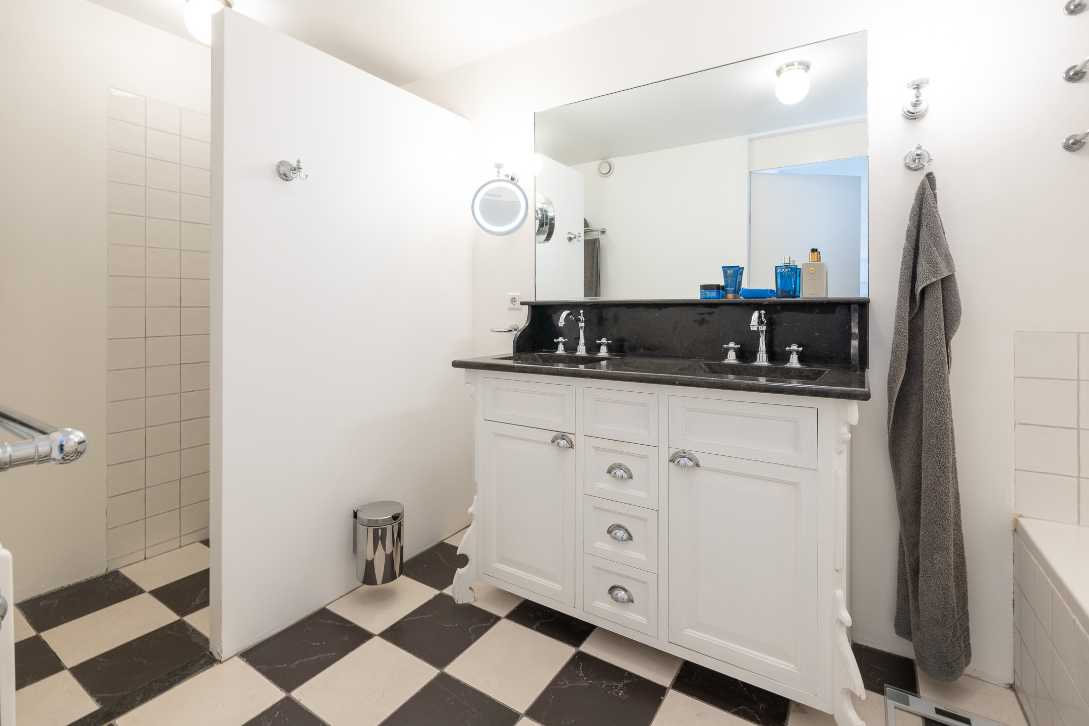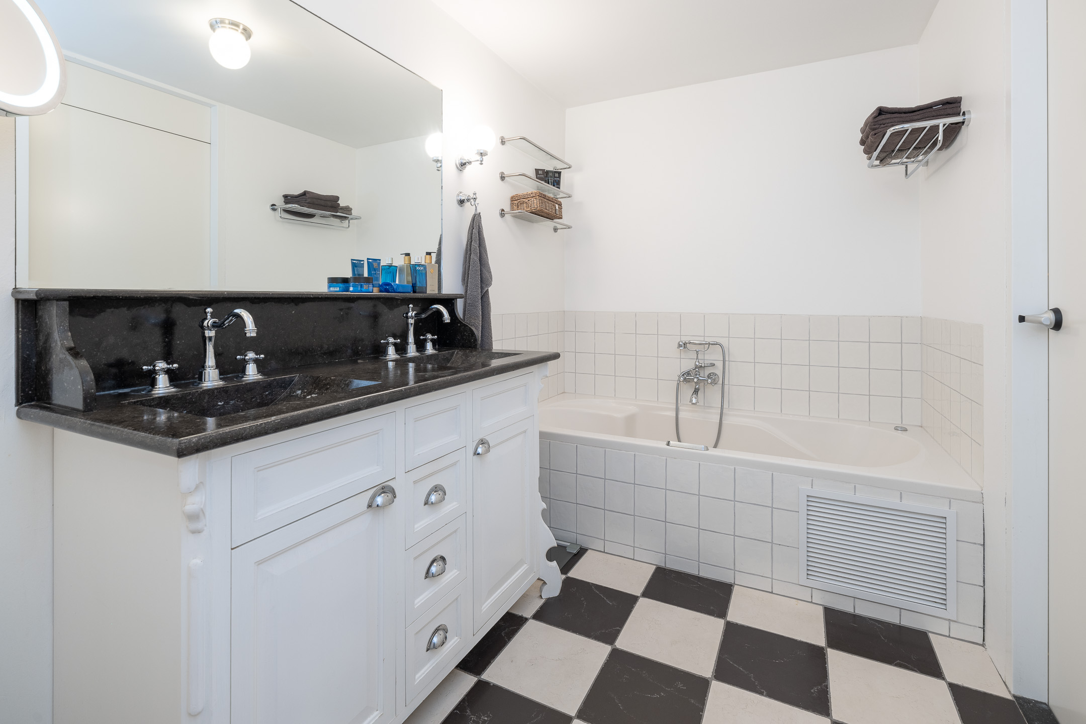 De uitgebouwde badkamer beschikt over een ligbad met jacuzzi, ruime inloopdouche, dubbele wastafel met hardstenen blad, verwarmde spiegel, designradiator en elektrische vloerverwarming.