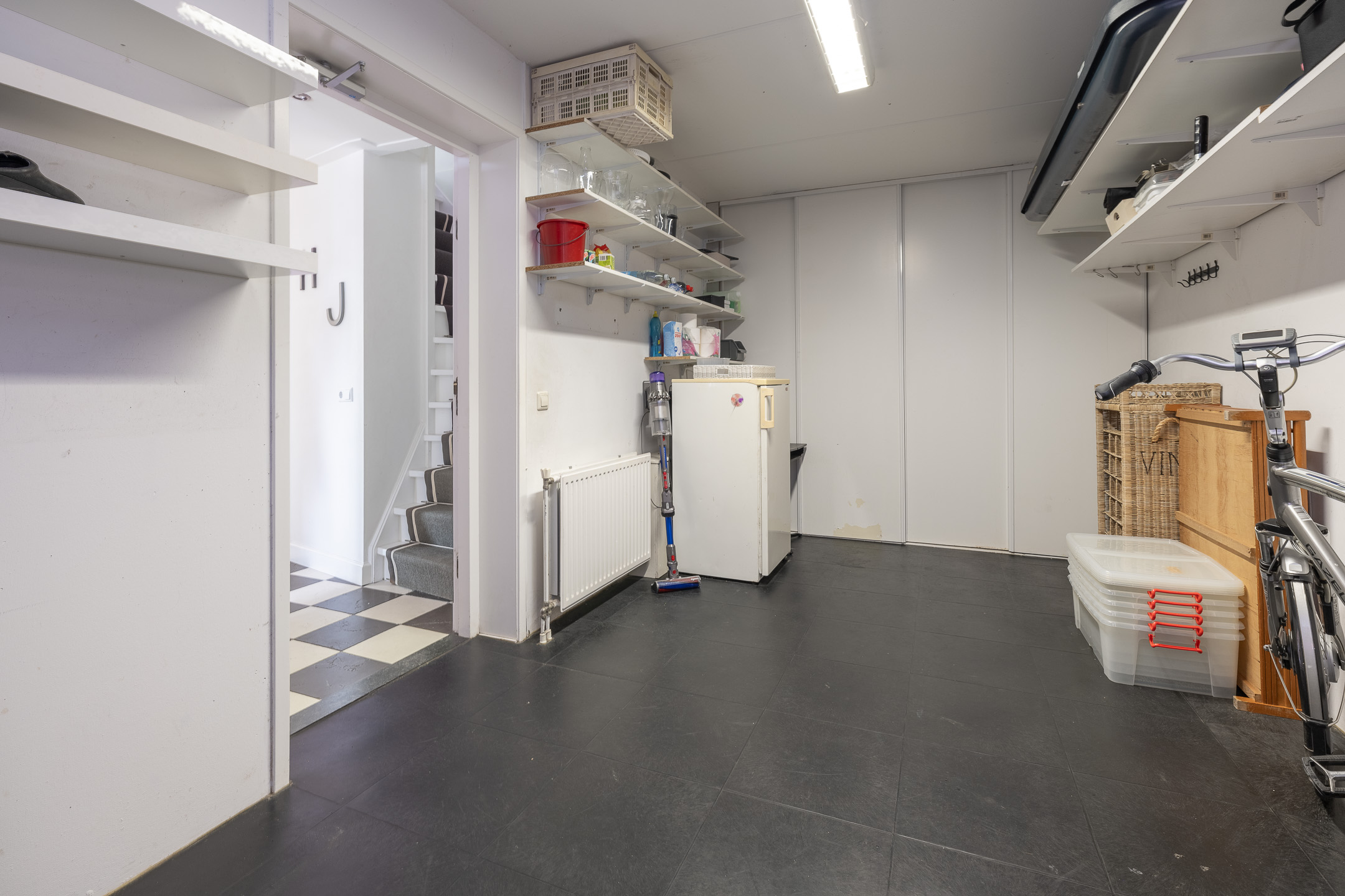 Inpandige garage met verwarming, waterontharder en tegelvloer;