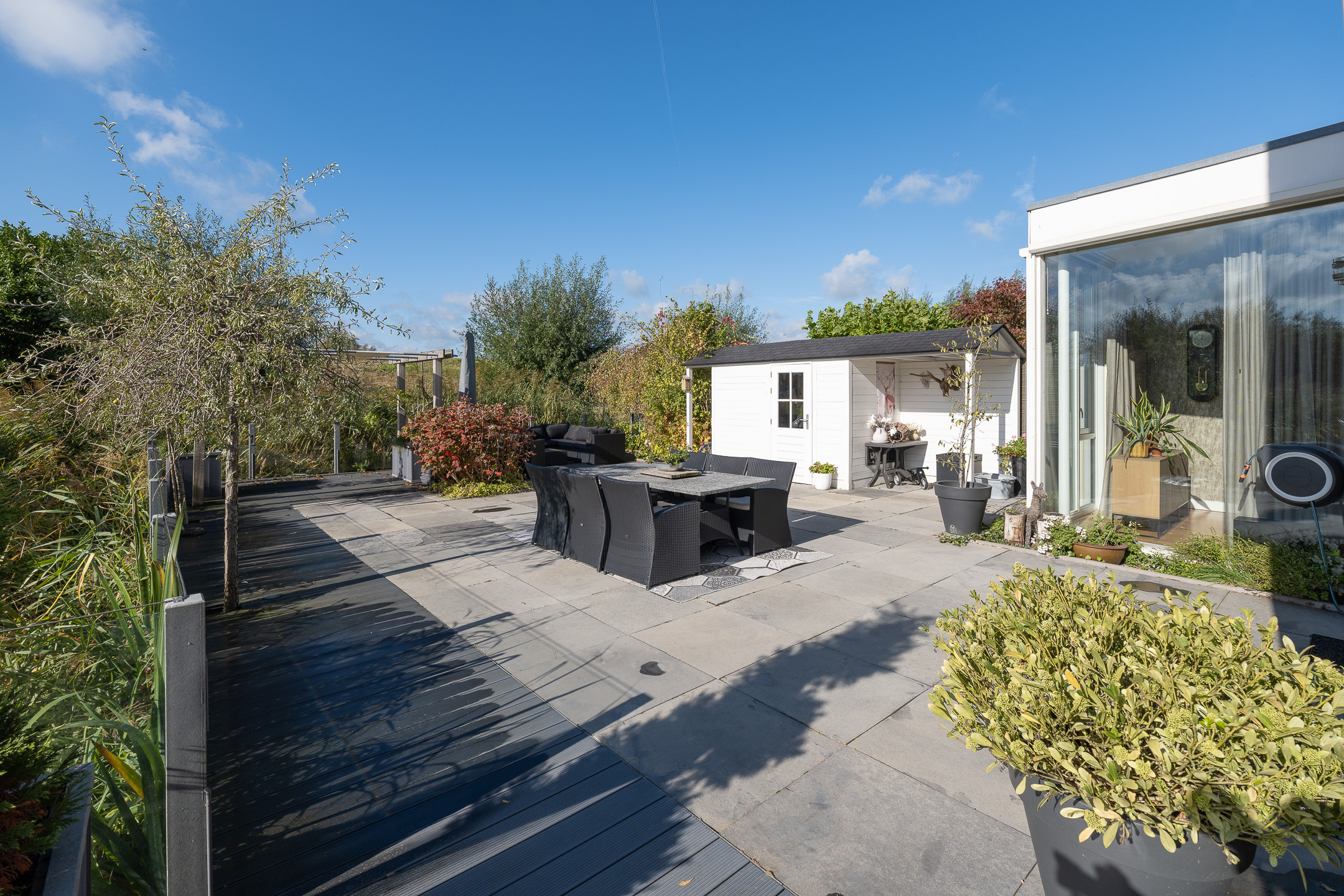 De tuin is een absolute blikvanger en verlengstuk van het huis. Gelegen op het zuidwesten, met de hele dag zon en een breed uitzicht over het water en het groen, is dit een plek waar je wilt blijven.