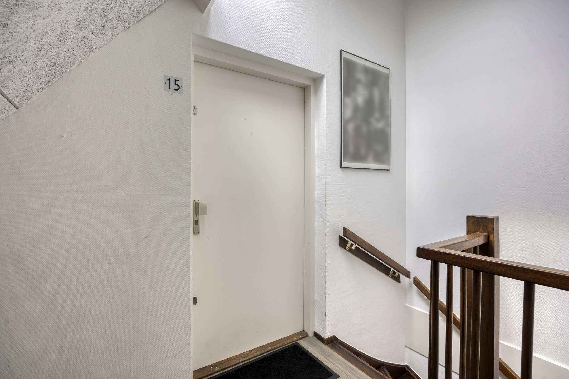 Je komt binnen via de centrale, afgesloten entree. Hier vind je ook de bergingen en de trapopgang naar de appartementen.