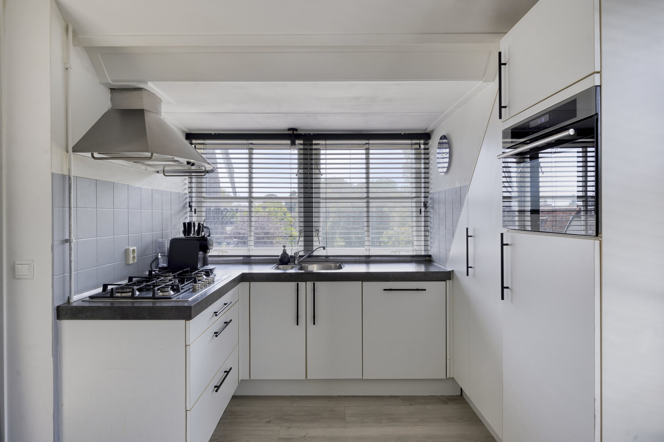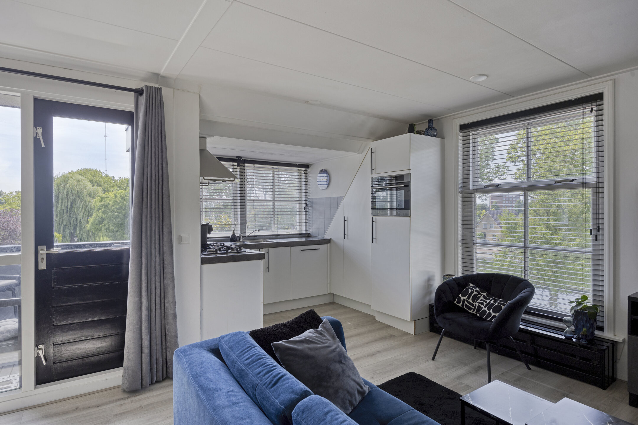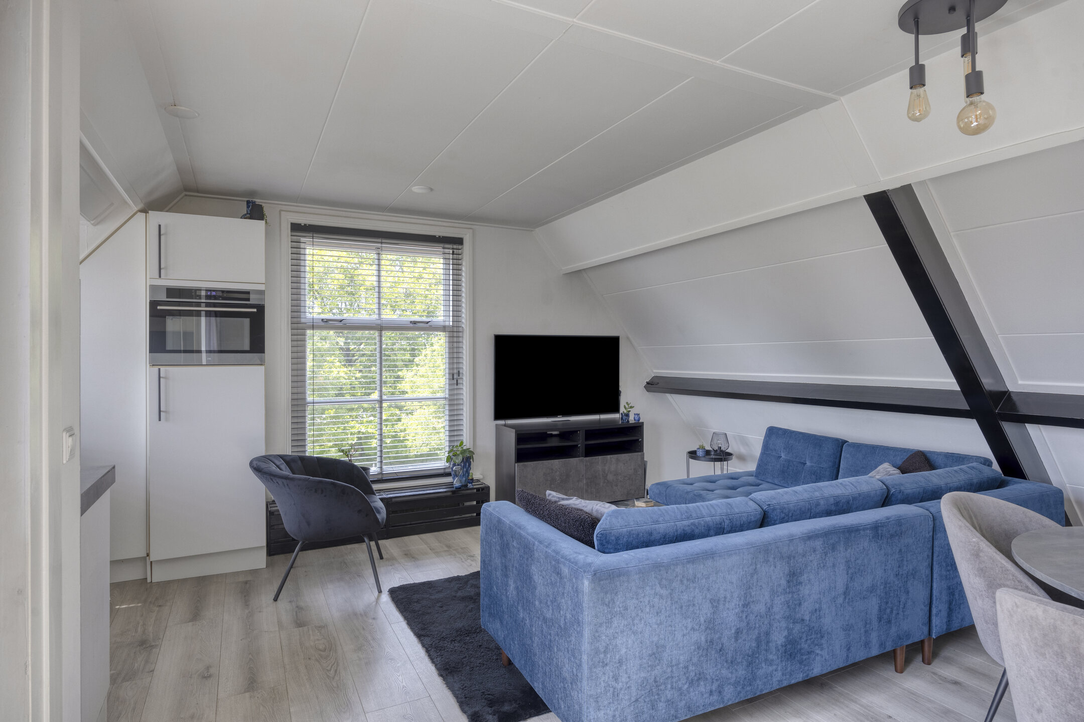Aan de voorzijde van het appartement vind je de lichte en gezellige woonkamer met moderne, open keuken. Deze is voorzien van een 5 pits gaskookplaat, vaatwasser, koelkast en combi-oven magnetron. Vanuit de woon/eetkamer is er toegang tot het gezellige dakterras, gelegen op het zonnige zuiden. Hier heb je een prachtig uitzicht op de historische korenmolen.