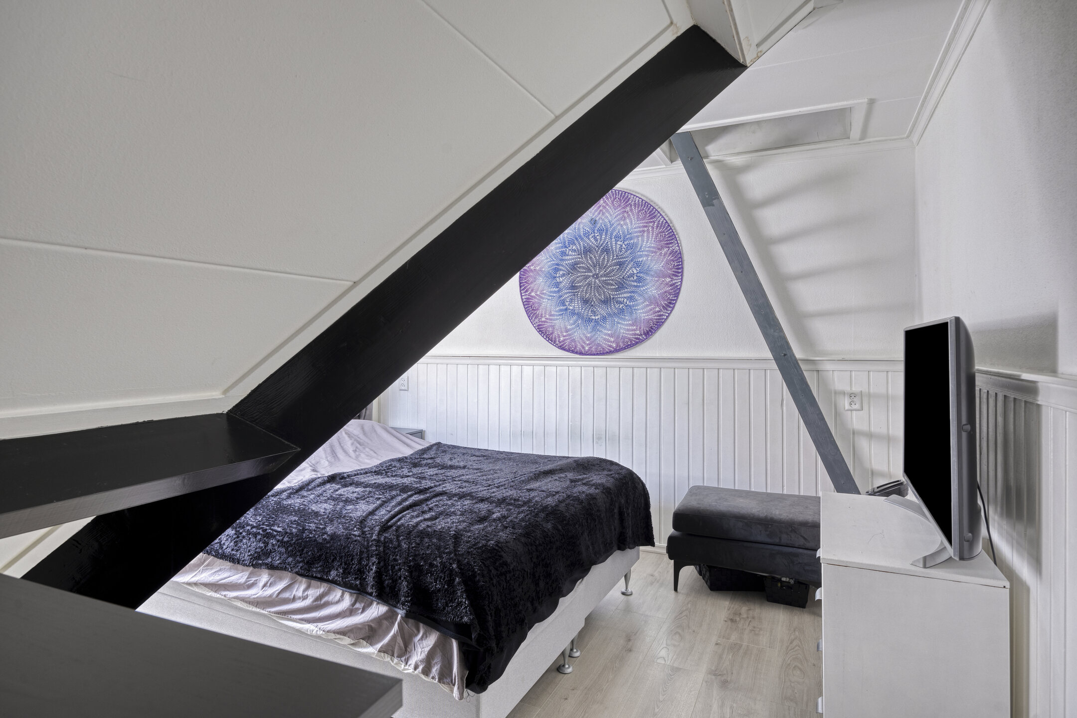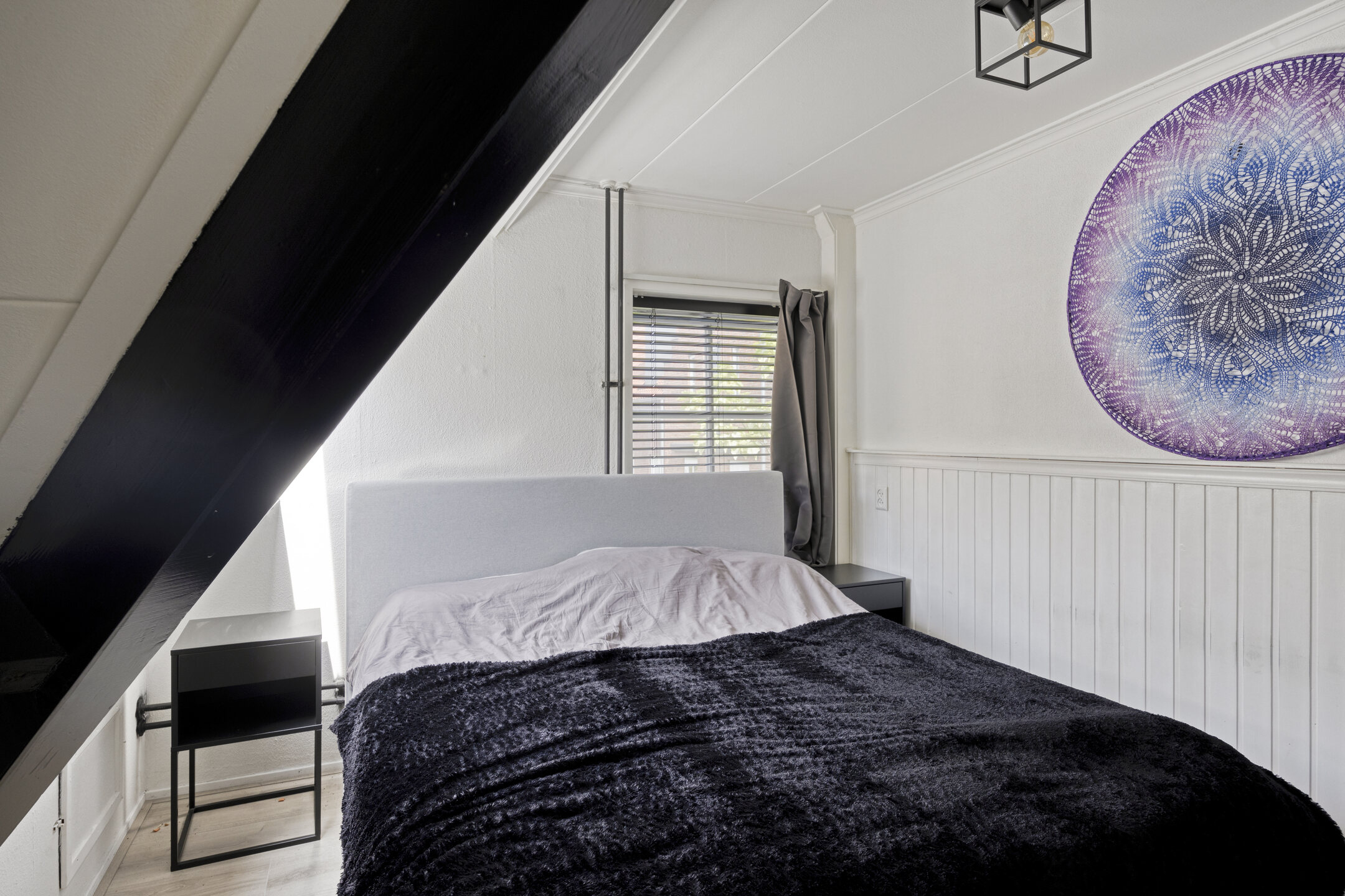 Aan de achterzijde van het appartement ligt de ruime slaapkamer met Velux dakraam.