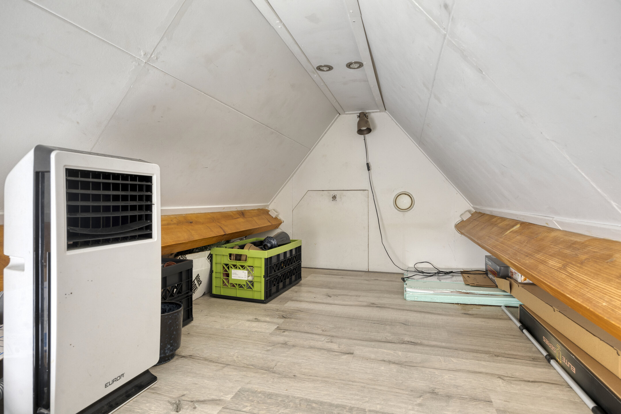 Vanuit de slaapkamer is er toegang tot een ruime bergvliering. Hier bevindt zich de CV ketel (intergas HR 2022) en de mechanische ventilatie-unit.