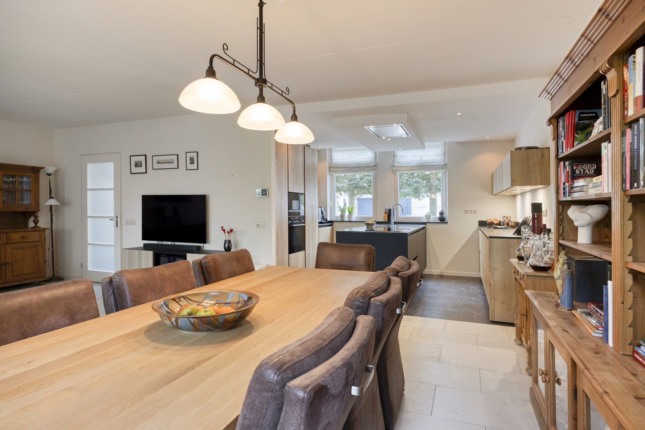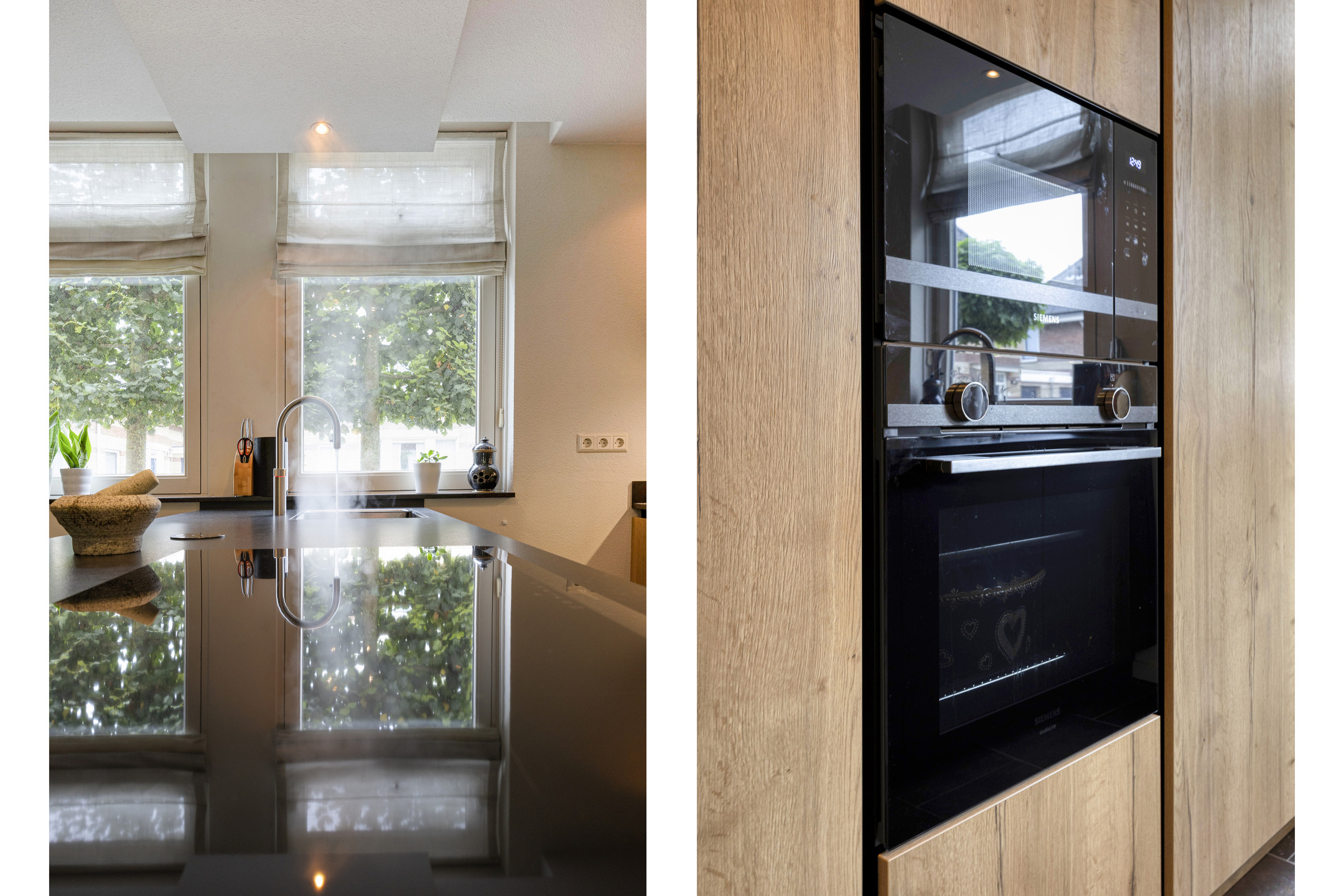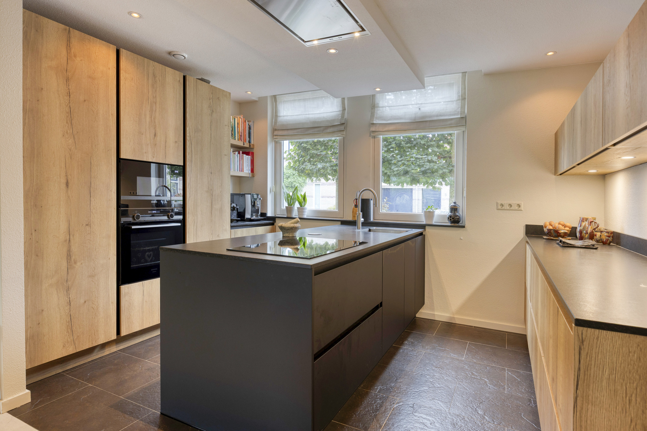 De ruime woon/eetkamer vormt samen met de prachtige keuken uit 2022 het gezellige middelpunt van de woning. Het stijlvolle granieten werkblad, de geïntegreerde stopcontacten en de hoogwaardige inbouwapparatuur maken de keuken perfect voor kookliefhebbers én voor gezellige avonden met familie en vrienden. De keuken is uitgerust met een Quooker (7 liter), vaatwasser, 5-pits inductiekookplaat, heteluchtoven, magnetron, een grote koelkast met vriesvak, een plafond afzuigunit met afstandsbediening en ledverlichting, én geïntegreerde spots boven én onder de kastjes.