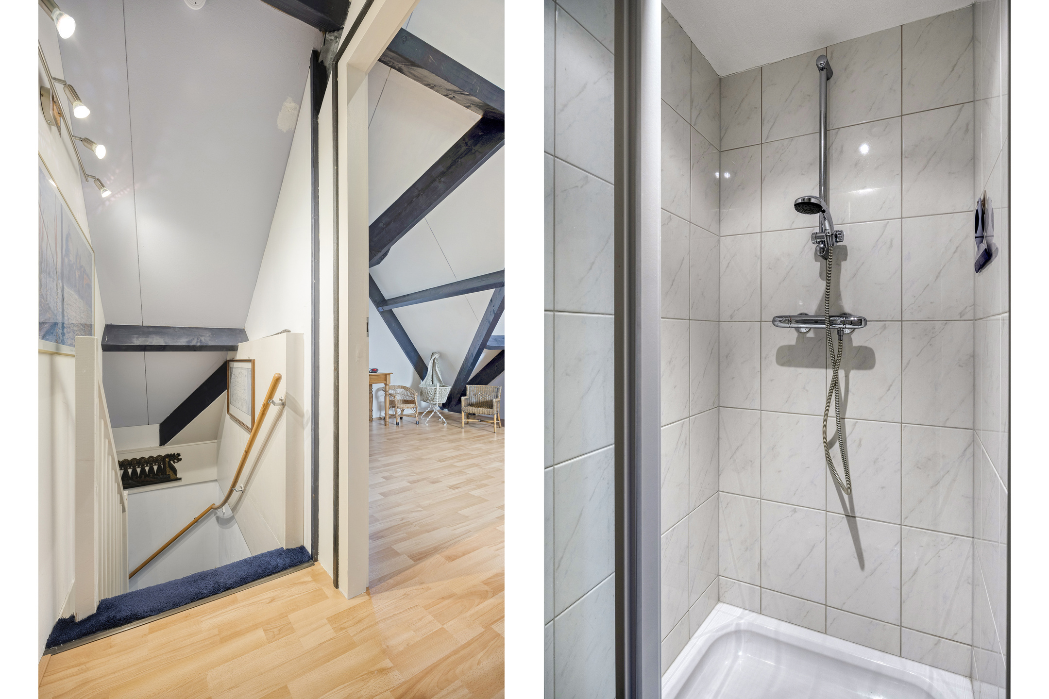 De tweede verdieping biedt nog meer ruimte en mogelijkheden. Dankzij het dakraam en de dakkapel is deze verdieping aangenaam licht. De overloop is voorzien van een extra douche. Links bevindt zich de ruime en gezellige derde slaapkamer (ca 22 m2). Deze is 2024 volledig opgeknapt. Deze ruimte is ideaal als slaap/logeerkamer, thuiswerkplek of hobbyruimte.