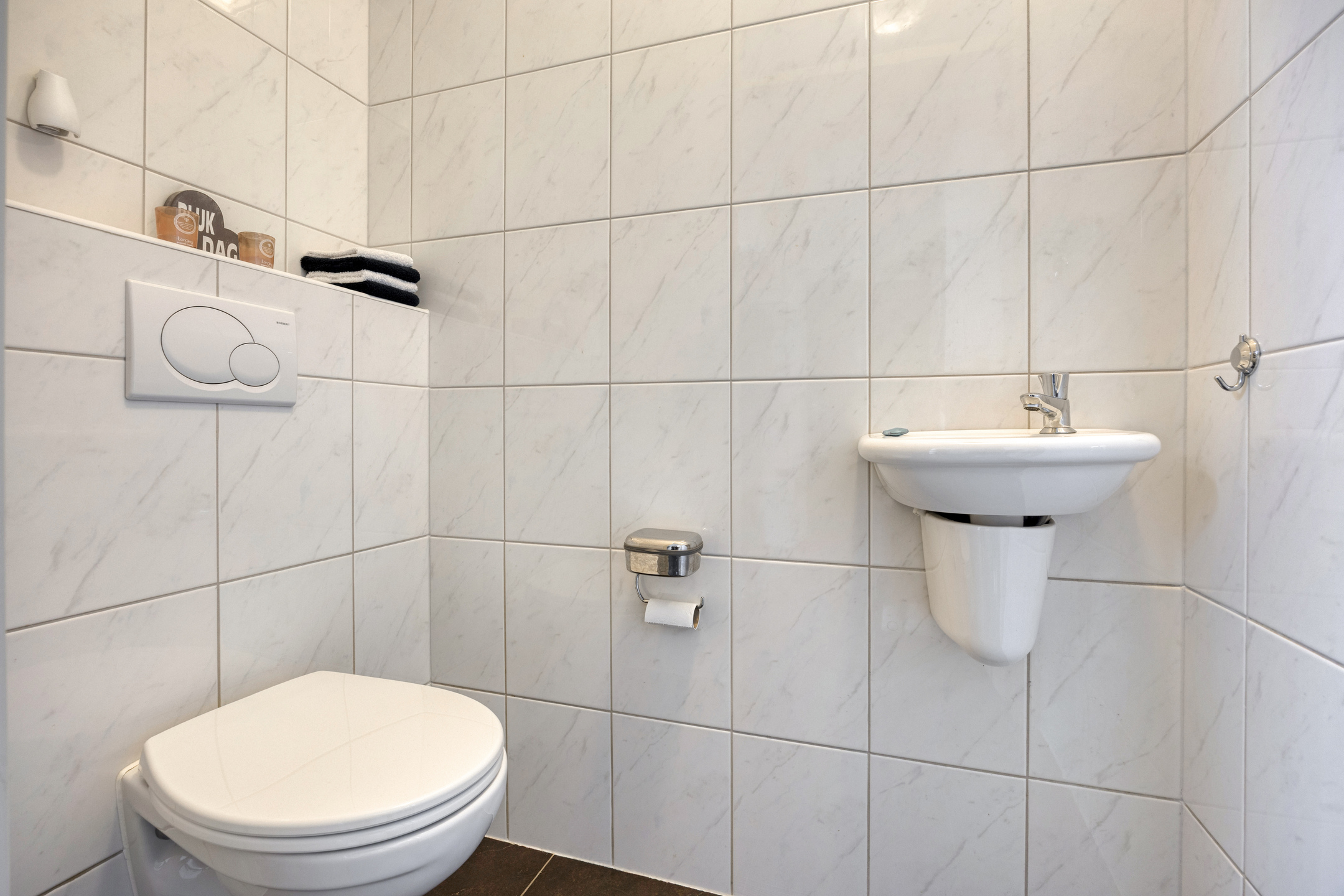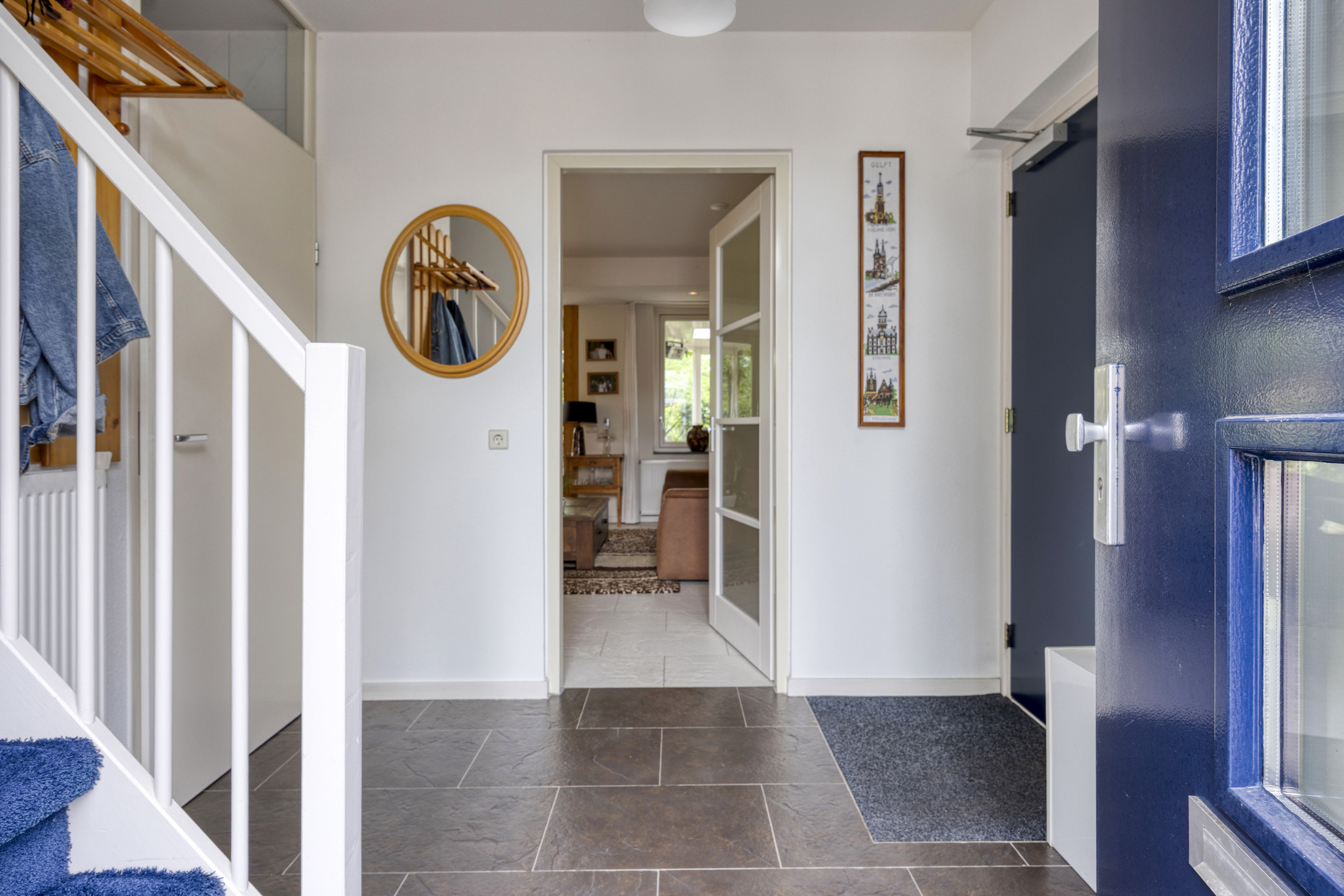 Bij aankomst valt direct de verzorgde uitstraling van de woning op. De voortuin is eind 2024 volledig vernieuwd en modern aangelegd. Je stapt binnen in een ruime hal met de meterkast (uitgebreid in 2024), trapopgang en een modern toilet met fontein. Vanuit hier heb je toegang tot de woonkamer én de berging.