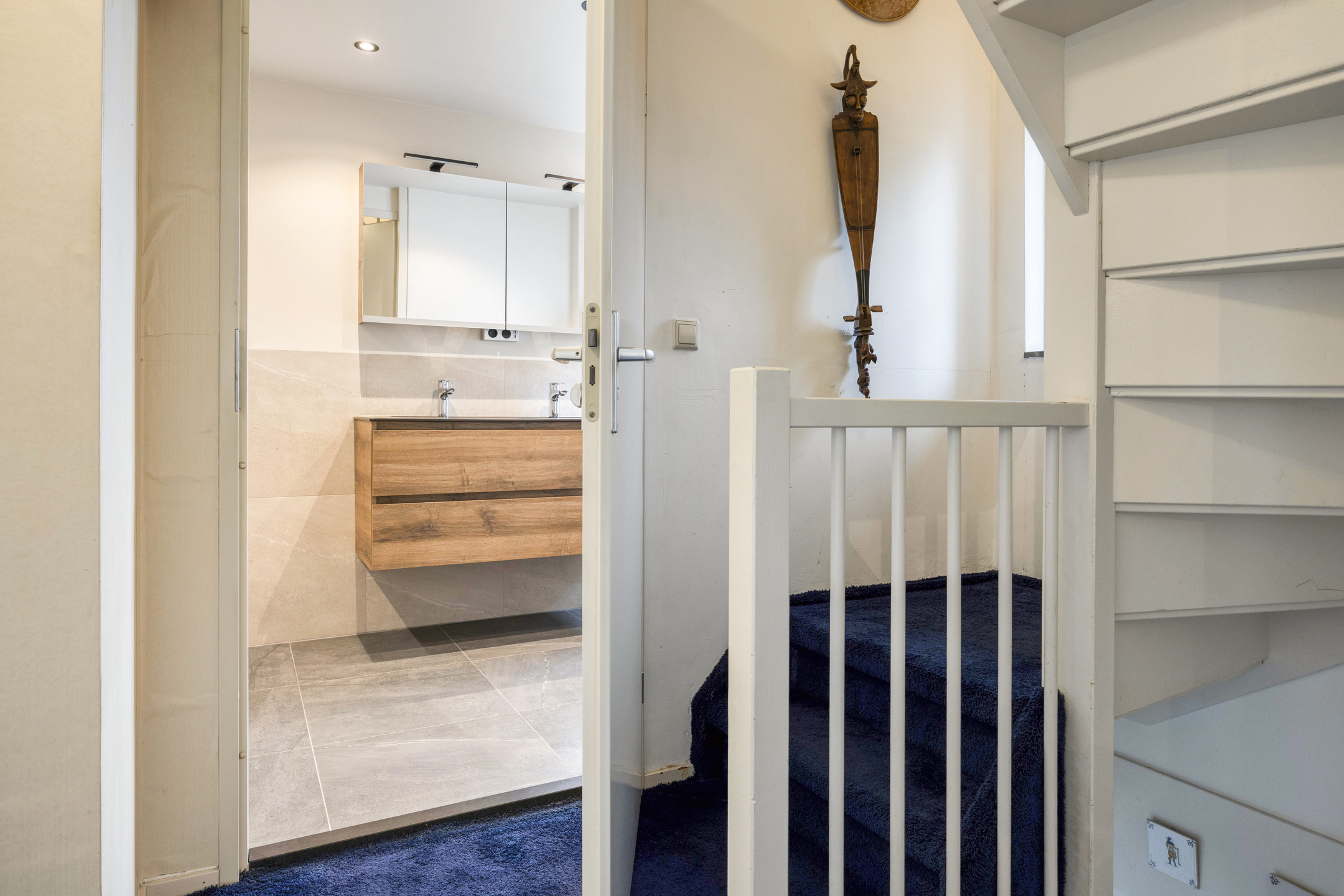 Vanaf de overloop is er rechts toegang tot een berging met de mechanische ventilatie-unit, de cv-installatie, zonneboiler, omvormer zonnepanelen en aansluitingen voor wasmachine en droger.