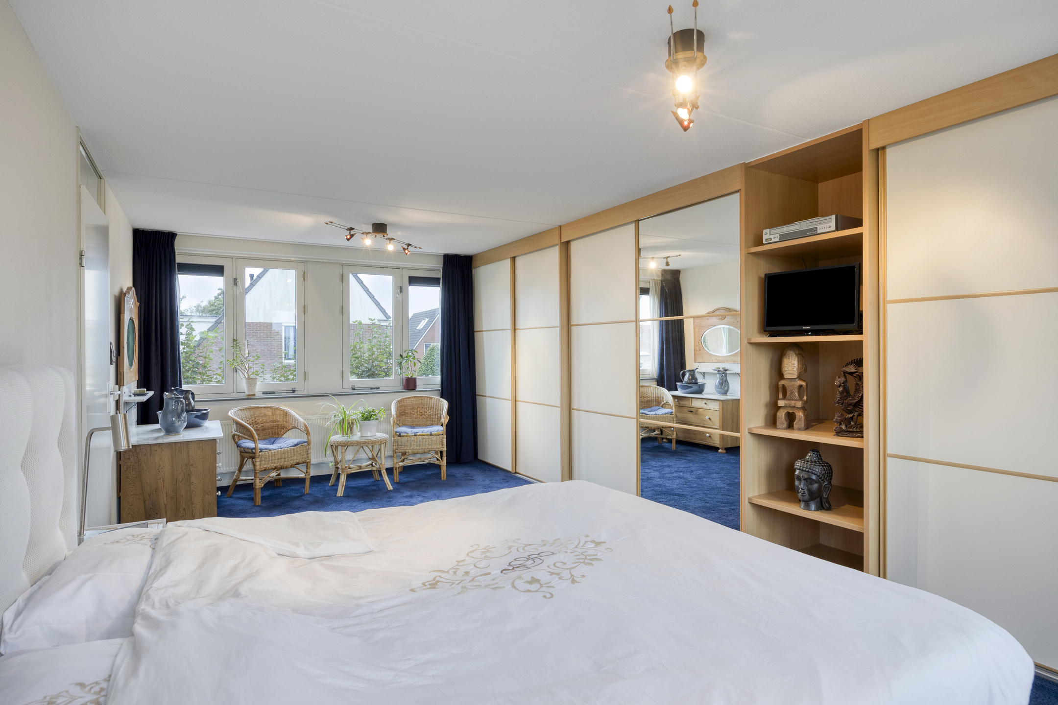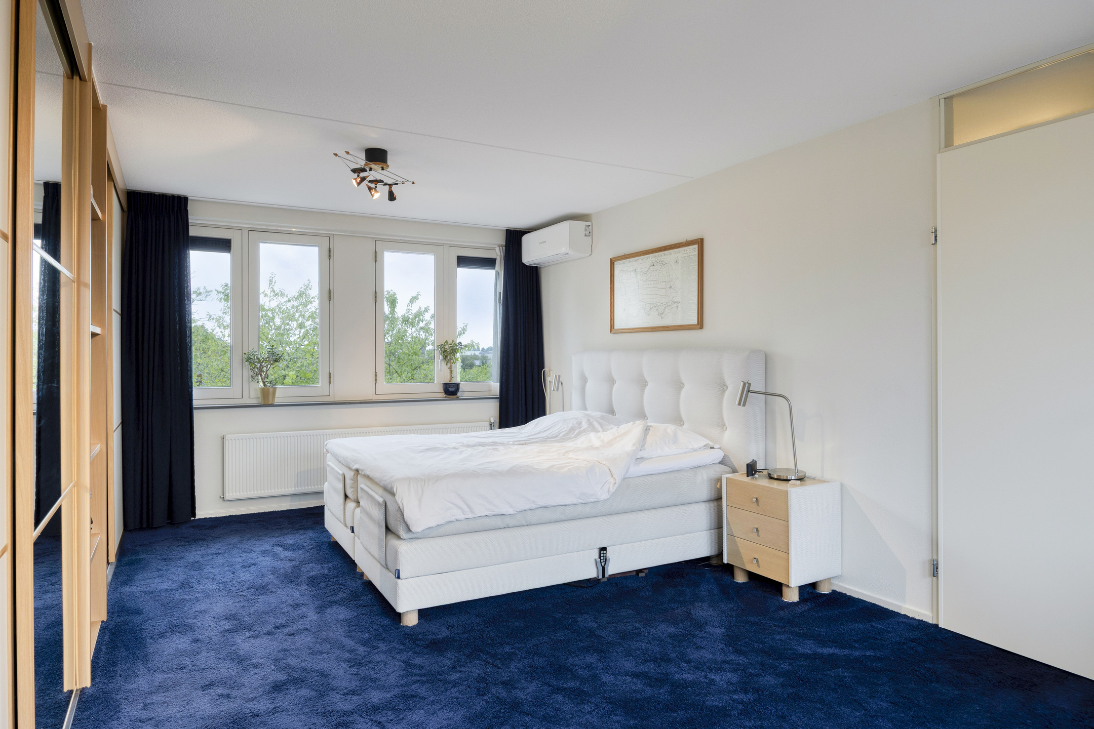 Op de eerste verdieping bevinden zich twee slaapkamers (voorheen drie), elk met een warme en rustige uitstraling. De hoofdslaapkamer is ruim opgezet en voorzien van een kamerbrede schuifdeurkast en een moderne airco die zowel kan koelen als verwarmen — ideaal voor elk seizoen.