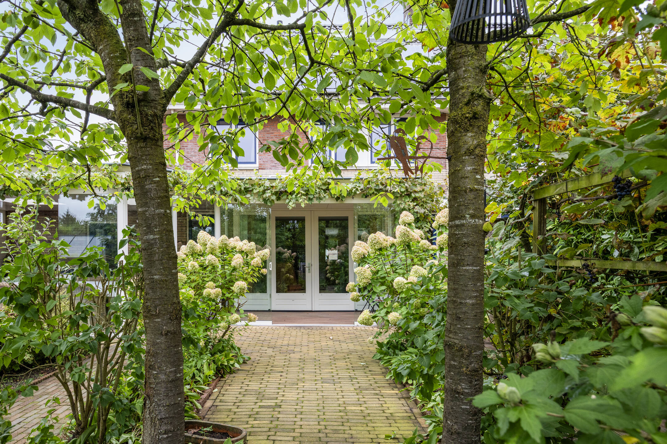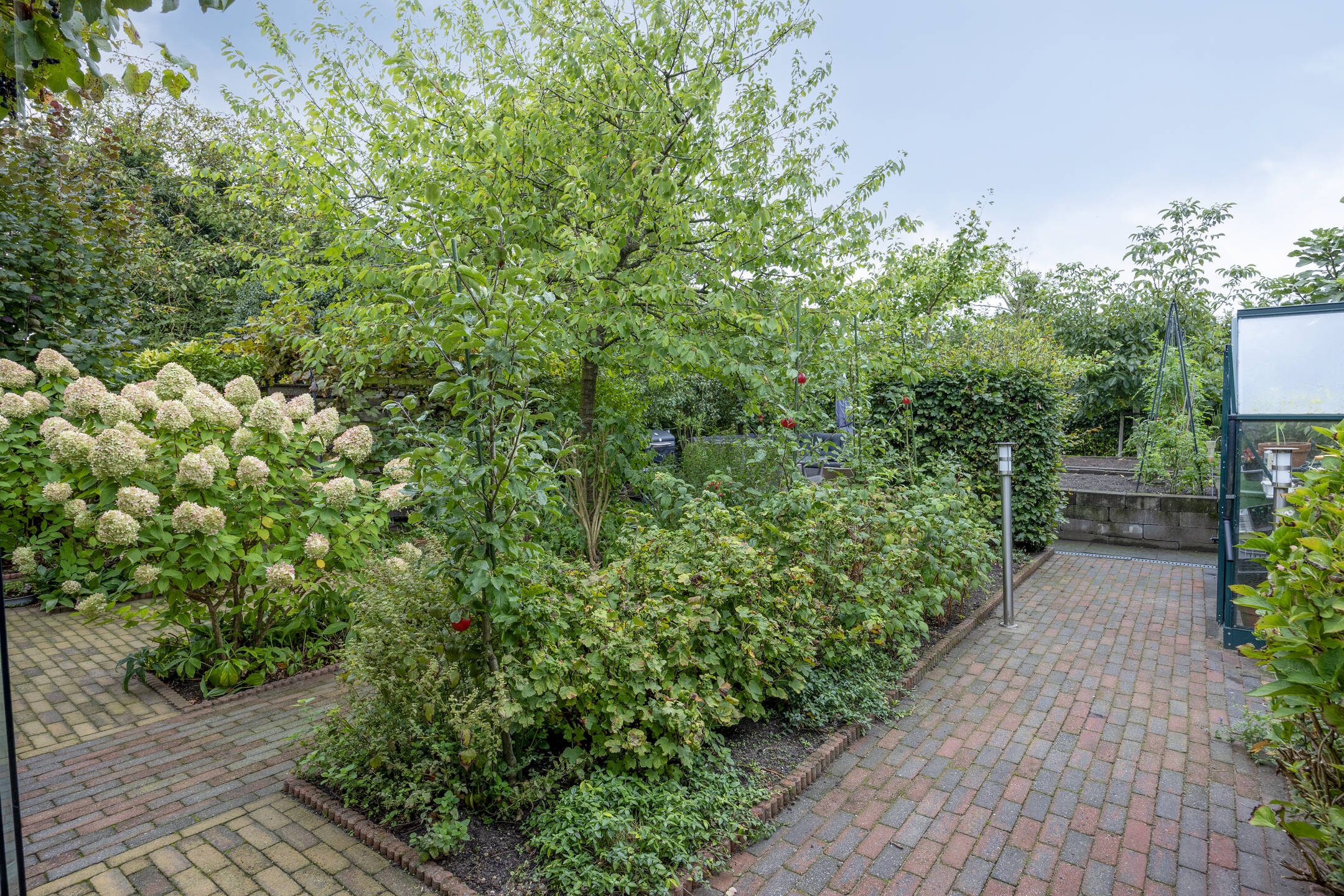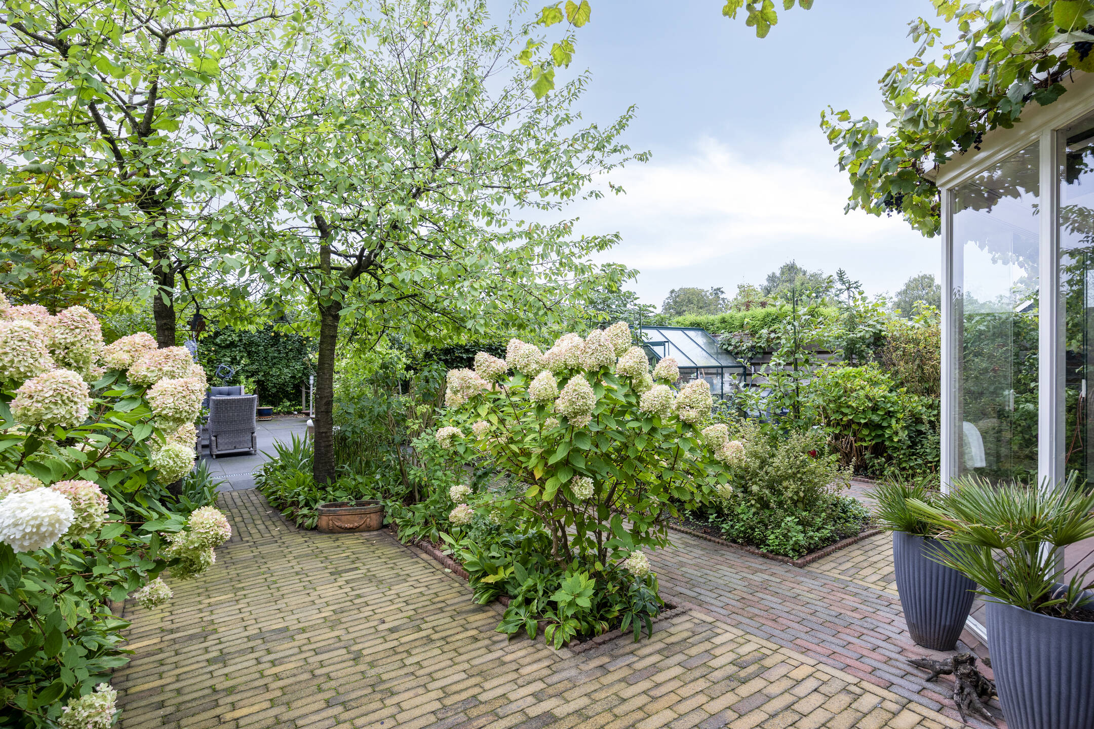 De tuin ligt op het zuidwesten, waardoor je van ’s ochtends tot laat in de avond kunt genieten van de zon. Dankzij slimme drainage, extra waterpunten, sfeervolle buitenverlichting en een doordachte indeling is de tuin niet alleen prachtig, maar ook onderhoudsvriendelijk. Er zijn verschillende terrassen met elk een uniek zicht op de tuin. Een plantenkas en regenton blijven achter, en voor liefhebbers van groen en zelfoogst is dit een paradijs: moestuinbakken, fruitbomen, notenbomen en kweeperen zorgen voor een rijke oogst en een levendige tuin.