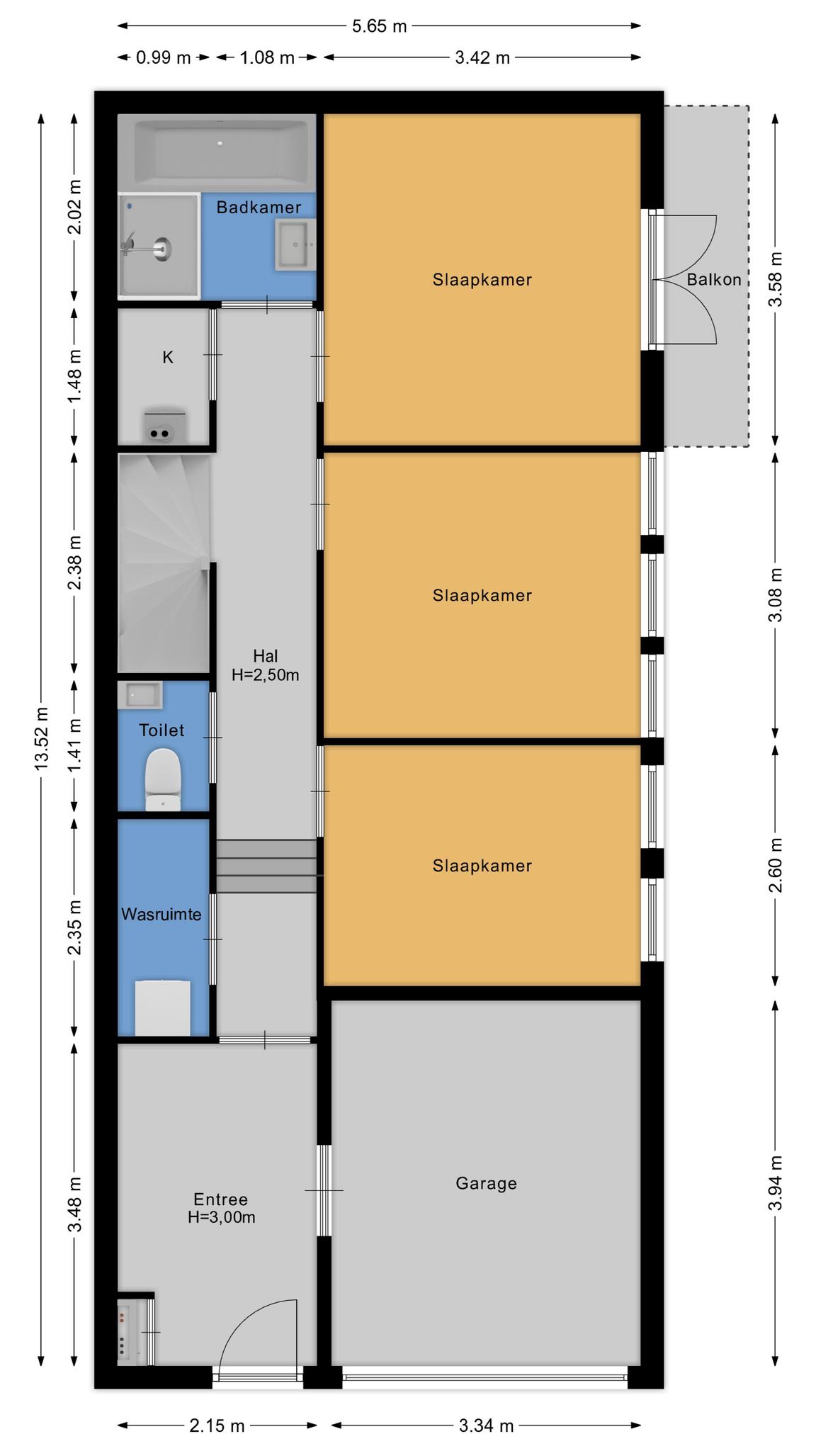 Toilet, tochtportaal, hal, stookruimte, berging, balkon, wasruimte