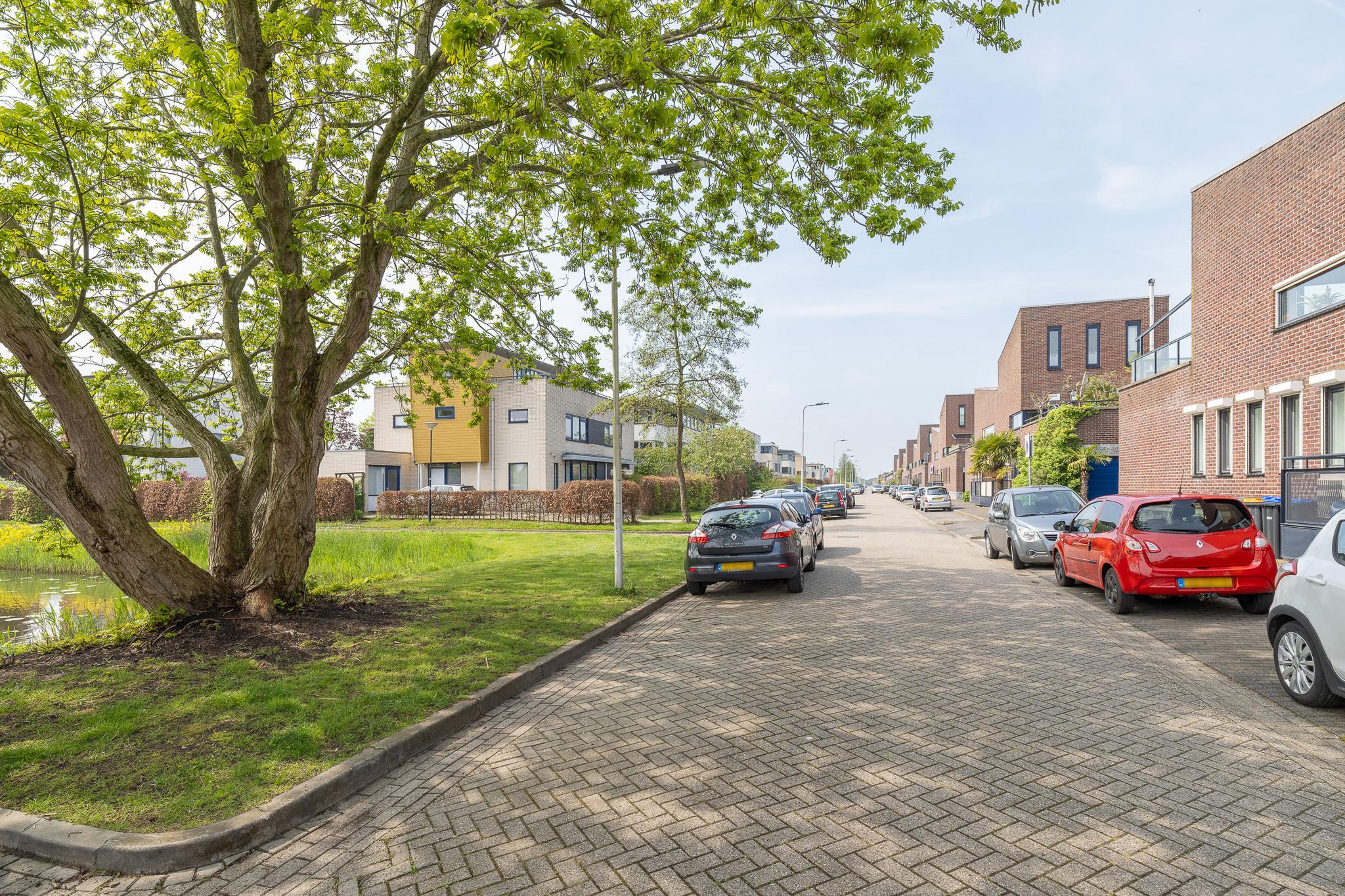 Aan rustige weg, in woonwijk, vrij uitzicht