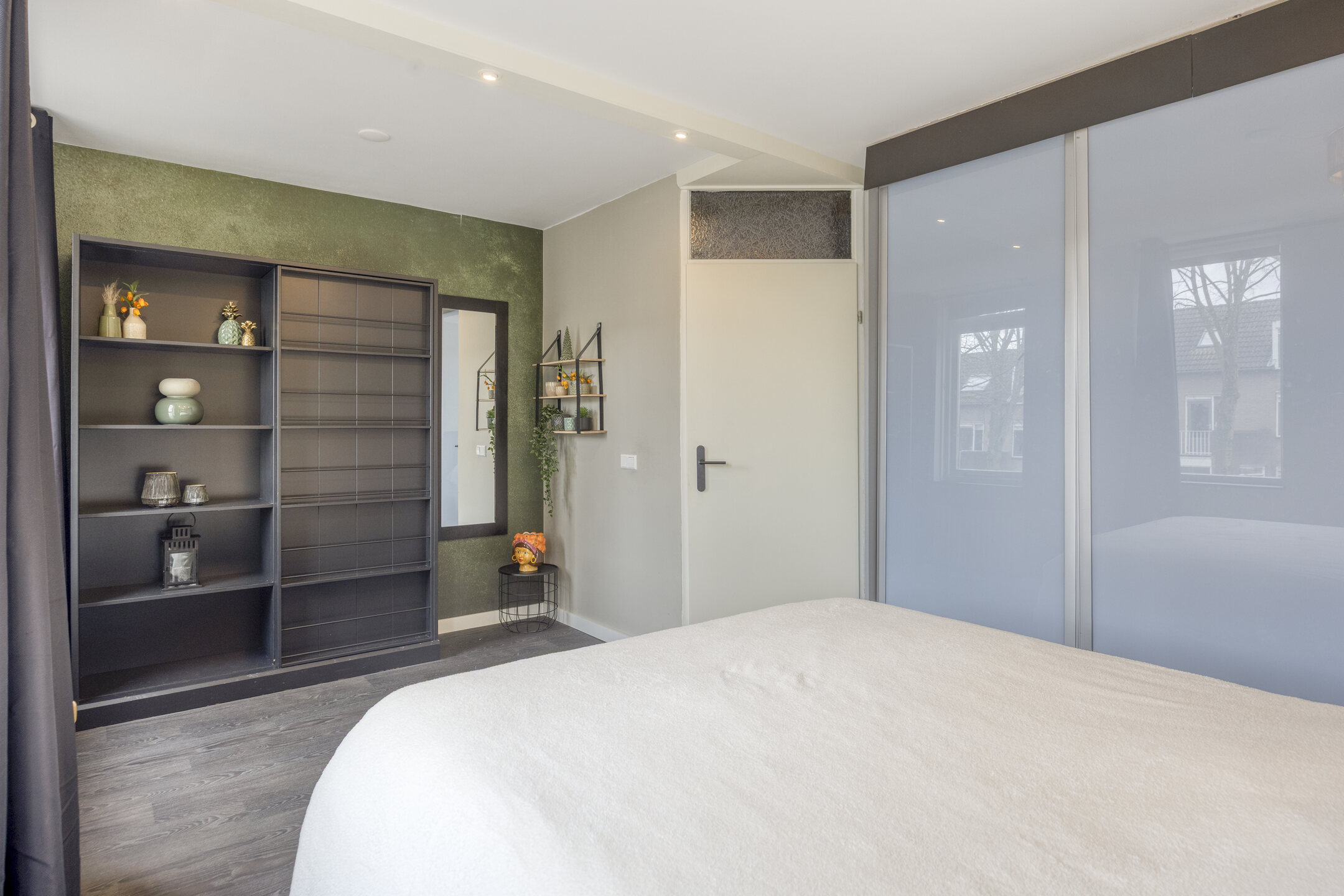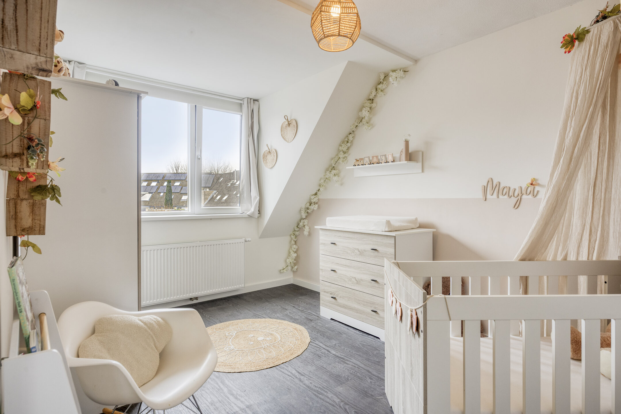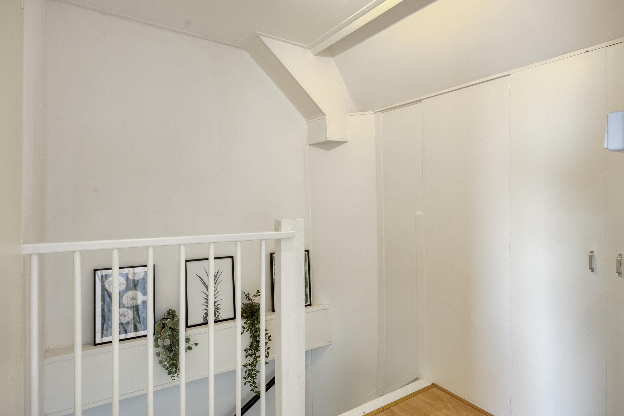 De derde slaapkamer is ruim en licht dankzij een groot Velux dakraam en openslaande deuren aan de voorzijde met Frans balkon. Extra bergruimte vind je onder de schuine kap én op de bergvliering, bereikbaar via een trap.