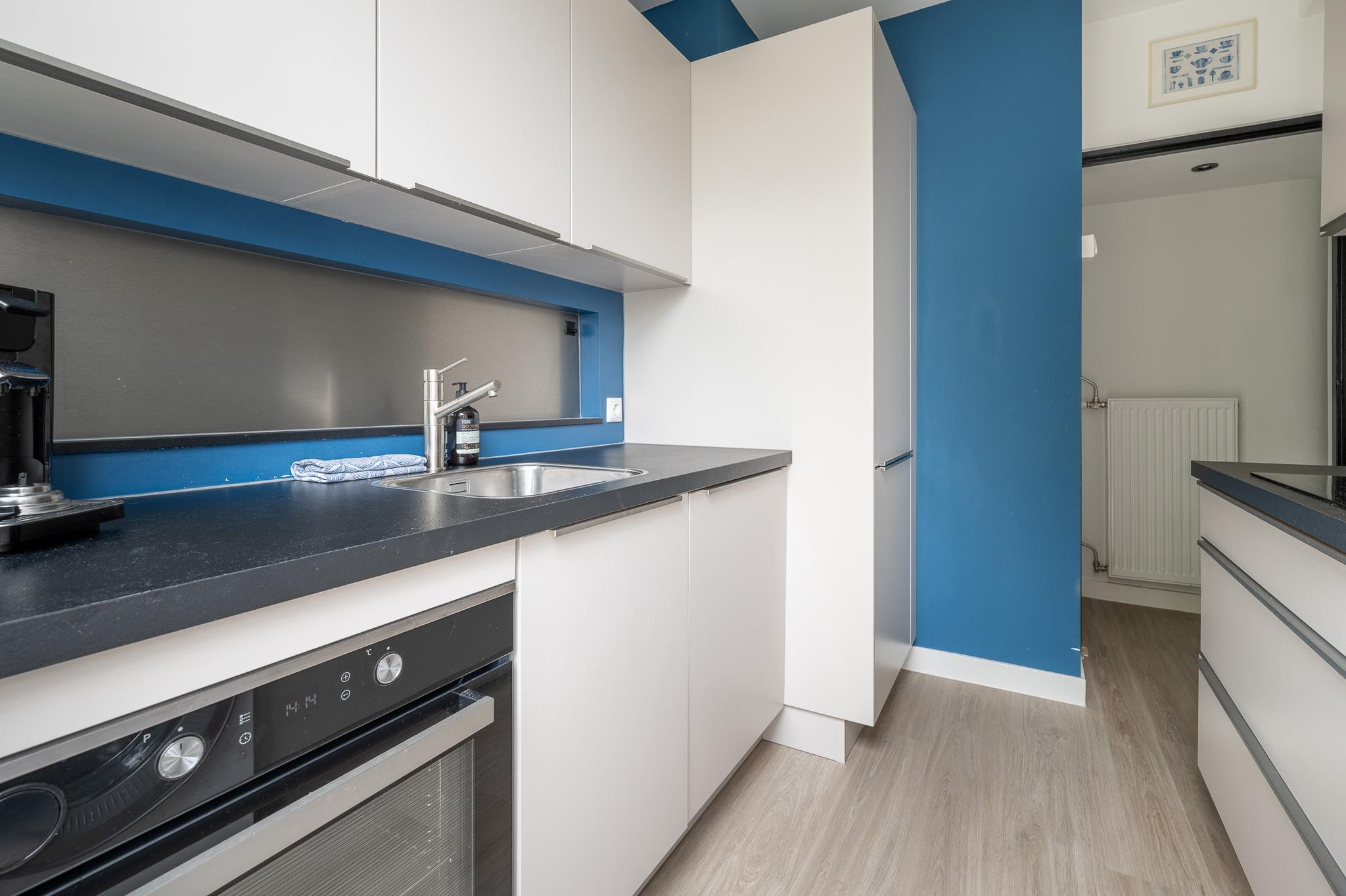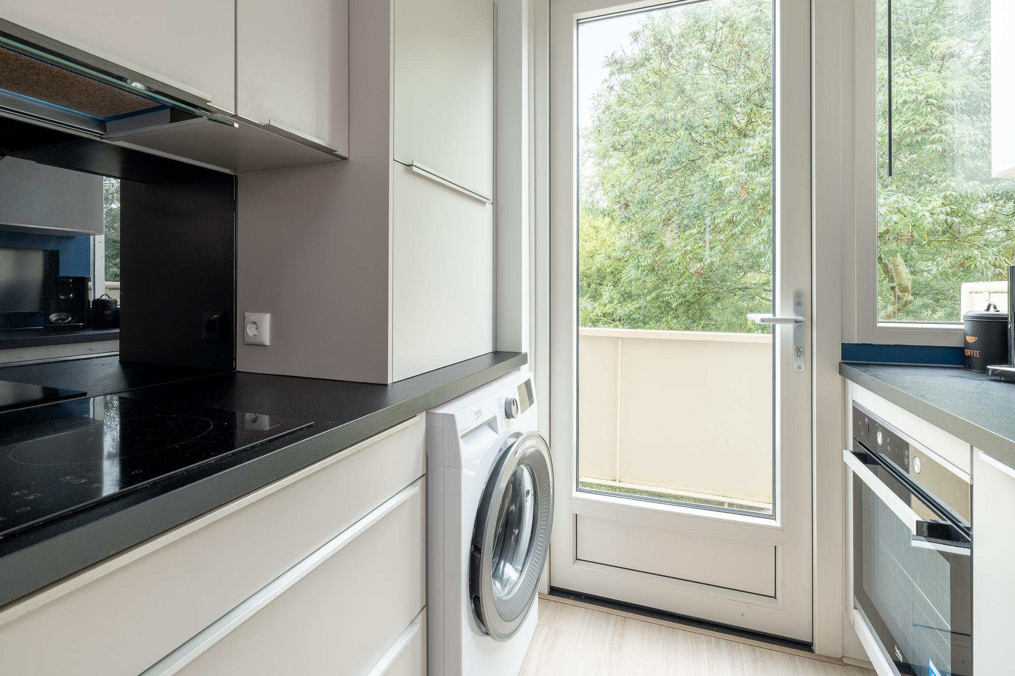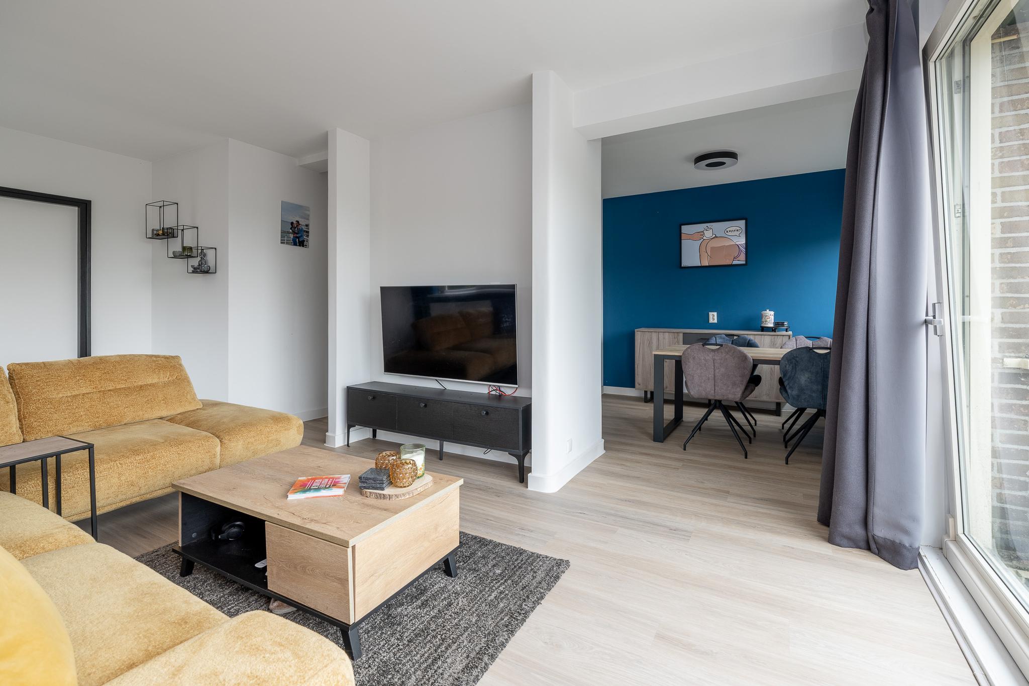 Zodra je het appartement binnenstapt, valt direct de fijne, lichte sfeer op. De woonkamer met naastgelegen eetkamer is royaal en dankzij de hoekligging geniet je hier van extra daglicht via het zijraam. De schuifpui brengt je naar het zonnige bal