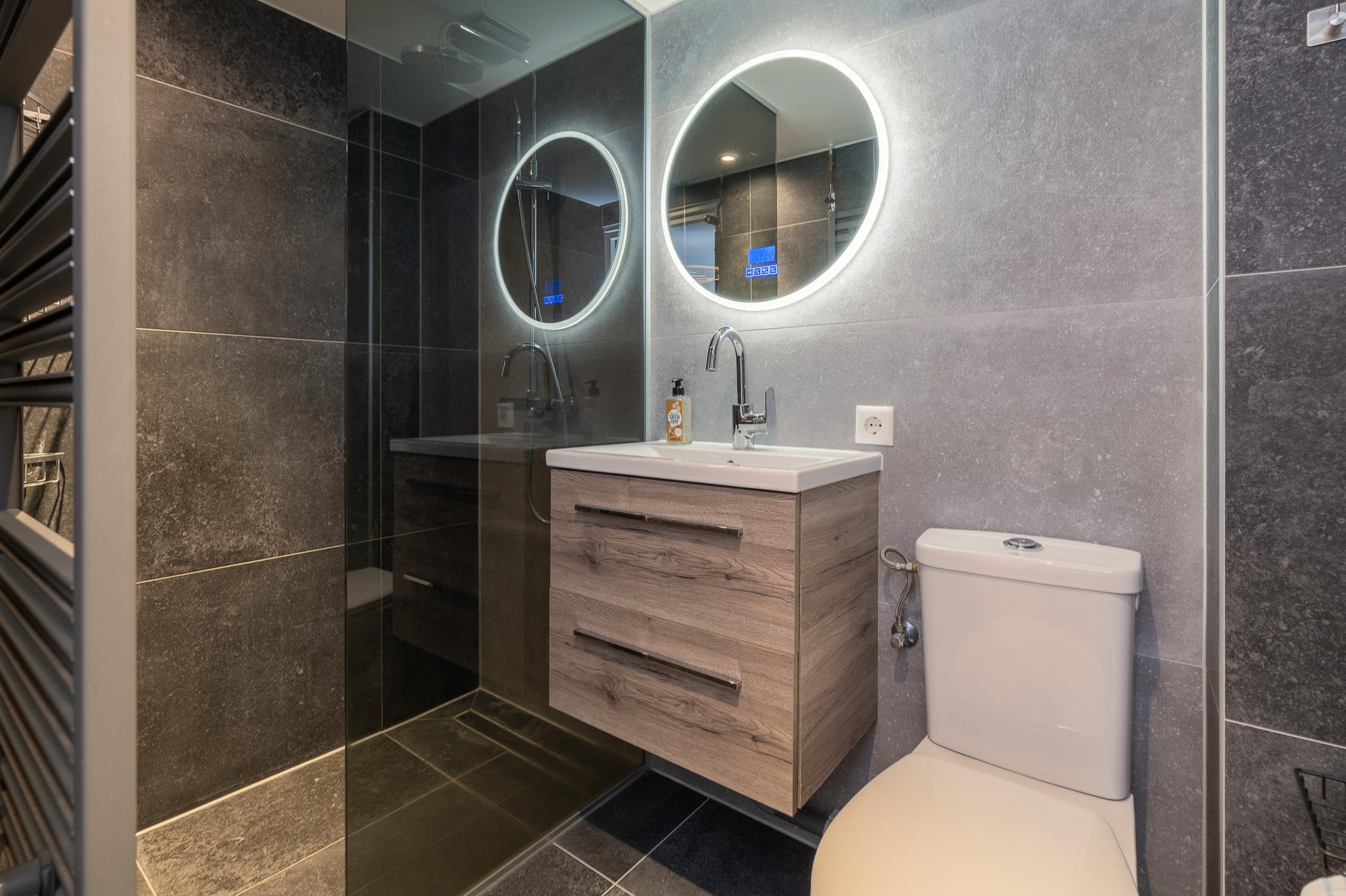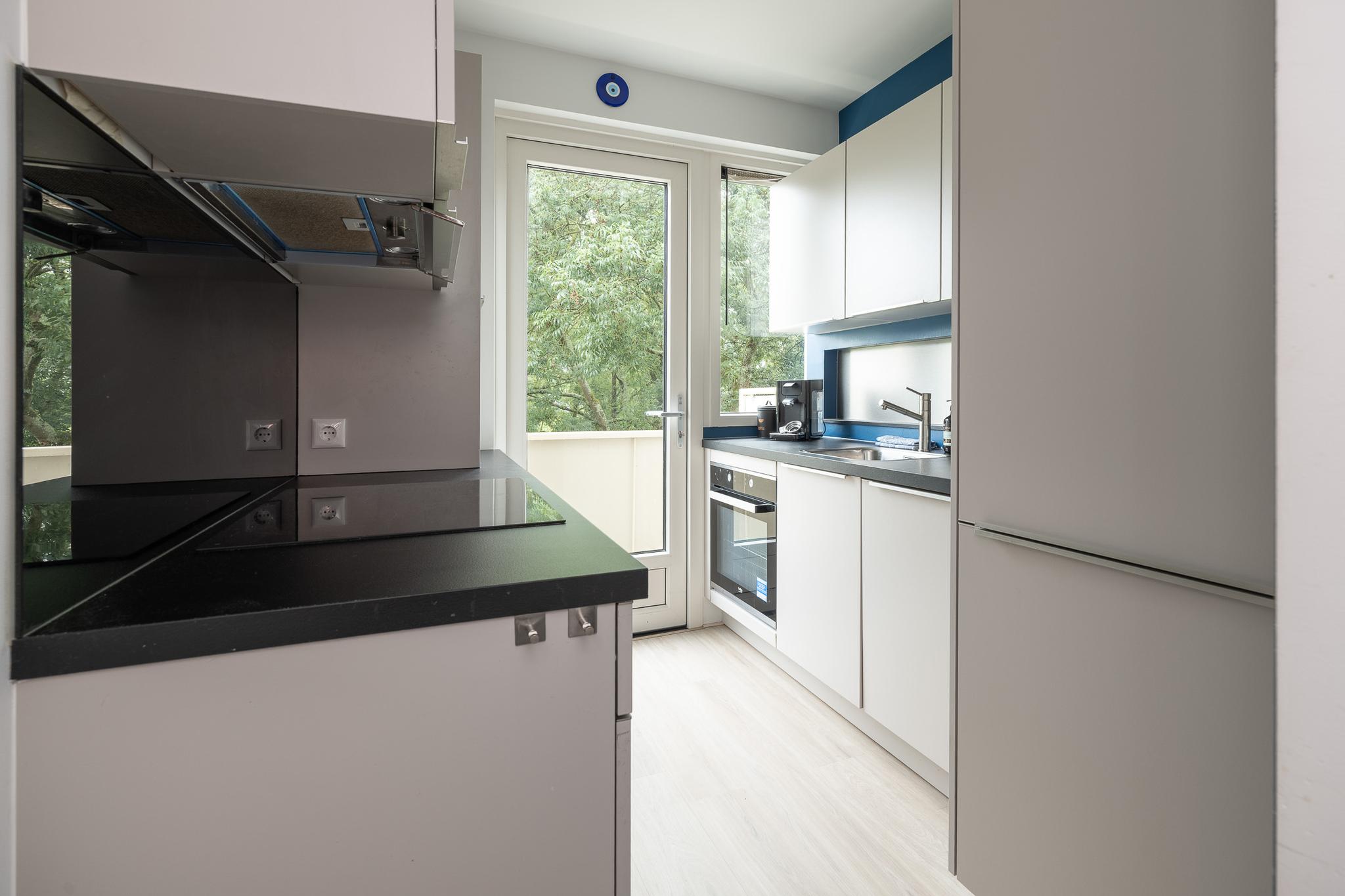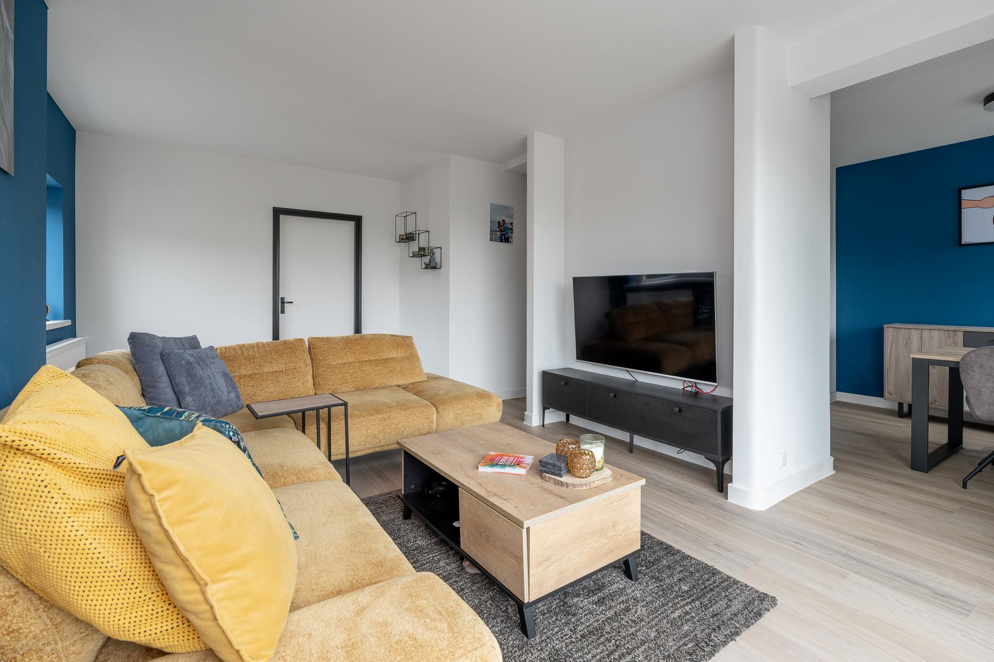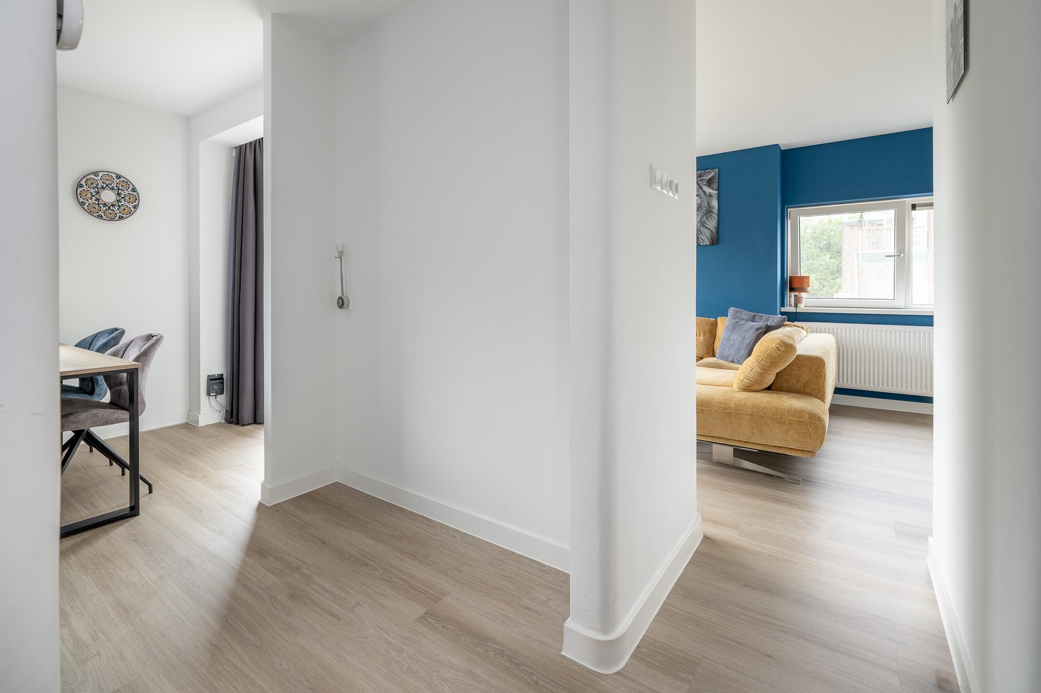 Zodra je het appartement binnenstapt, valt direct de fijne, lichte sfeer op. De woonkamer met naastgelegen eetkamer is royaal en dankzij de hoekligging geniet je hier van extra daglicht via het zijraam. De schuifpui brengt je naar het zonnige bal