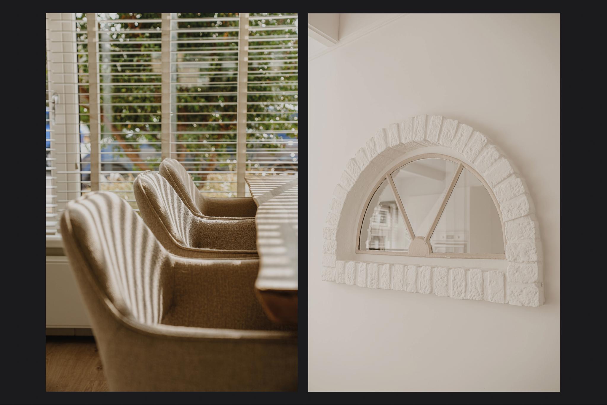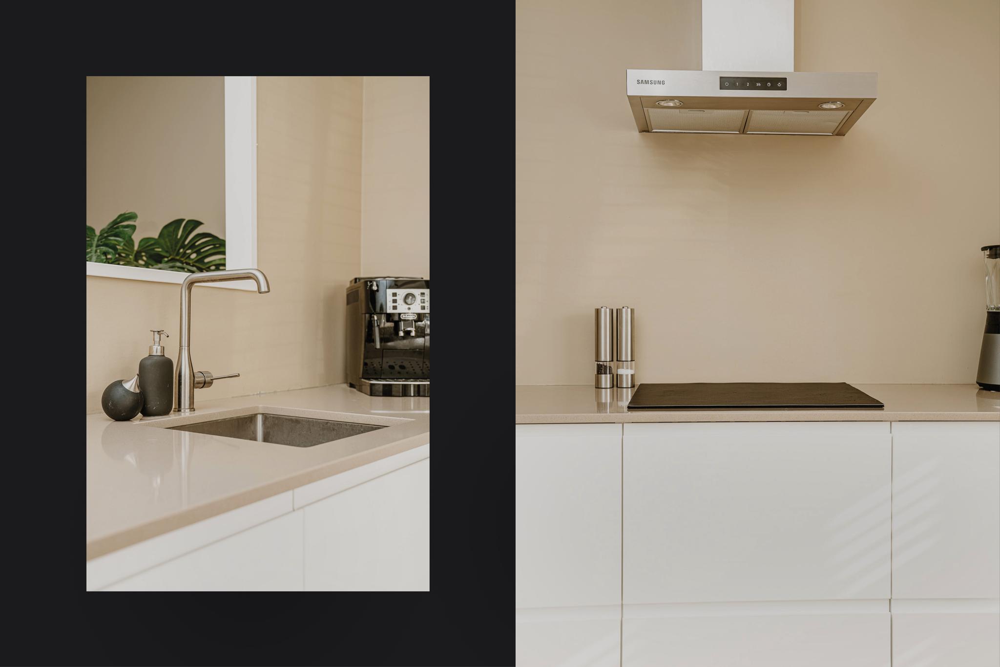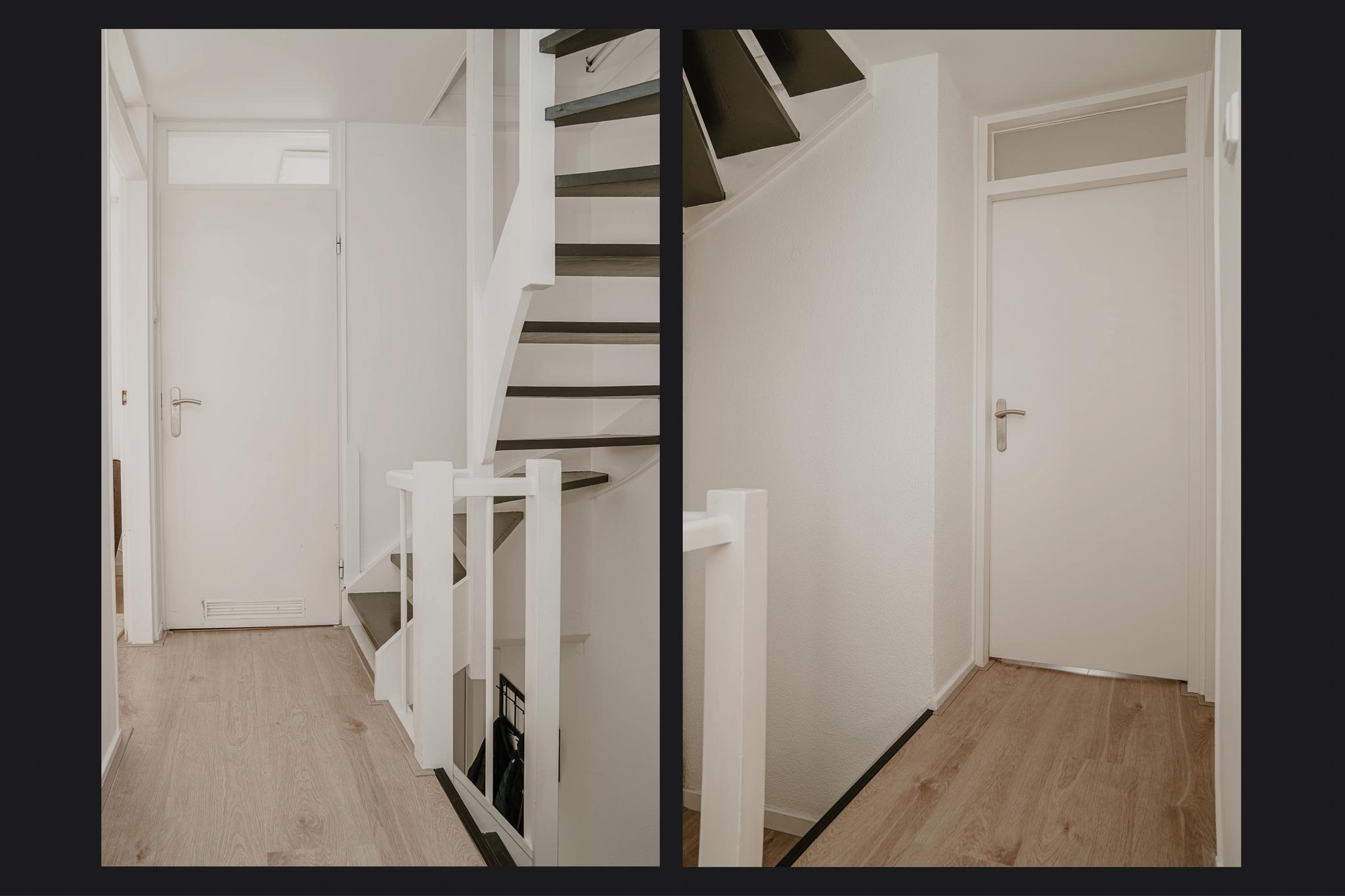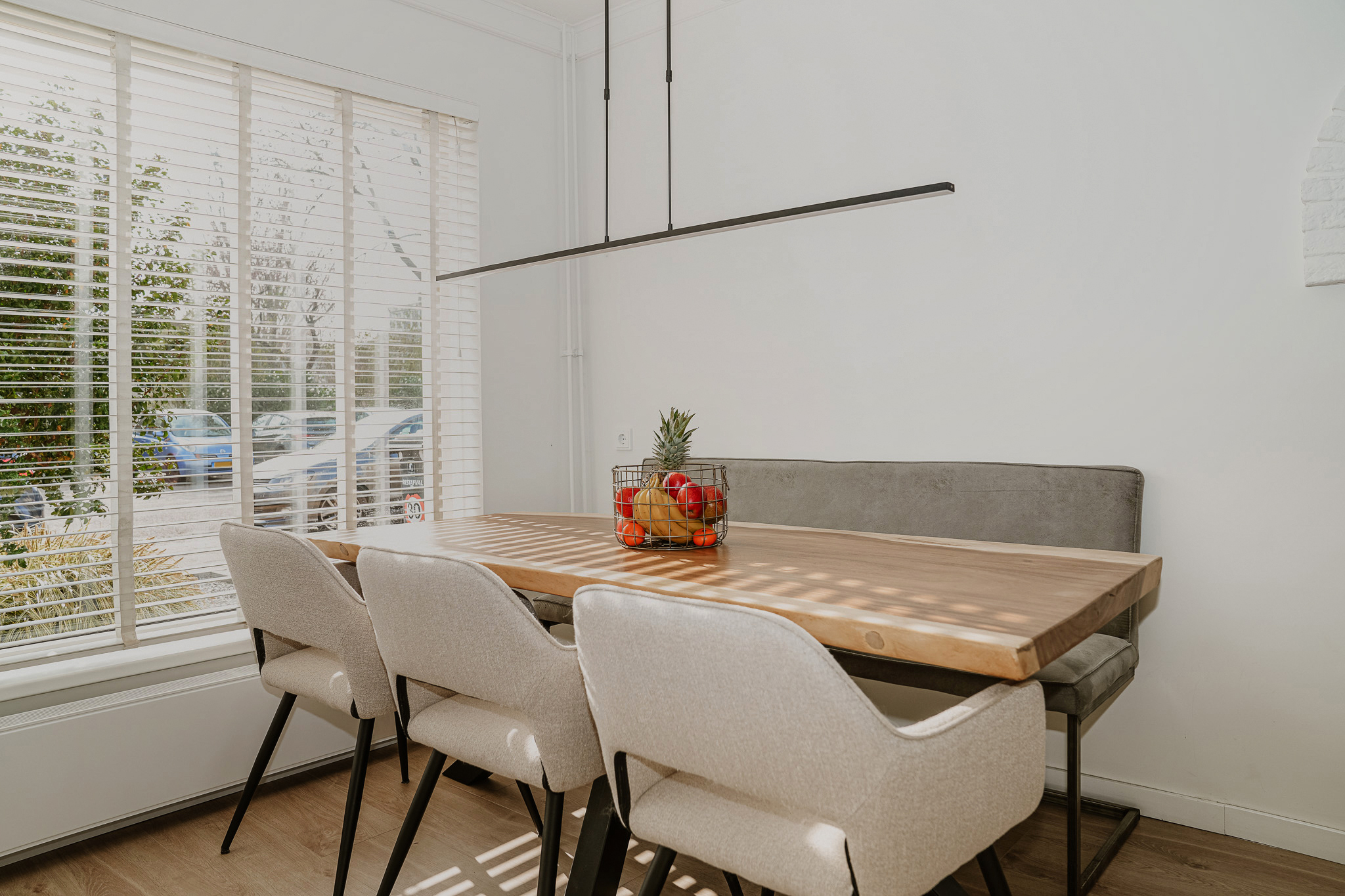 Entree met meterkast, vernieuwd toilet met fontein, trapopgang met trapkast en toegang tot de woonkamer met half-open keuken. De woonkamer is een heerlijke, lichte ruimte dankzij de grote ramen en de openslaande deuren naar de tuin. Hier geniet je het hele jaar door van comfort, mede dankzij de airconditioning (voor koelen en verwarmen). De strak gestuukte uitbouw met designradiatoren zorgt voor extra leefruimte en een luxe uitstraling. De keuken aan de voorzijde (2023) is een absolute blikvanger! Een moderne hoogglans witte keuken met een stijlvol composiet werkblad, topklasse inbouwapparatuur zoals een koel-vriescombinatie, combimagnetron, heteluchtoven, 4-pits inductiekookplaat met 6 flexzones en een rvs-afzuigkap. En er is hier voldoende ruimte voor een grote eettafel, een heerlijke plek voor vrienden en familie om gezellig te komen eten!