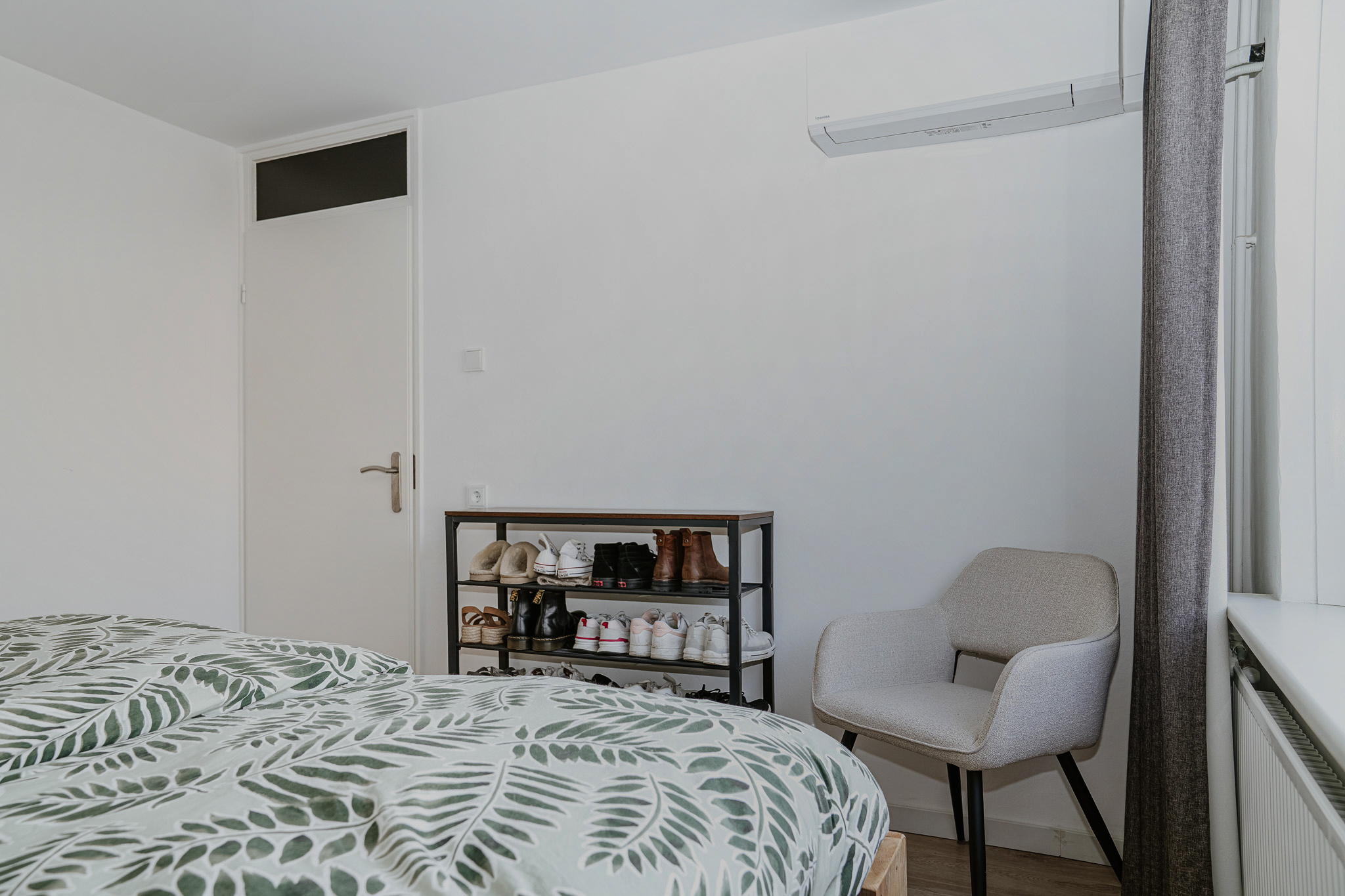 Op de voorzolder bevindt zich een dakkapel, veel bergruimte en de aansluitingen voor de wasmachine en droger. Hier zijn ook de duurzame installaties te vinden: een nieuwe Intergas HRE CV-ketel (2023), een Nibe warmtepompboiler voor tapwater (2023) en de omvormer voor de 10 zonnepanelen (2023) De vierde slaapkamer van circa 9 m² is een fijne, lichte ruimte met dakkapel.