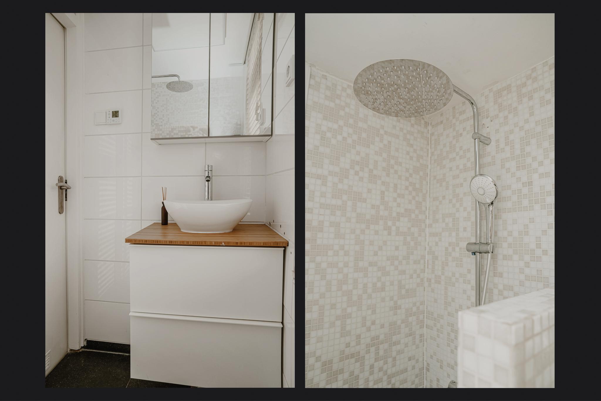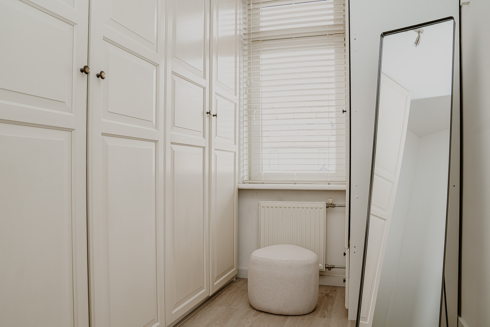 De hele verdieping is voorzien van een gloednieuwe laminaatvloer in dezelfde warme stijl als beneden. Hier vind je drie fijne slaapkamers: de hoofdslaapkamer (met airconditioning voor zowel verwarmen als koelen), een ruime kastenkamer (met voorbereide afvoer voor een eventueel tweede toilet) en een derde slaapkamer aan de voorzijde. De badkamer is compact maar praktisch en stijlvol: een inloopdouche, een moderne wastafel met meubel, een spiegelkast en een groot draaikiepraam met hor. Extra comfort? Het infrarood paneel aan het plafond zorgt voor heerlijke warmte!