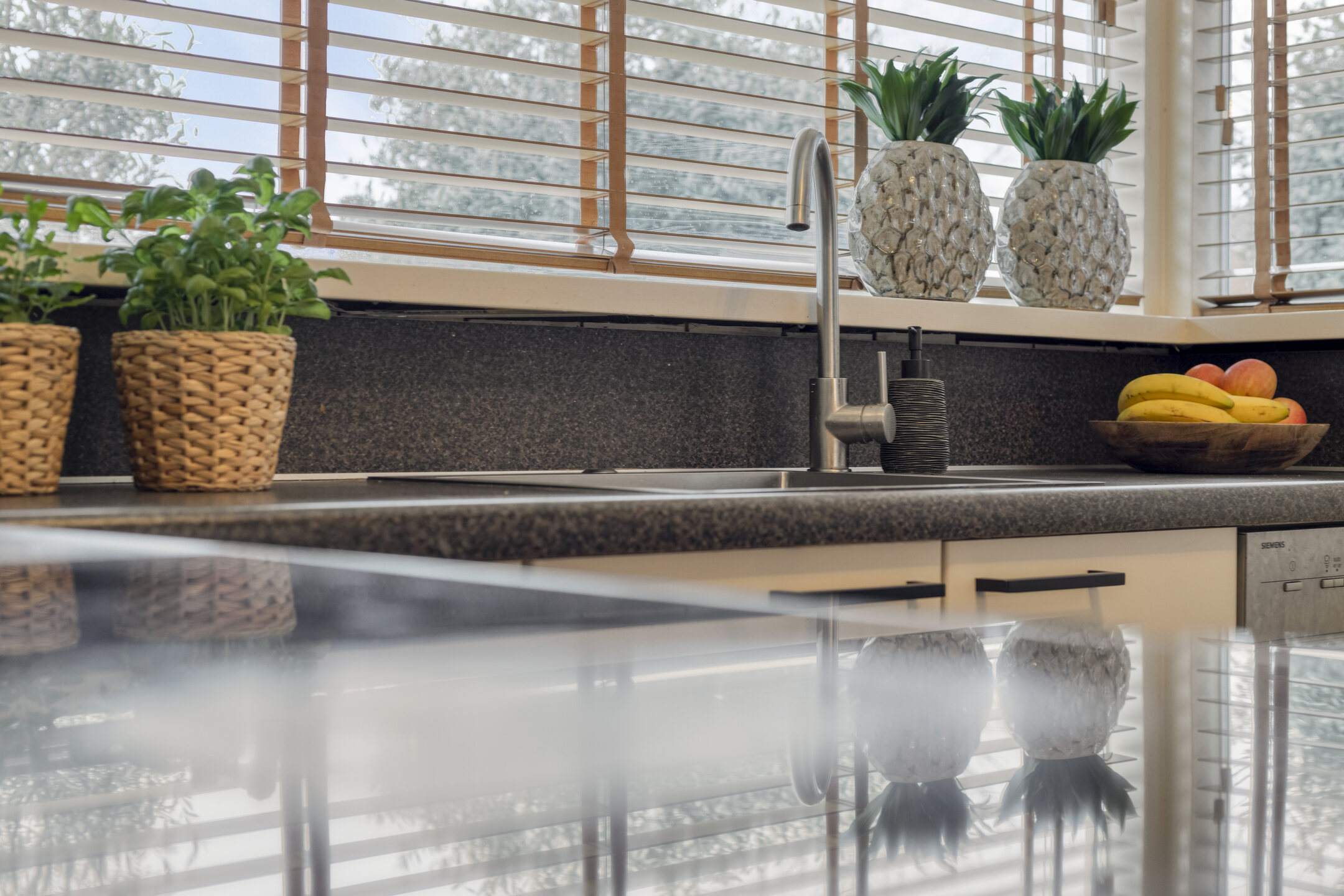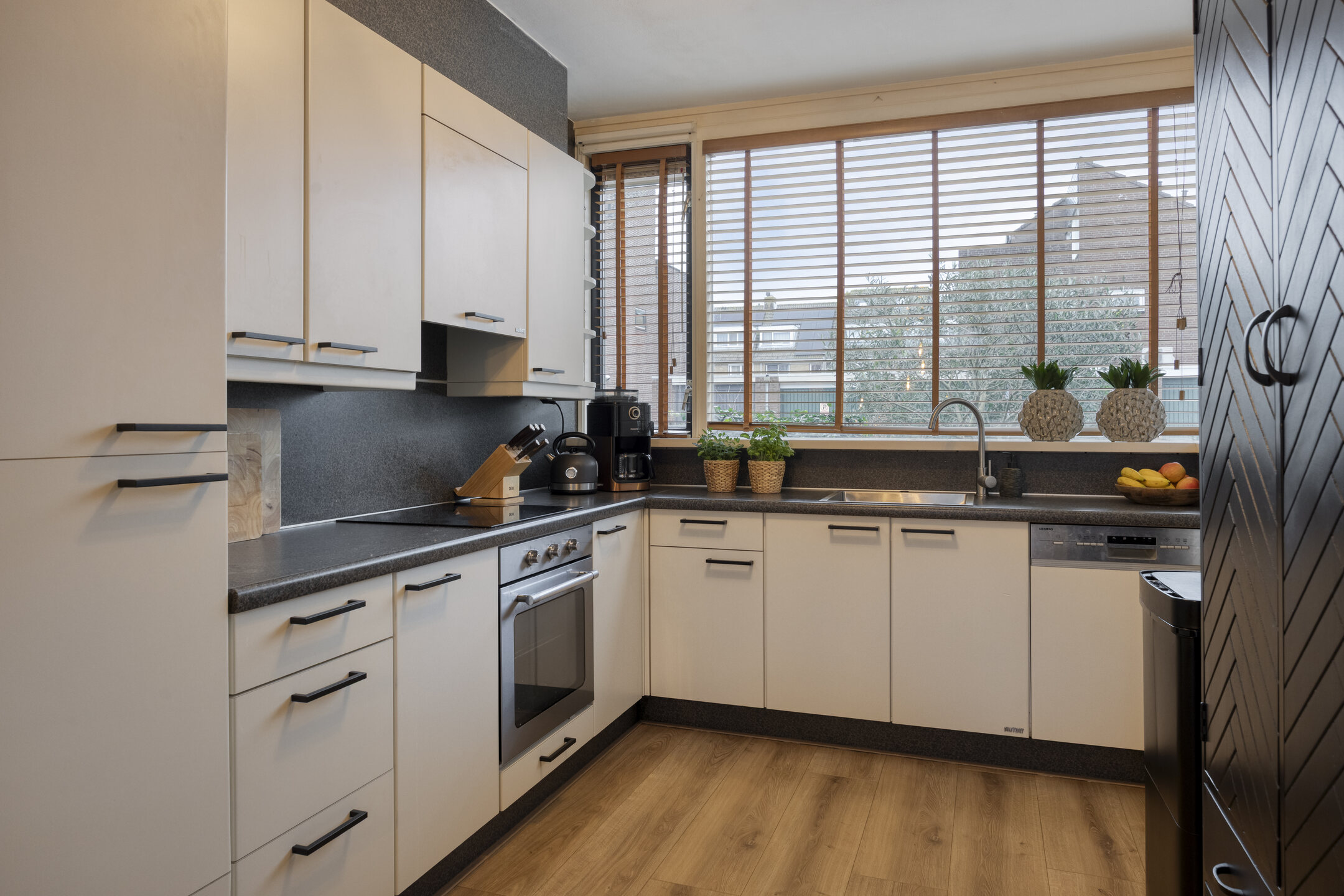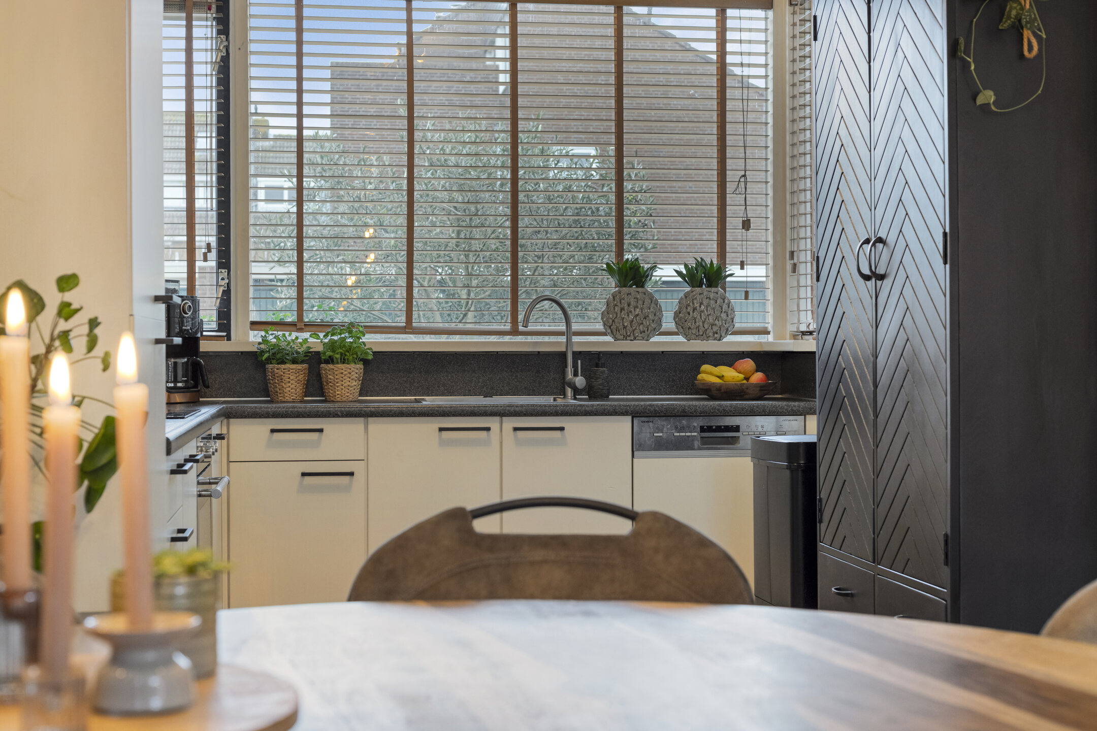 Aan de voorzijde van de woning bevindt zich de open keuken. Deze is praktisch ingericht en voorzien van diverse apparatuur zoals een close-in boiler, vaatwasser, koel/vriescombinatie, 4 pits Inductie kookplaat en een geïntegreerde afzuigkap.
