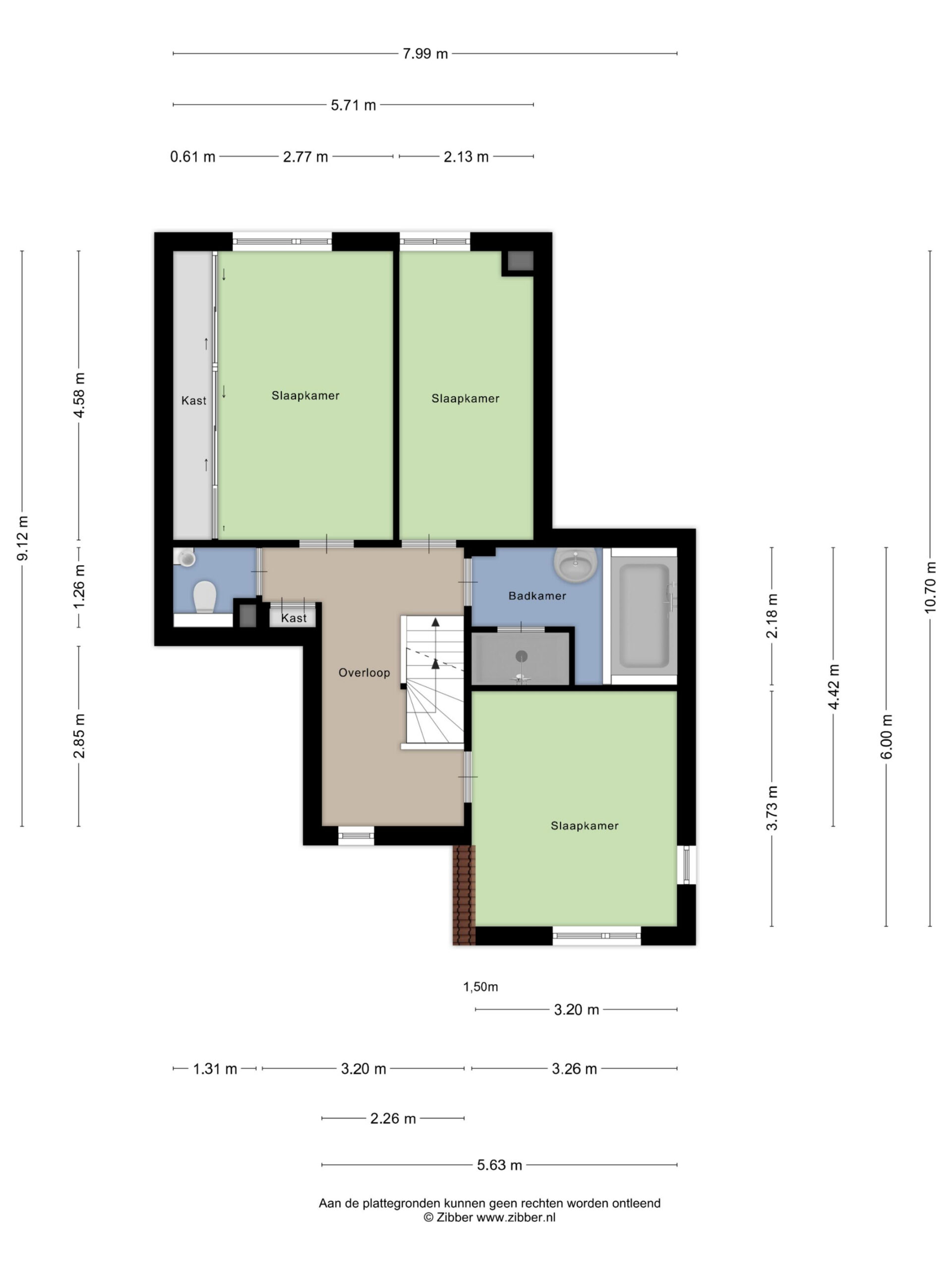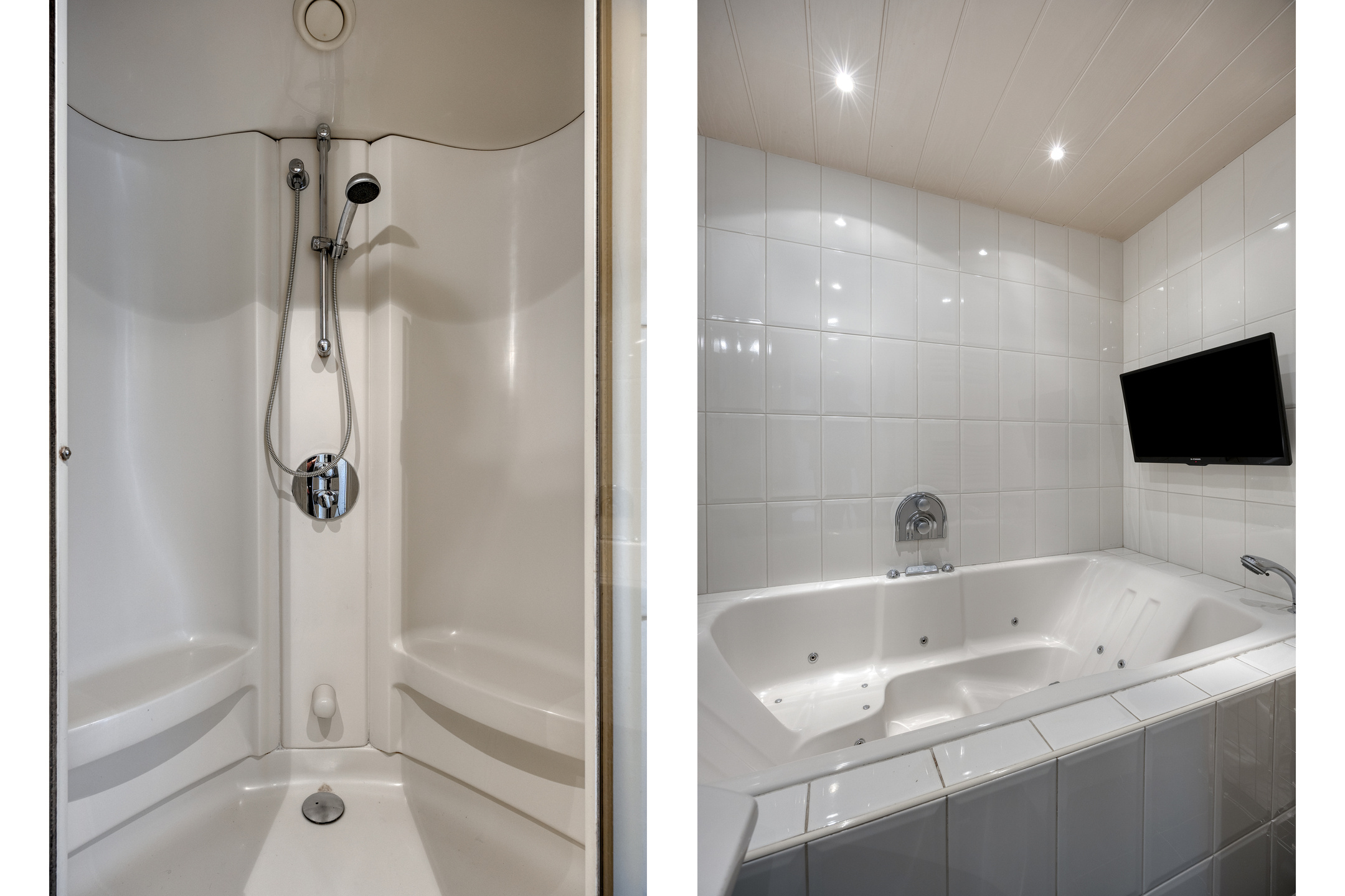 Hier bevinden zich drie ruime slaapkamers (ca 15.5 m2, 12.1 m2 en 9.5 m2), waarvan één met vaste kasten. De badkamer beschikt over een 2-persoonsjacuzzi, tv-aansluiting en een 2-persoons stoomcabine/douche. Verder is er een separaat toilet met fontein en een bergkast op de overloop.