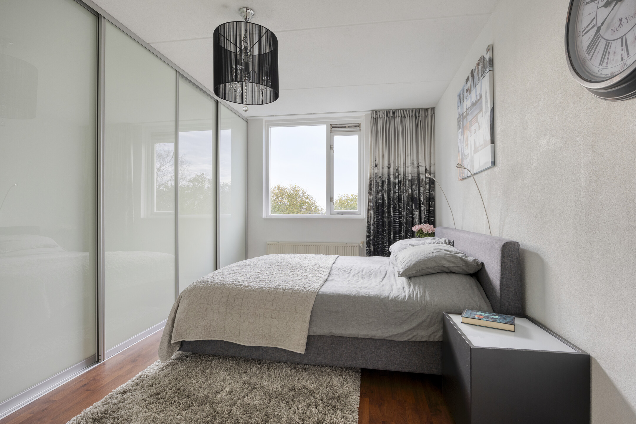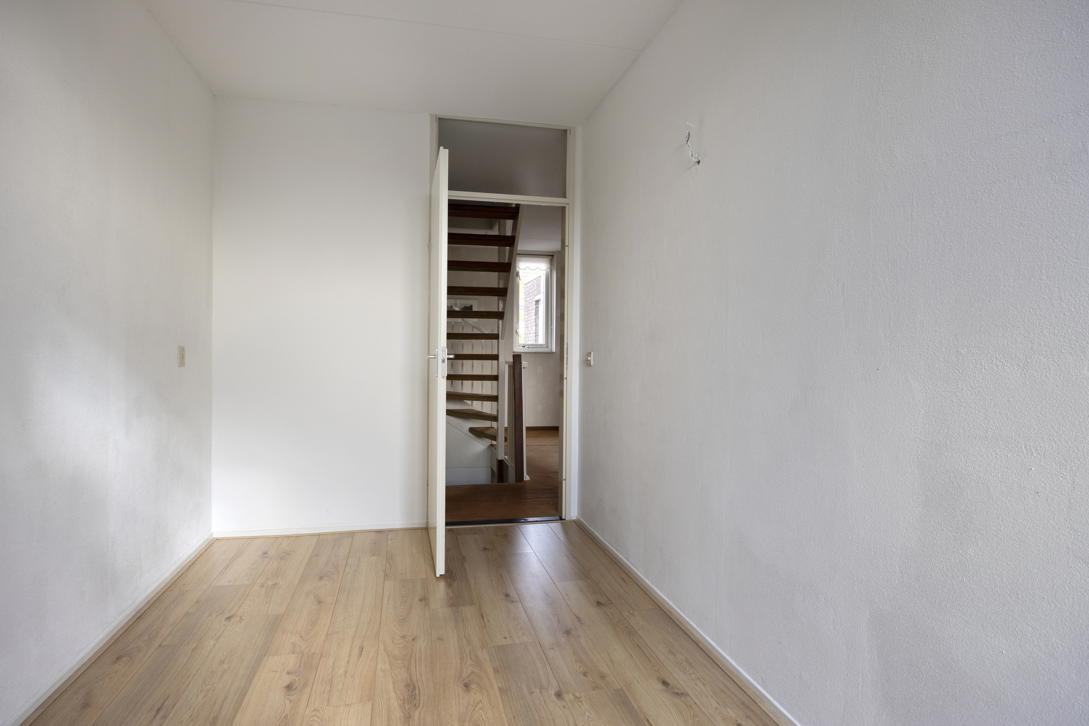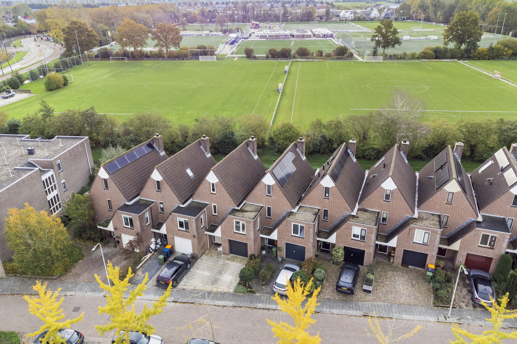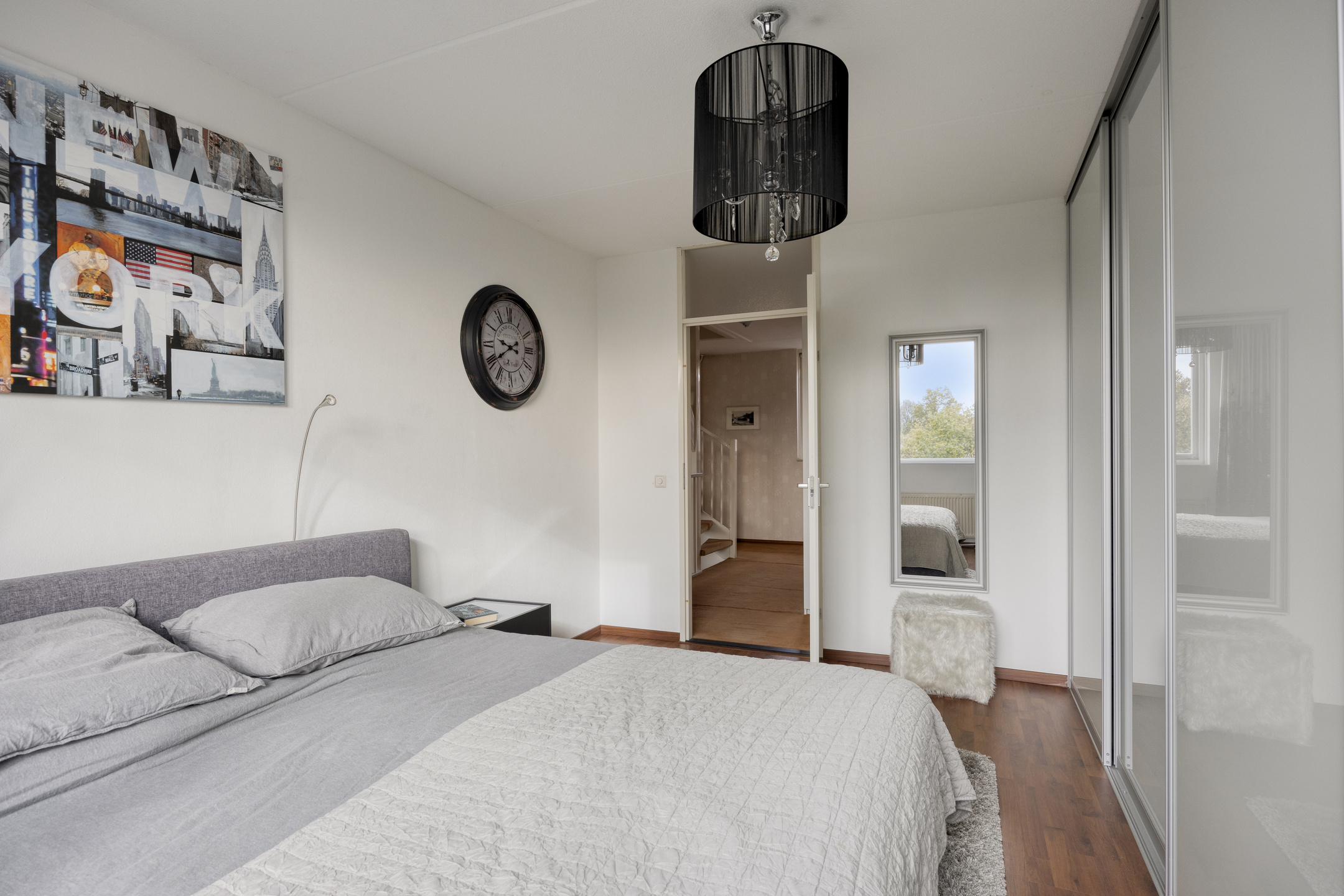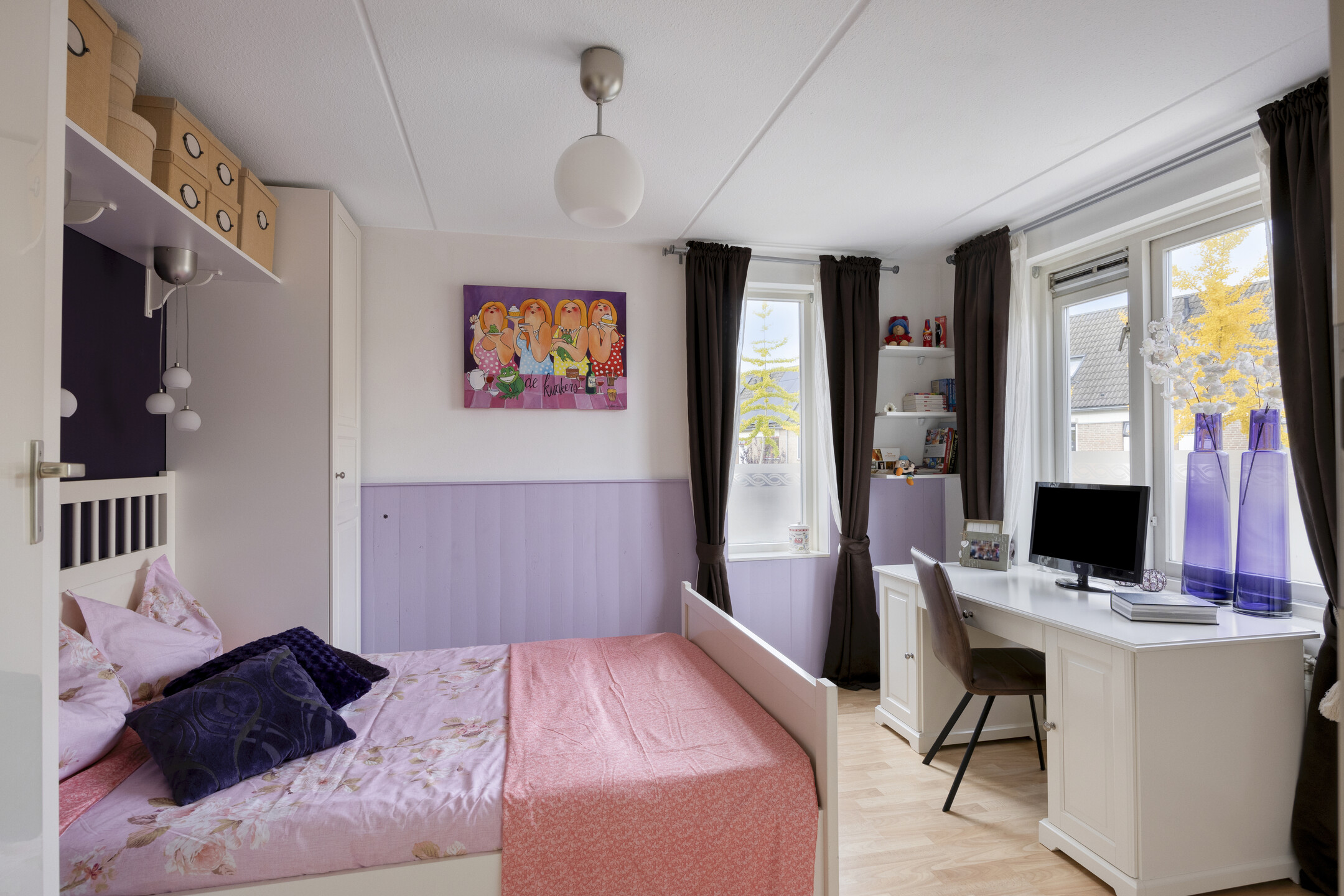 Ruime voorzolder waar eenvoudig een vijfde slaapkamer kan worden gecreëerd. Hier bevindt zich ook de berging/stookruimte (cv-installatie Atag, 2021) en met bergruimte achter de knieschotten. Aangrenzend bevindt zich de vierde slaapkamer (ca. 16 m2) met een fraai uitzicht op de sportvelden. Deze sfeervolle kamer, gelegen onder de schuine kap, is voorzien van airconditioning.