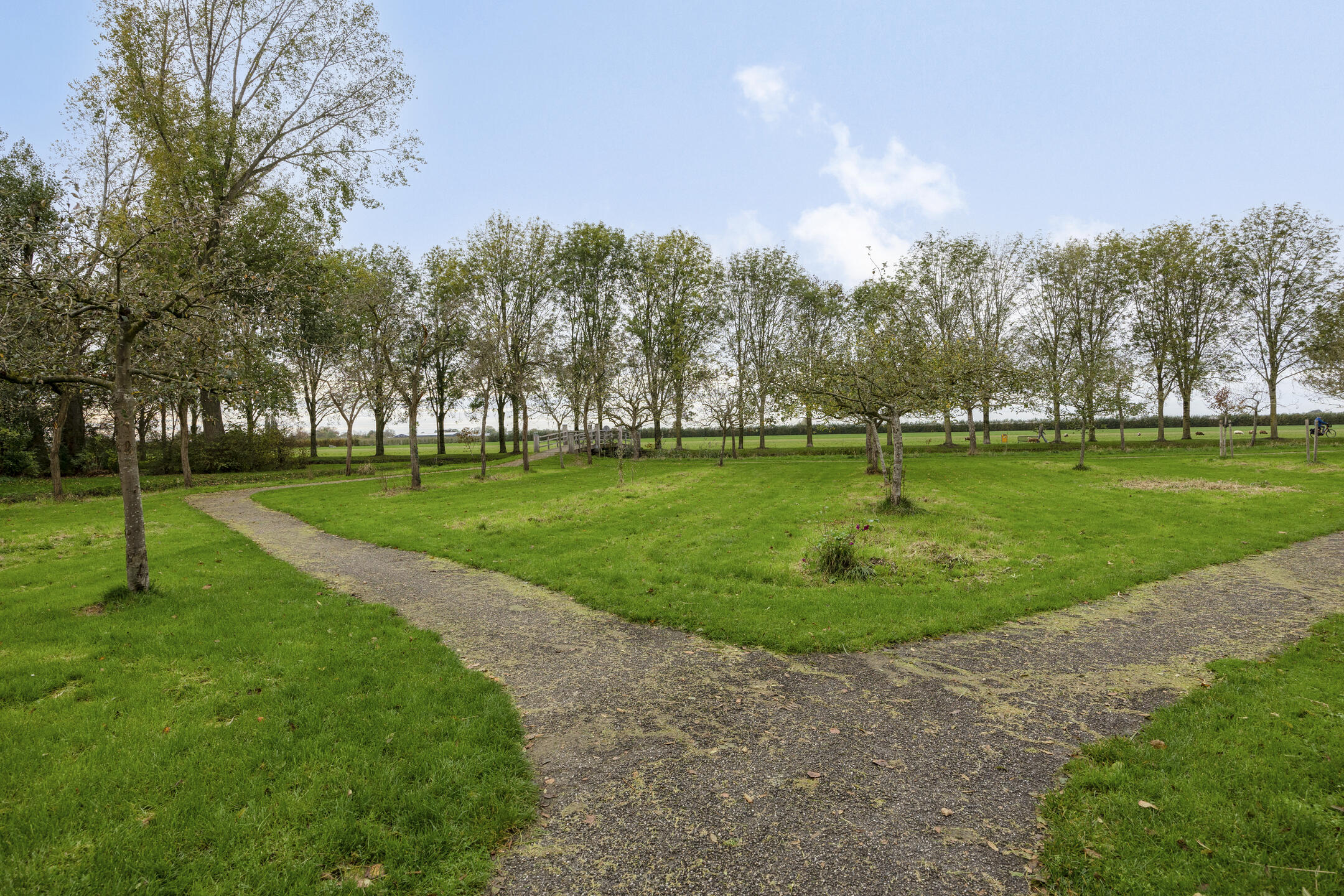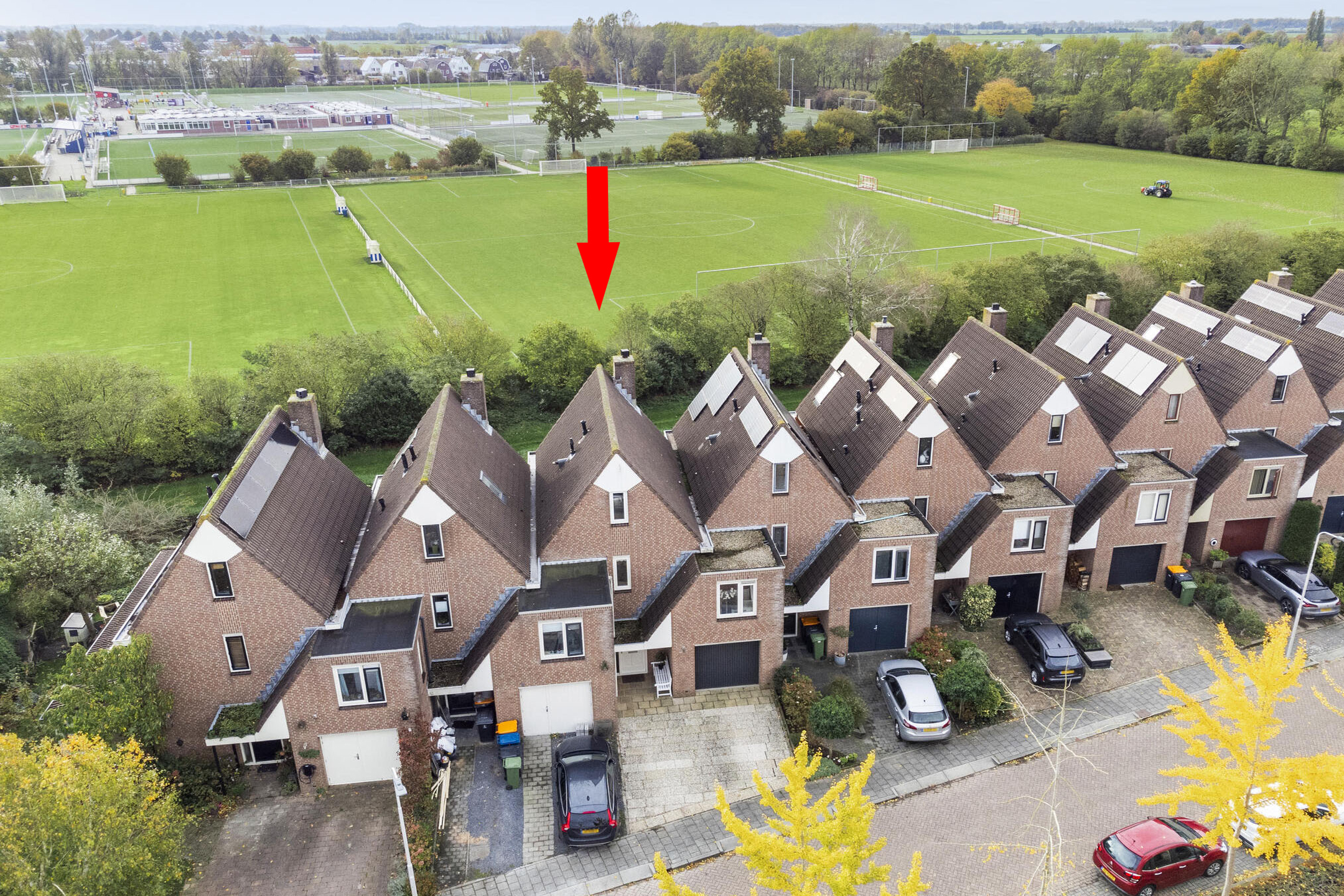 Vrij uitzicht op groen en daarachter de sportvelden;