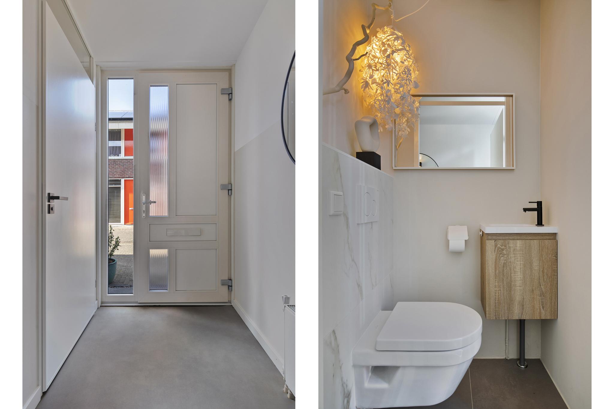 Bij binnenkomst valt direct de hoogwaardige afwerking op. Vanuit de hal heb je toegang tot het moderne toilet met fontein (2021) en de woon/eetkamer met open keuken.