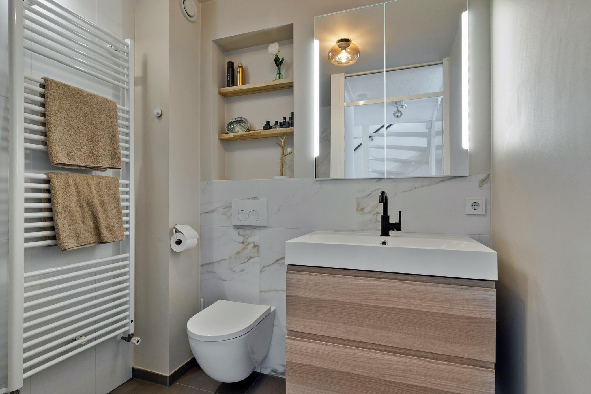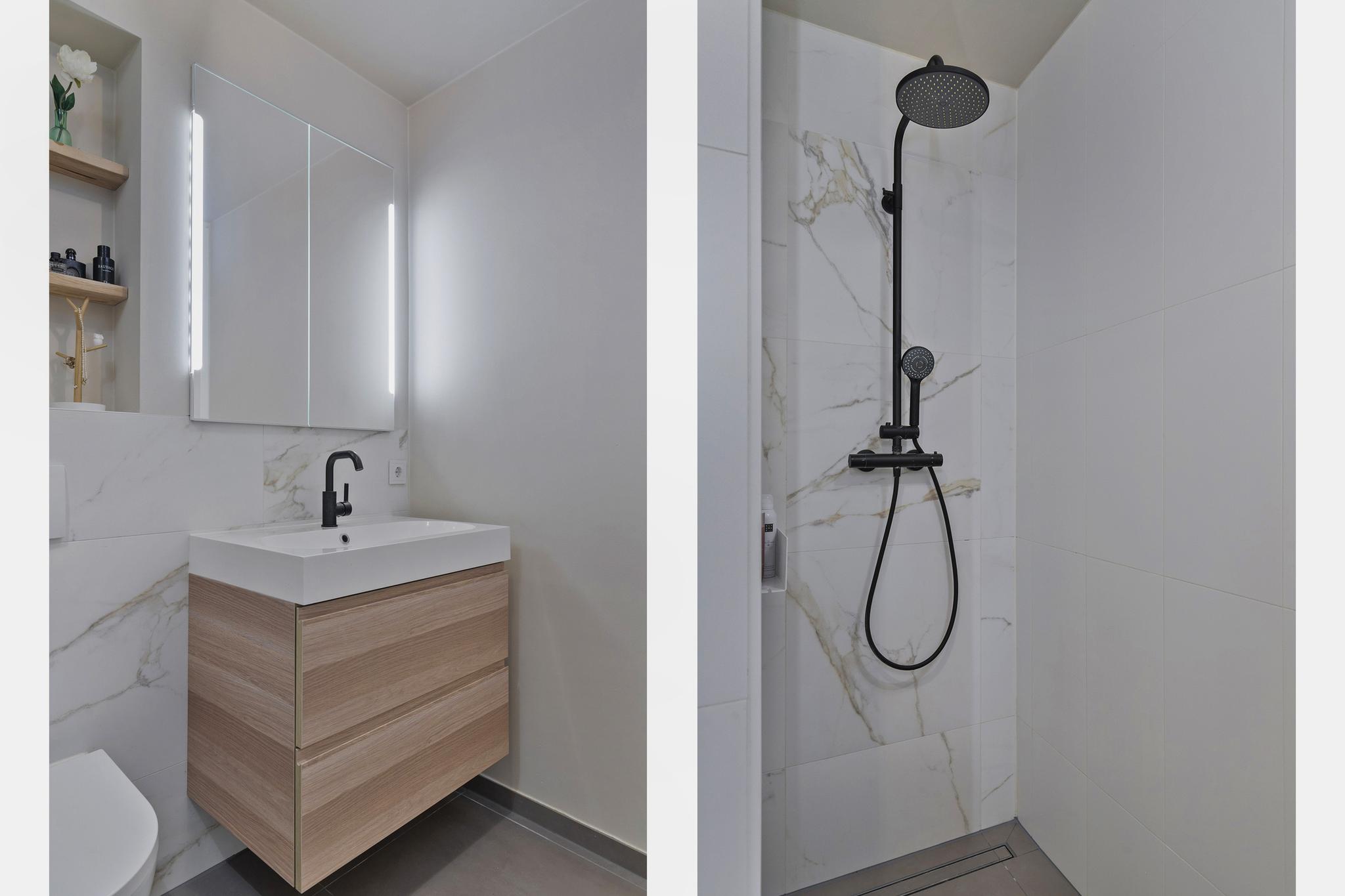 De badkamer is in 2021 volledig vernieuwd en straalt rust en luxe uit. Deze is voorzien van een inloopdouche met regendouchekop, spiegelkast, wastafel met bergmeubel en tweede toilet.