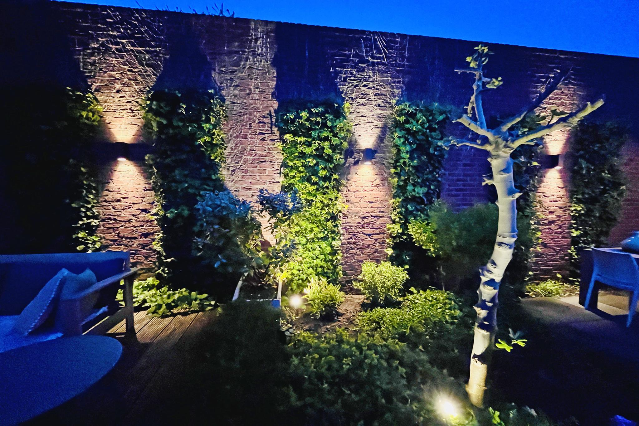 Het elektrisch zonnescherm zorgt voor de nodige schaduw. Verder is de tuin voorzien van diverse watertappunten en sfeervolle buitenverlichting. En heb je een hobby of werk je regelmatig thuis? De ruime berging van maar liefst 5 meter breed (voorzien van elektra en water) biedt volop mogelijkheden – van hobbyplek tot opbergruimte.