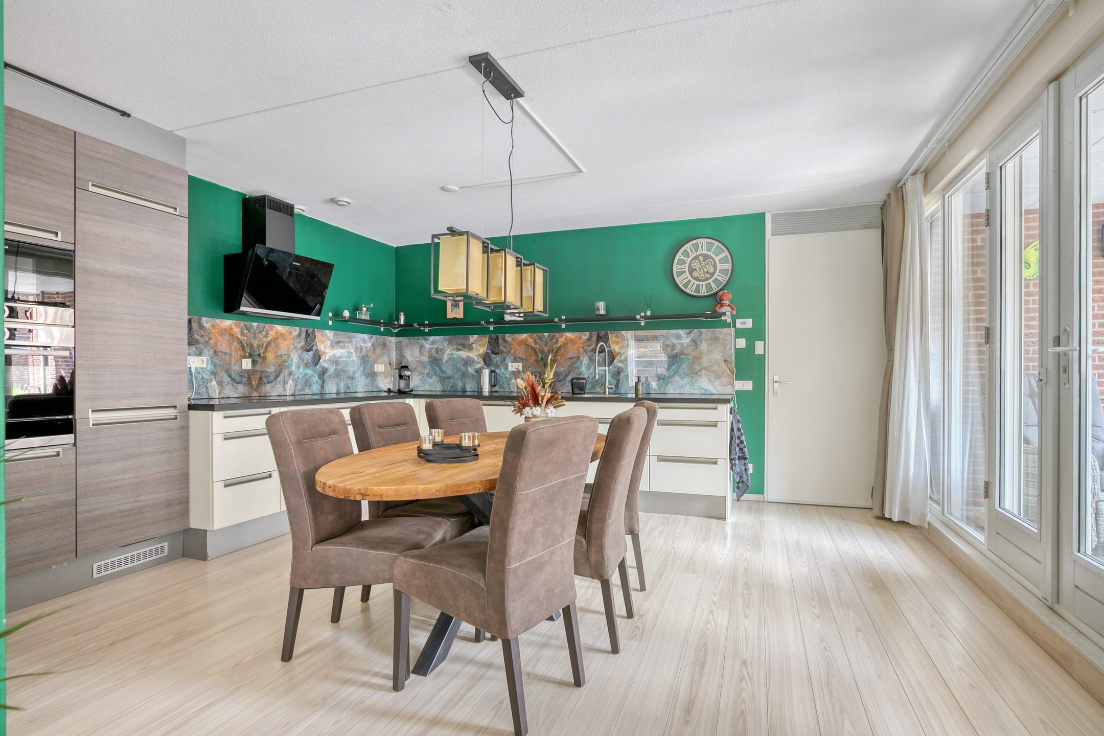 De keuken is ruim en voorzien van veel opbergruimte. De volgende inbouwapparatuur is aanwezig en grotendeels vernieuwd in 2023: Inductiekookplaat (4 zones), afzuigkap (vlakscherm), vaatwasser, koel-vriescombinatie, hetelucht-oven met warmhoudlade en magnetron.