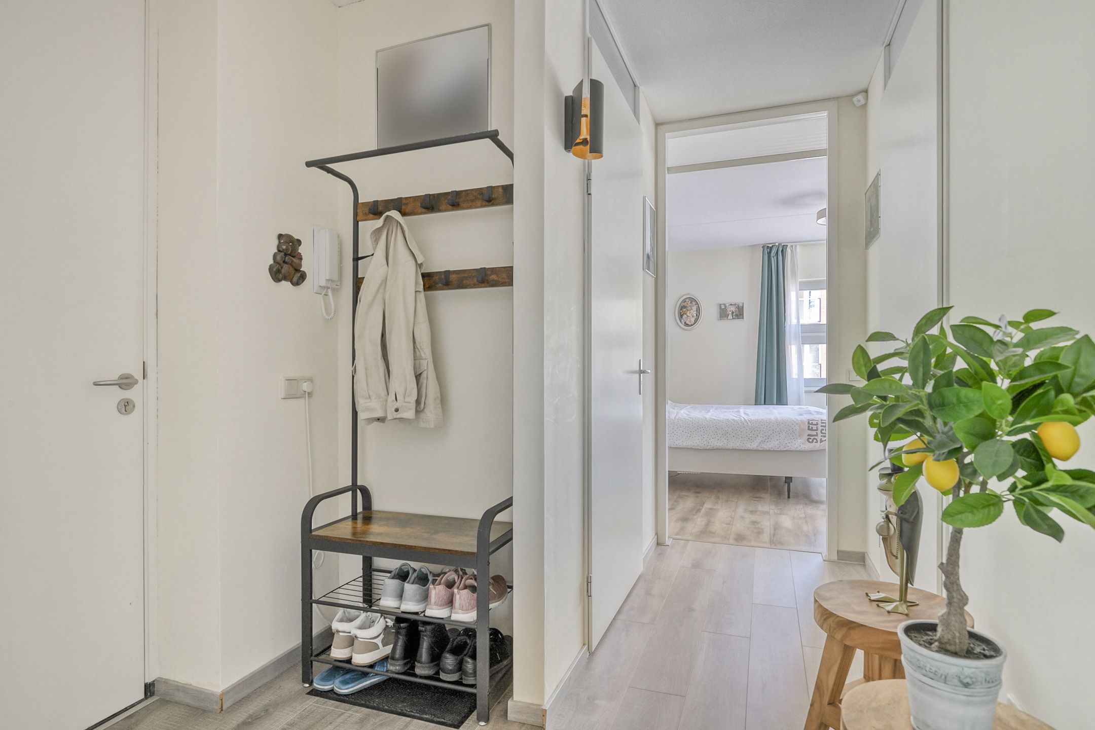 Via de centrale entree aan het Veluwemeer komt u in de gezamenlijke hal met een lift en trappenhuis. Vanuit hier zijn zowel het appartement als de berging en de parkeergarage bereikbaar. Het appartement ligt op een split-level van de entree.