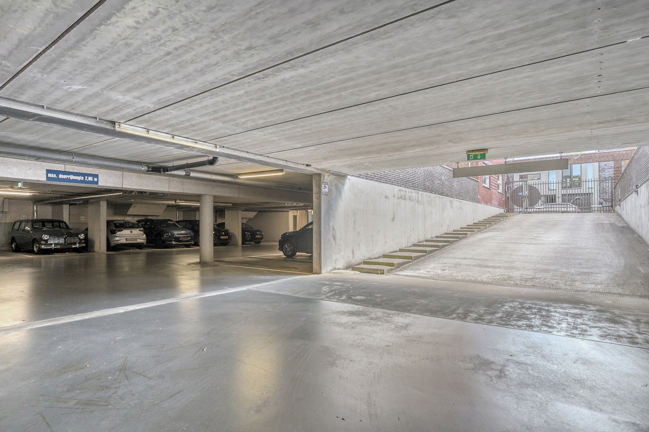 In de ondergelegen parkeergarage beschikt u over een extra brede privéparkeerplaats (ca. 26 m²) – ideaal als u ruim wilt parkeren of hulpmiddelen meeneemt. Uw eigen berging met elektra is handig voor het stallen van fietsen of het opbergen van spullen.