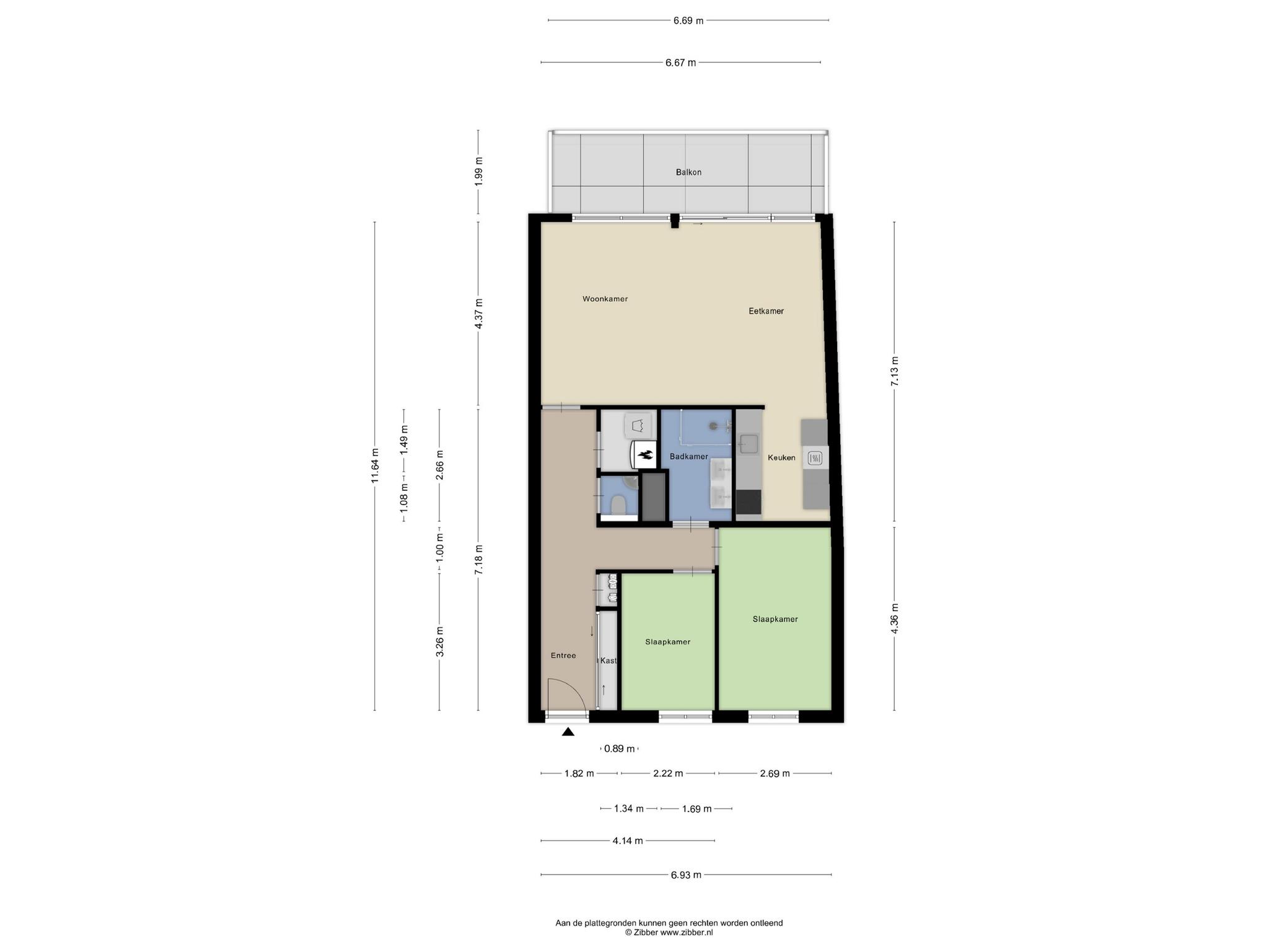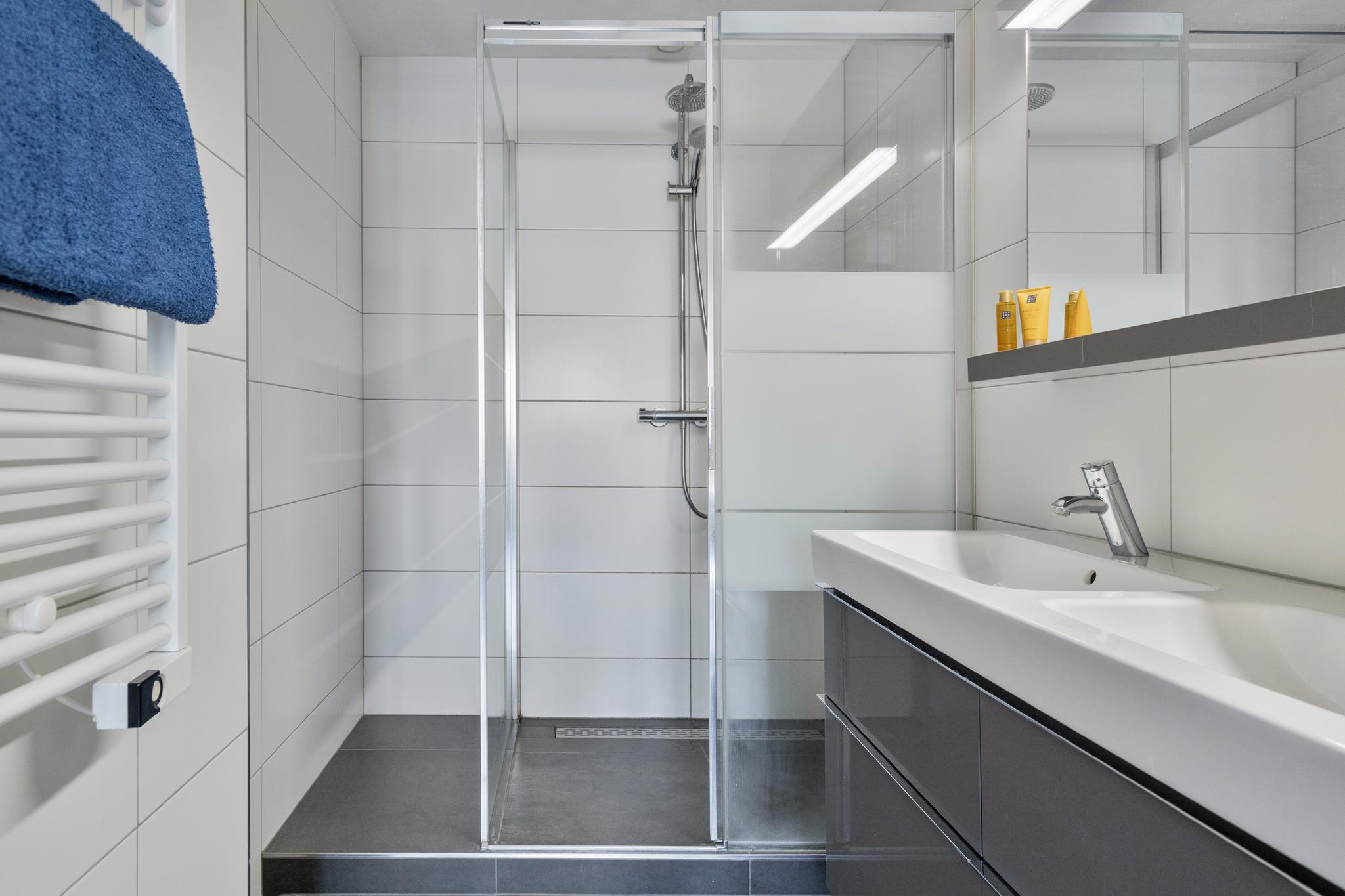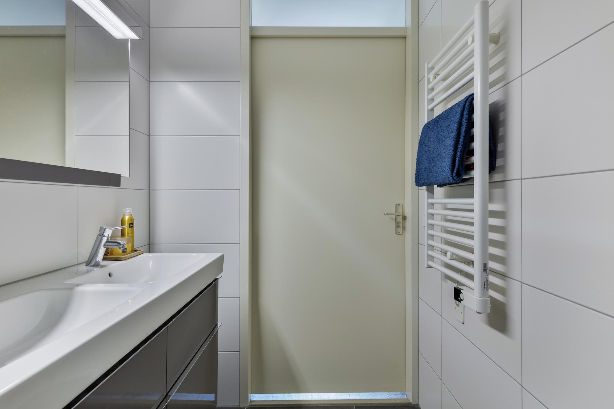 Verder beschikt de woning over twee ruime slaapkamers (ca. 11,7 en 7,2 m2) en een moderne badkamer (2015). Deze is uitgerust met een inloopdouche, dubbele wastafel met bergmeubel, verlichte spiegel, handdoekradiator en mechanische ventilatie. De ruime hoofdslaapkamer heeft een grote kledingkast.